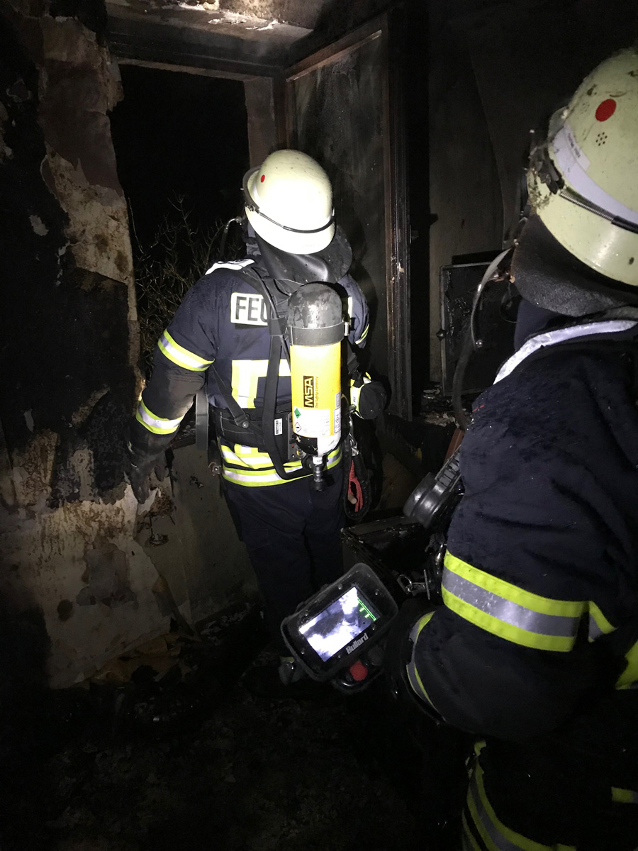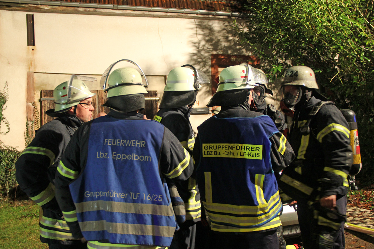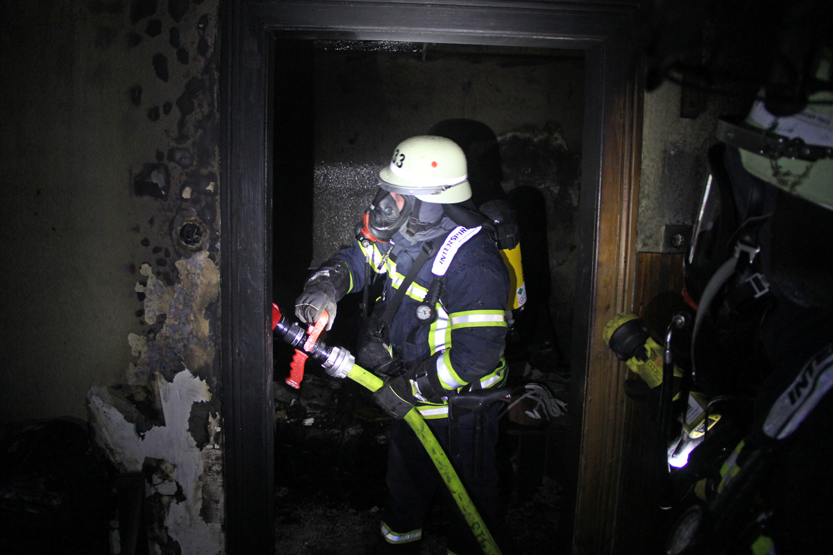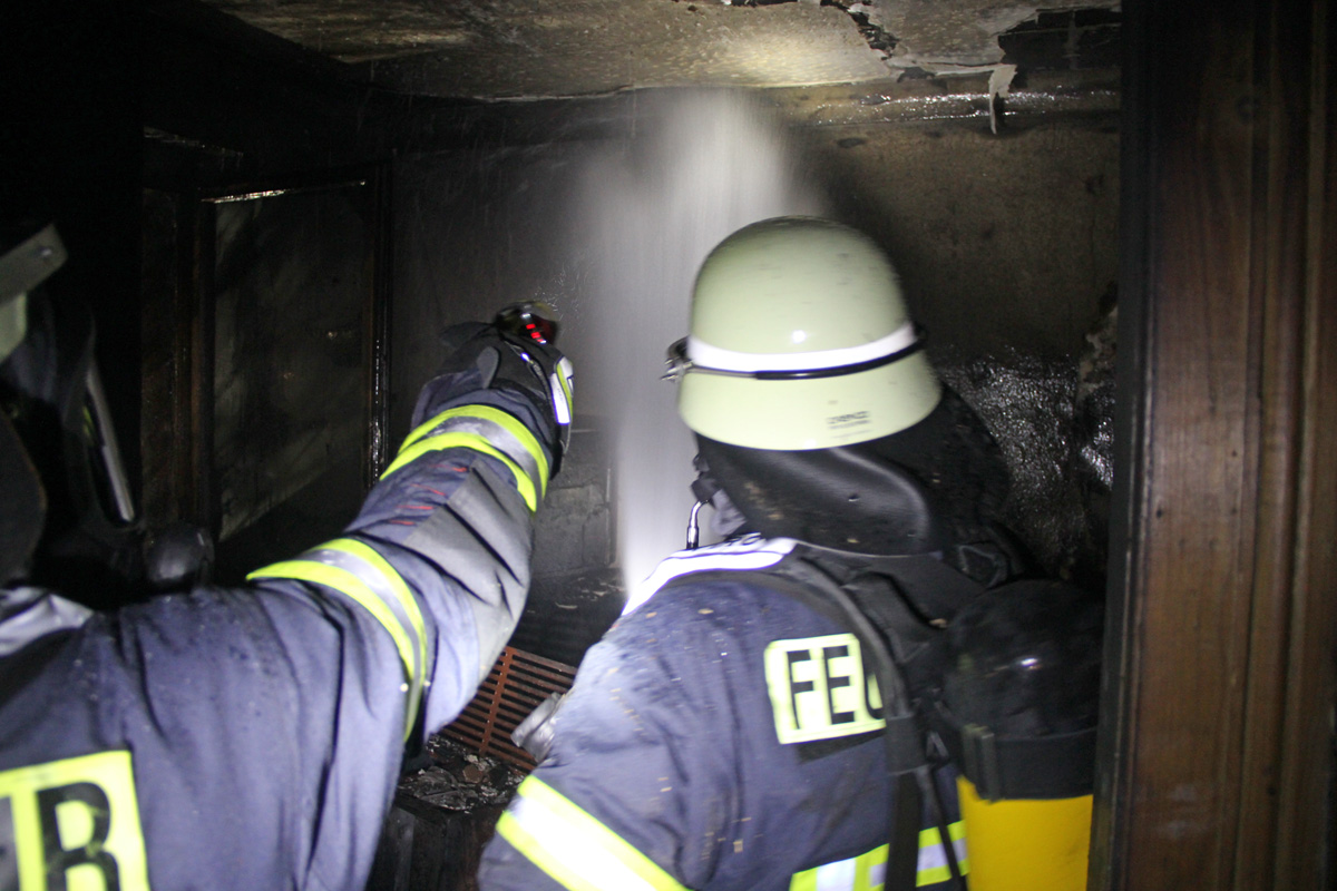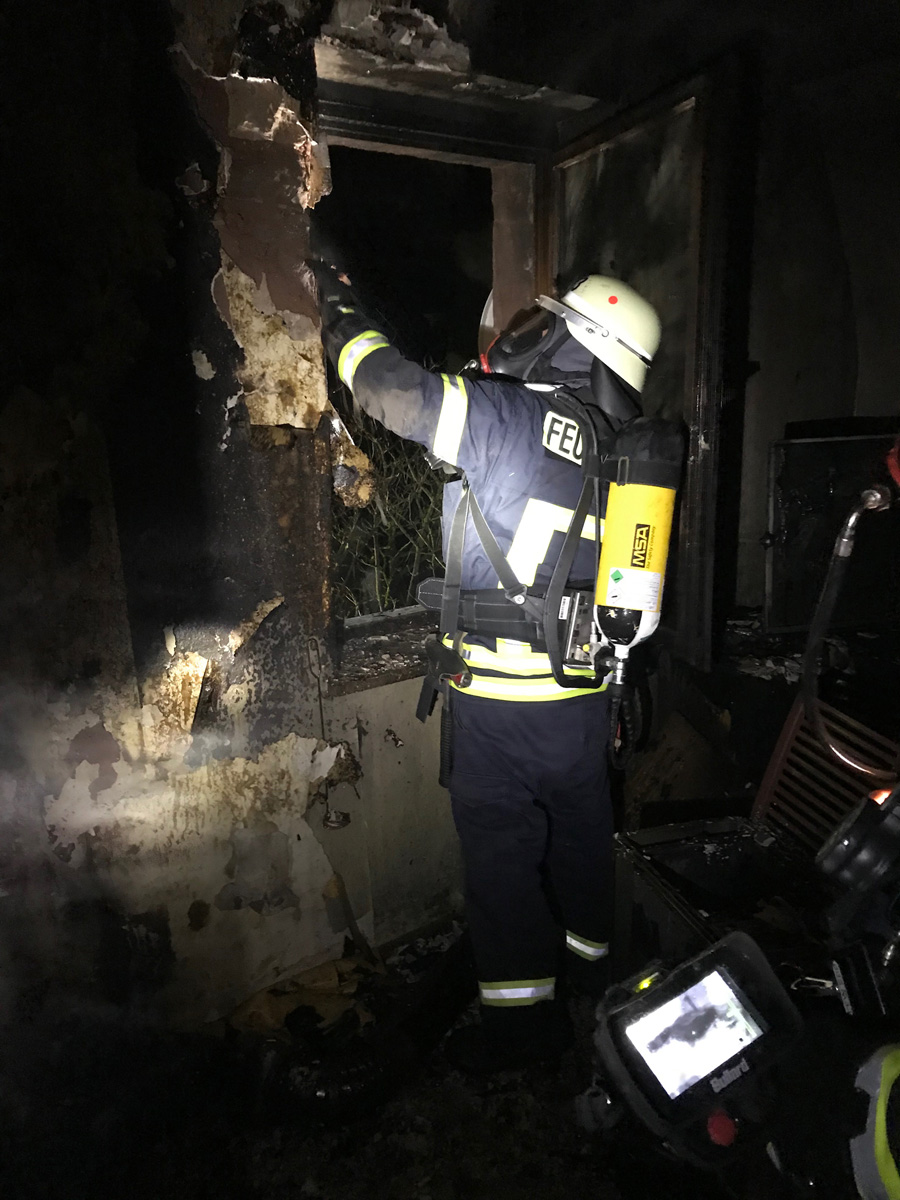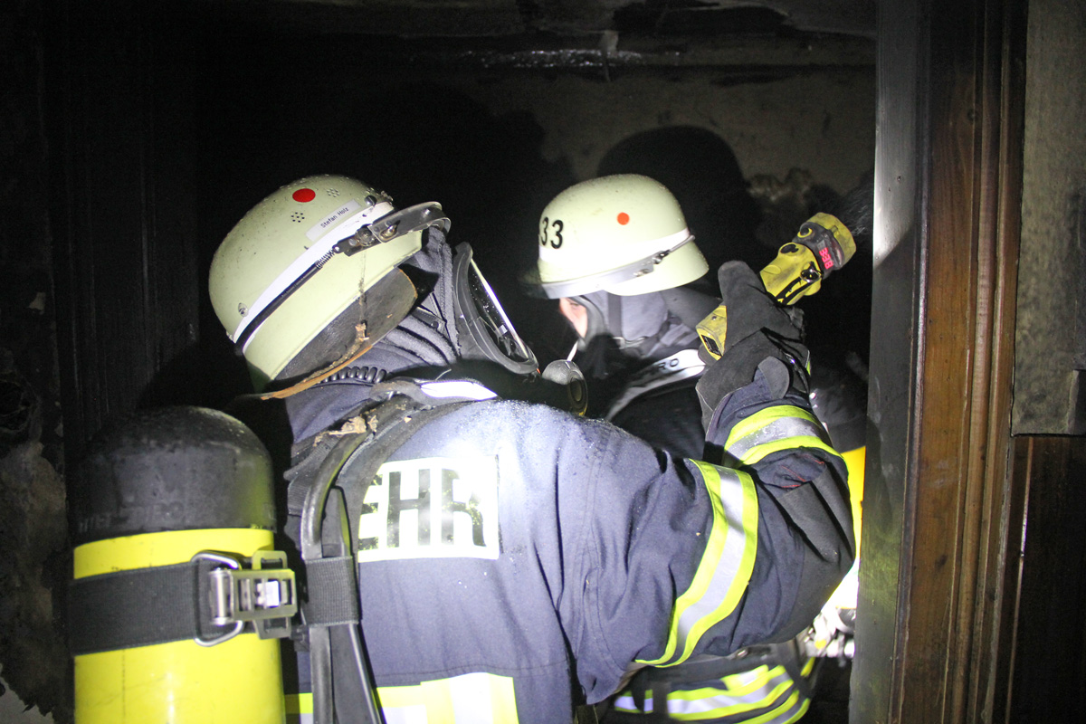 Nach dem stundenlangen Einsatz wegen der Bombenentschärfung am Morgen musste die Feuerwehr in den späten Abendstunden noch einmal zu einem Einsatz ausrücken. Der Anwohner eines Anwesens in der Dompstraße hatte den Notruf gewählt und von einem Brand eines Ölofens im Obergeschoss seines Hauses berichtet. Sofort wurde von der Rettungsleitstelle Alarm für die Löschbezirke Bubach-Calmesweiler, Eppelborn und Macherbach sowie für die Drehleiter der Feuerwehr Lebach ausgelöst. Beim Eintreffen der Einsatzkräfte hatte sich der Anwohner bereits in Sicherheit gebracht. Dichter Rauch drang aus dem Obergeschoss des Gebäudes. Unter Atemschutz drangen zwei Trupps in das Gebäude vor, um den Brandherd im Obergeschoss zu suchen. In den völlig verqualmten Räumen war ein offenes Feuer zunächst nicht aufzufinden. In einem Zimmer im hinteren Gebäudeteil wurde ein Trupp dann aber fündig und konnte den Brand schnell löschen. Mit einer Wärmebildkamera wurden die Zimmer und ganz besonders die Zwischendecken mehrmals kontrolliert und nach verdeckten Glutnestern gesucht. Gleichzeitig wurde mit einem Überdrucklüfter der heiße Brandrauch aus dem Gebäude gedrückt. Zur Absicherung des Einsatzes stand ein Rettungswagen an der Einsatzstelle in Bereitschaft. Alle Räume der Wohnung wurden durch den Brand in Mitleidenschaft gezogen, das Gebäude kann bis auf weiteres nicht bewohnt werden. Brandrauch und hohe Temperaturen haben einen Sachschaden in noch nicht bezifferter Höhe verursacht. Der Anwohner blieb bei dem Brand unverletzt. Die Brandursache lag nach ersten Erkenntnissen im Bereich eines Ölofens.