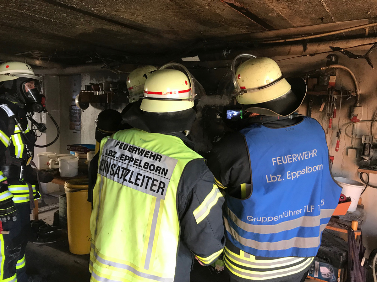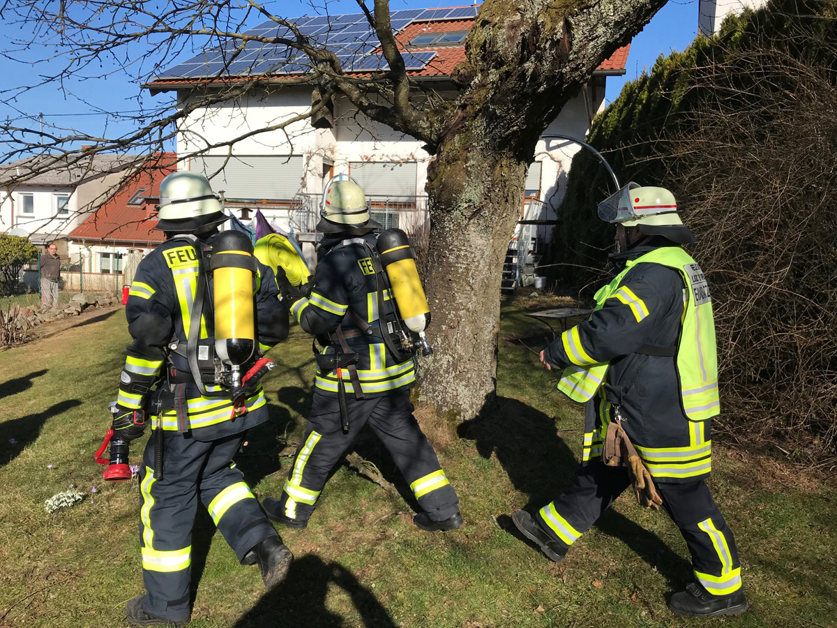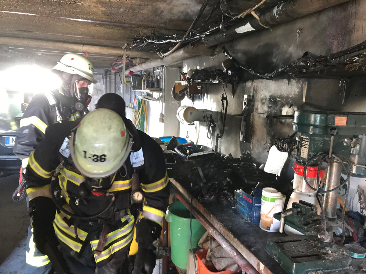 Nach Angaben des Eigentümers hatte er in seinem Werkstattbereich in der Garage circa eine Stunde vorher Arbeiten mit dem Winkelschleifer erledigt, bei denen es zur Funkenbildung kam.