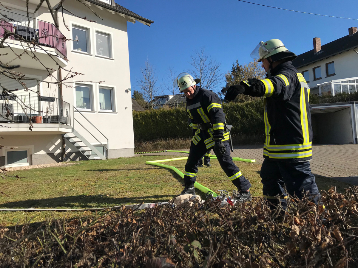 Kurz nach 14:30 Uhr rief die Bewohnerin über ihren Mann, der mit Gartenarbeiten beschäftigt war und teilte ihm mit, dass einer der Rauchmelder im Haus Alarm schlägt. Sofort begab sich der Hauseigentümer auf die Suche nach der Ursache und bemerkte schnell, dass dichter Rauch aus der Garage dringt. Nachdem sie die Feuerwehr alarmierten und sich die Löschbezirke aus Eppelborn, Bubach-Calmesweiler und Hierscheid auf den Weg zu Einsatzstelle machten, versuchte der Eigentümer mit einem Feuerlöscher den Brand zu bekämpfen.