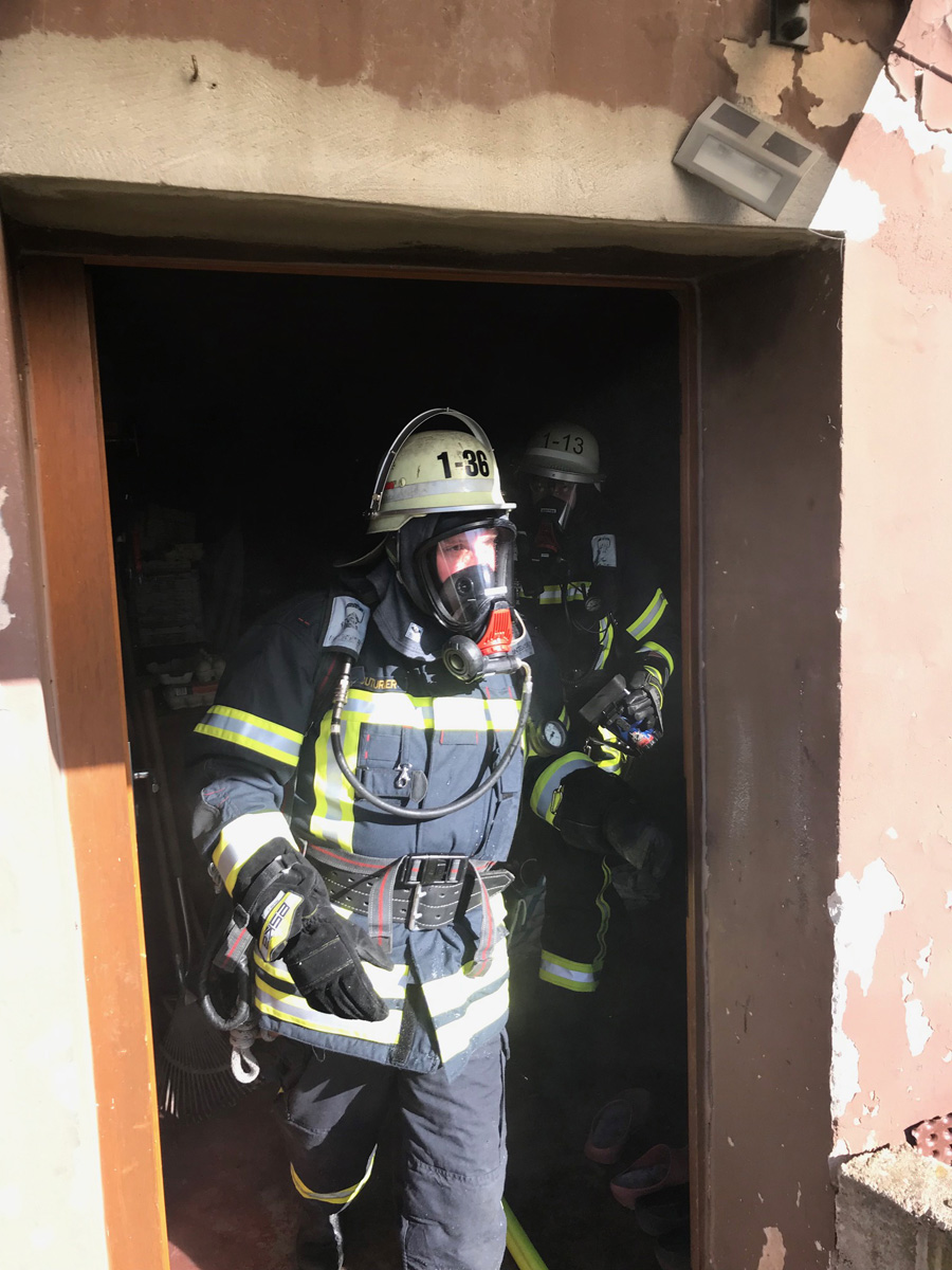 Bei Ankunft der Feuerwehr war das Feuer bereits soweit erloschen, dass durch ein Trupp unter Atemschutz lediglich der betroffene Bereich mit ein paar Sprühstößen Wasser abgekühlt werden musste.