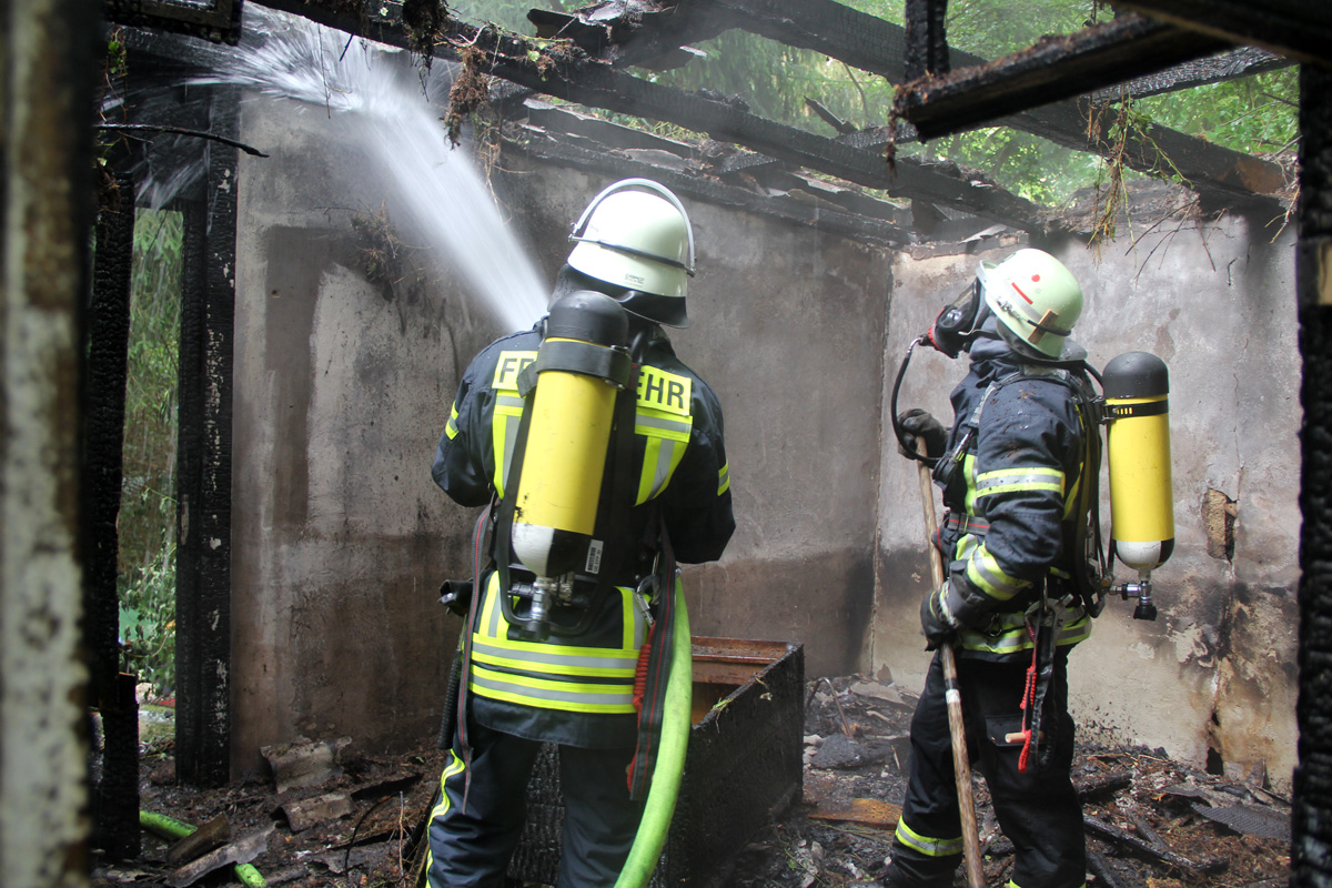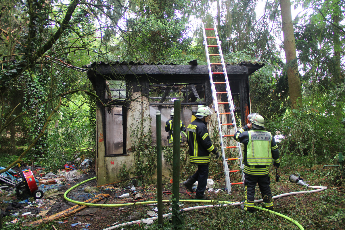 Die Brandursache ist unklar, Brandstiftung kann nicht ausgeschlossen werden. Die Feuerwehr konnte das Gartenhaus nicht mehr retten. Ein Übergreifen auf die angrenzenden Bäume konnte aber durch den schnellen Einsatz verhindert werden.