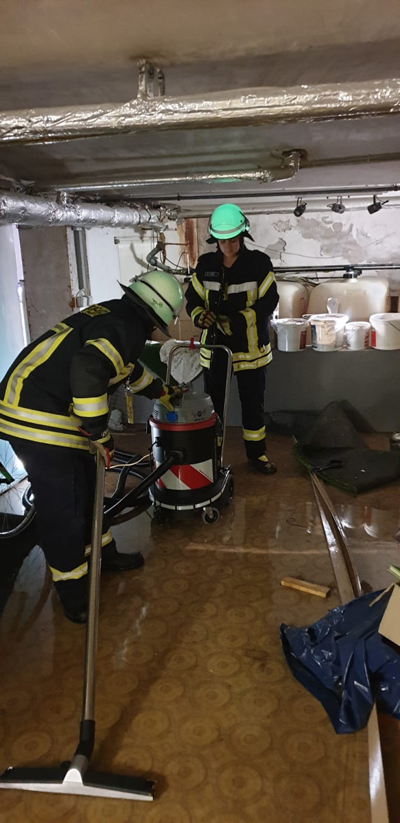 Am Morgen des 29. Juni 2019 wurde die Feuerwehr zu einem Wassereinbruch in einem Anwesen in der Calmesweiler Straße gerufen. Durch einen Defekt an der Wasserleitung war es zu einem Wasseraustritt in einer Zwischendecke gekommen, in Folge dessen sich das Wasser bereits über Stunden im Keller des Gebäudes angesammelt hatte. Als der Mieter nach der Nachschicht nach Hause kam, stand das Wasser bereits bis zu 15cm hoch in den Kellerräumen des Wohnhauses.