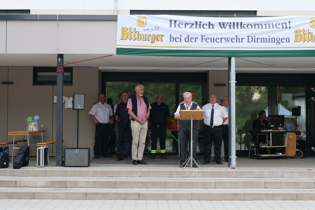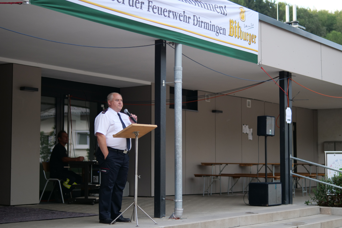 Am Samstag, dem 03.August, um 19 Uhr, wurden die "Tage der offenen Tür" offiziell eröffnet. Heino Molter, der Löschbezirksführer, begrüßte die anwesenden Gäste, darunter Kreisbrandinspekteur Michael Sieslack, Wolfgang Braun, stellv. Wehrführer der Gemeinde Eppelborn, Berthold Schmitt, 1.Beigeordneter der Gemeinde Eppelborn und Manfred Klein, Ortsvorsteher von Dirmingen. Besondere Grüße gingen an die Abordnung der Partnerfeuerwehr aus Finsterwalde, unter der Leitung von Zugführer Andreas Häring. Des weiteren konnte Heino Molter viele anwesende Bürger und weitere Löschbezirke begrüßen.