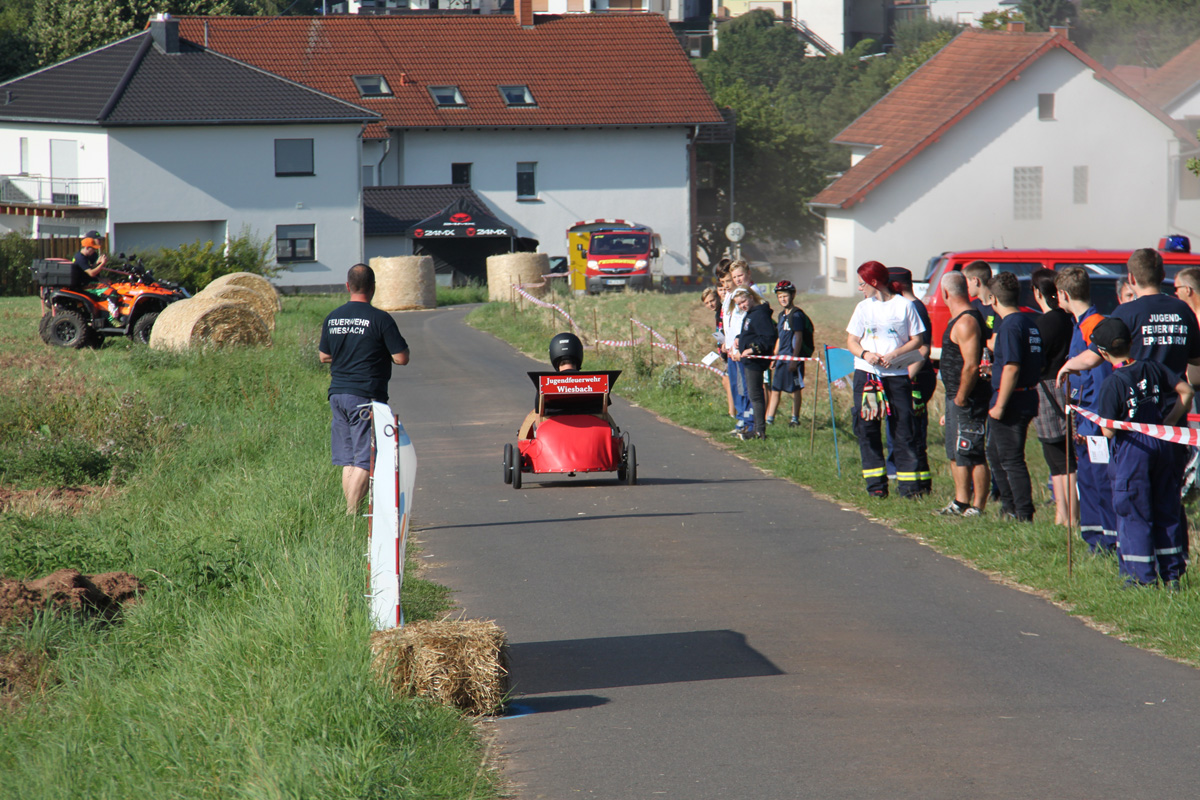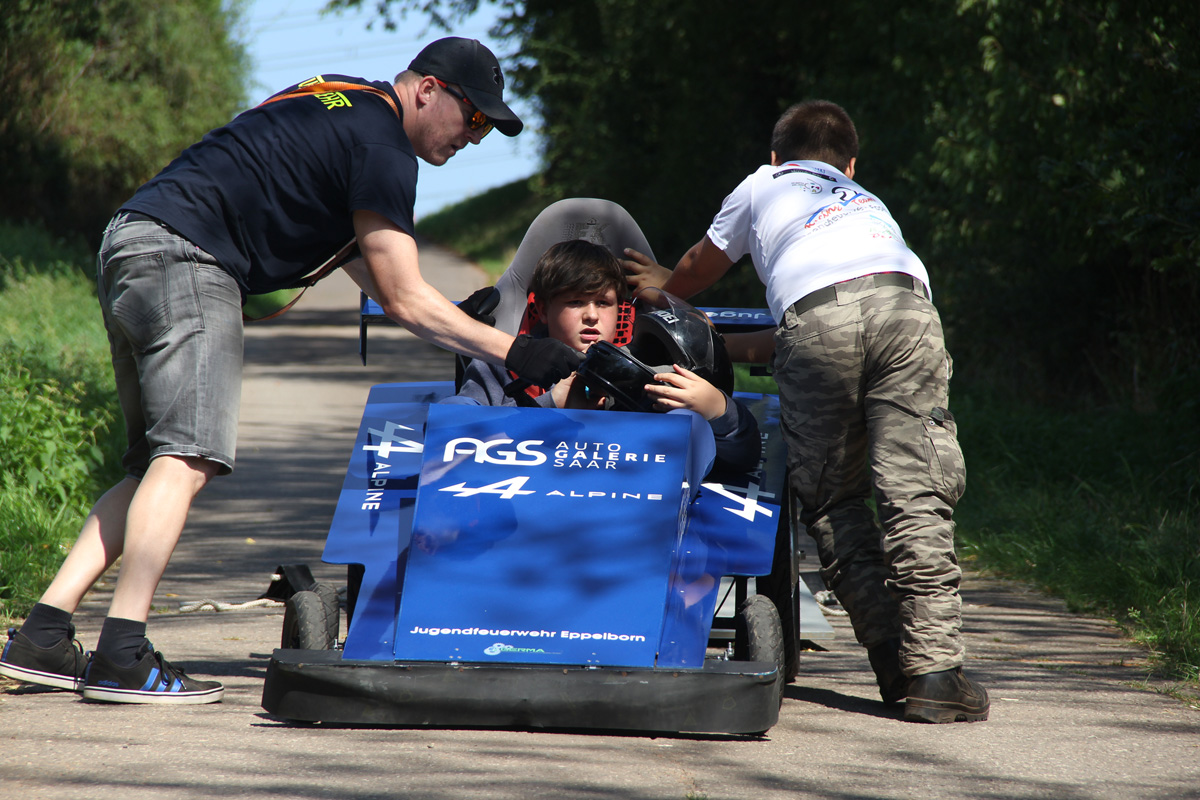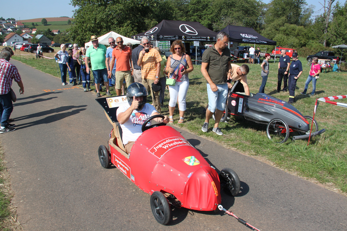 Unter der Schirmherrschaft von Bürgermeisterin Birgit Müller-Closset startete am vergangenen Wochenende das dritte Seifenkistenrennen der Jugendfeuerwehr der Gemeinde Eppelborn im Ortsteil Wiesbach. Wie auch die Rennen in den beiden letzten Jahren war die Veranstaltung auch in diesem Jahr gut besucht. Der Gemeindejugendwart Christopher Steil und sein Team hatten dazu im Vorfeld in das Rennen einiges an Mühe und Arbeit investiert.