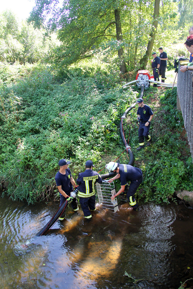 Während die Brandbekämpfung mit den Wasservorräten aus den Löschwassertanks der Löschfahrzeuge begann, wurde gleichzeitig eine Wasserversorgung aus der Ill aufgebaut und dicke Versorgungsleitungen zu den Pumpen gelegt. Ohne große Hektik wurden Schläuche ausgerollt und angeschlossen und der Löschangriff vorgenommen.