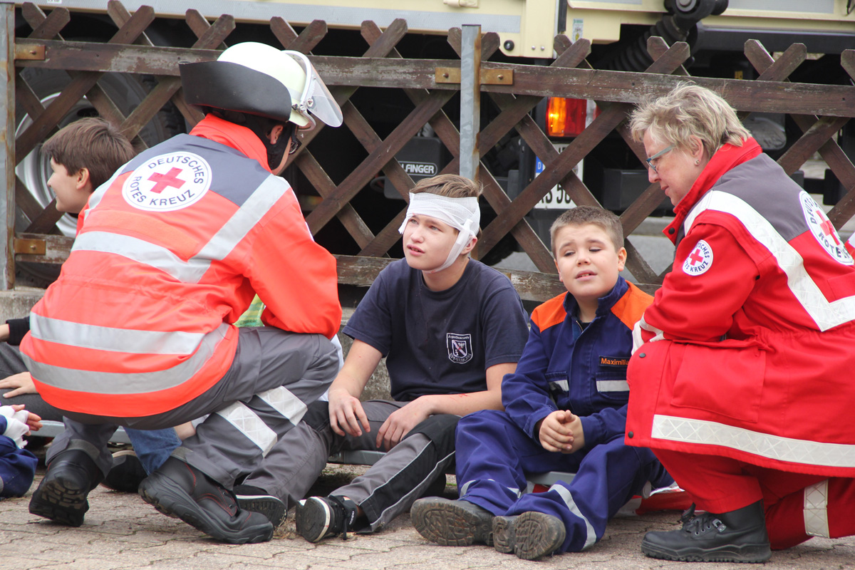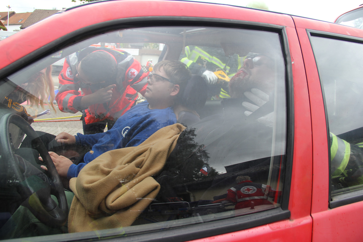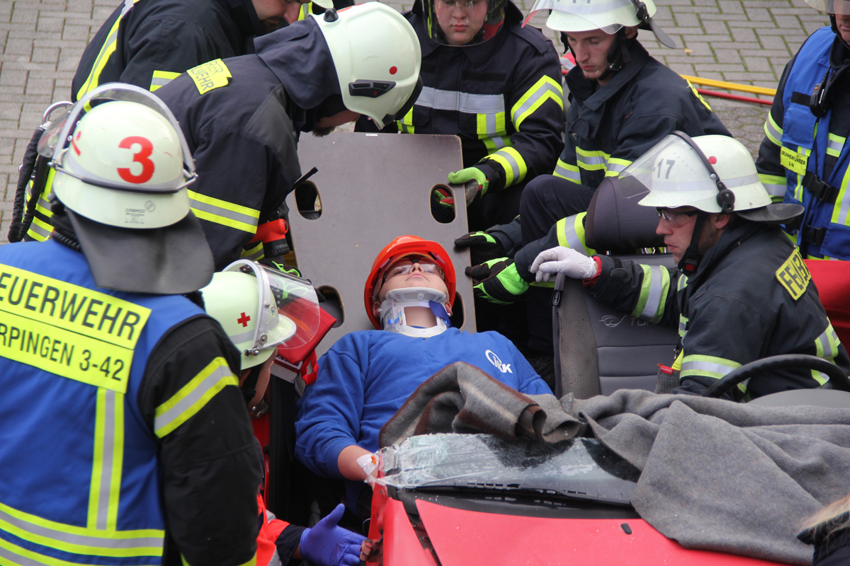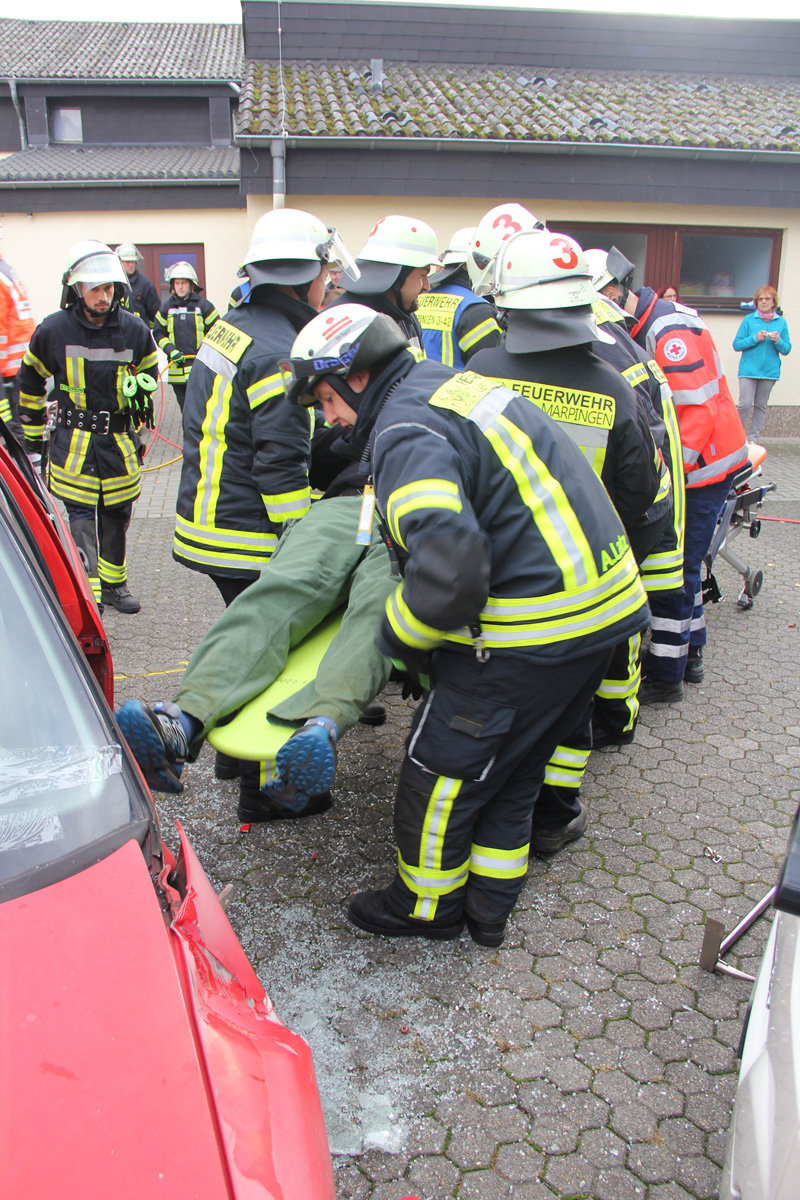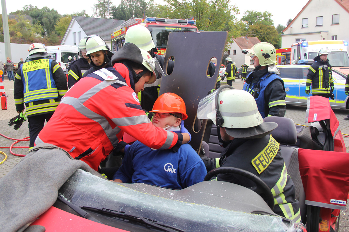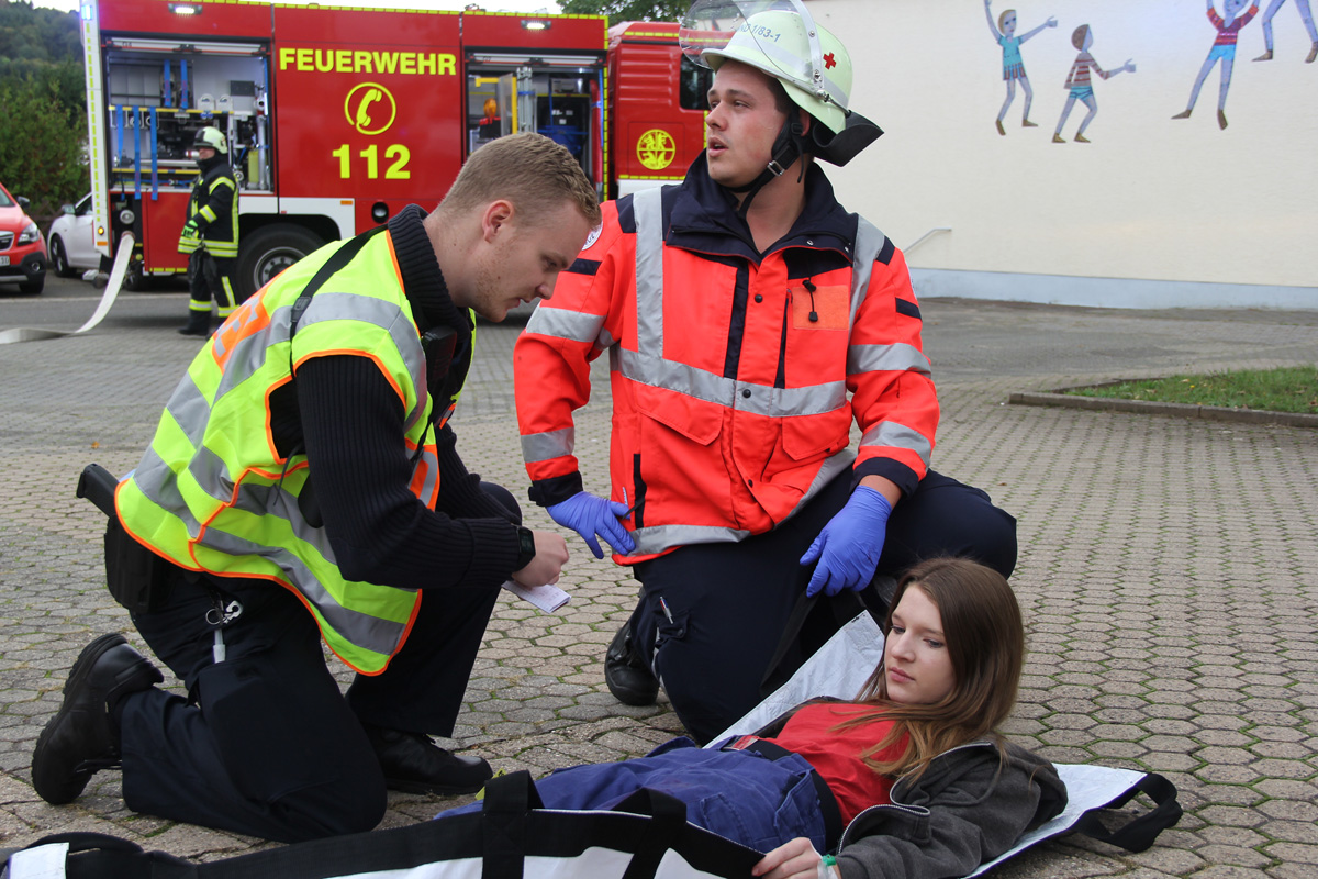 Mehrere Verletzte nach einem Unfall zwischen einem Pkw und einem Linienbus war die Ausgangslage zu einer großen Übung im Ortsteil Dirmingen am 28. September 2019. Ein mit 12 Kindern besetzter Bus war mit einem Pkw kollidiert, in dem 2 Personen unterwegs waren. Der Busfahrer sowie die Kinder im Bus waren bei dem Unfall zum Teil schwer verletzt worden, die beiden Pkw-Insassen waren in ihrem Fahrzeug eingeklemmt.