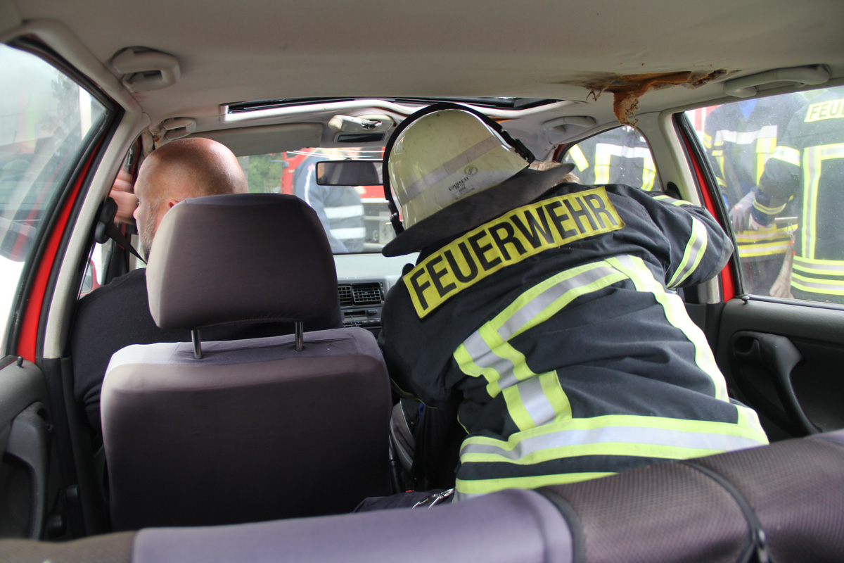 [right][cmsimg]10251[/cmsimg][/right] Zwischenzeitlich wurden von der Feuerwehr die Fahrzeugtüren sowie das Dach des Unfallwagens abgetrennt, um in Abstimmung mit dem Notarzt die beiden Fahrzeuginsassen so schonend wie möglich durchführen zu können.