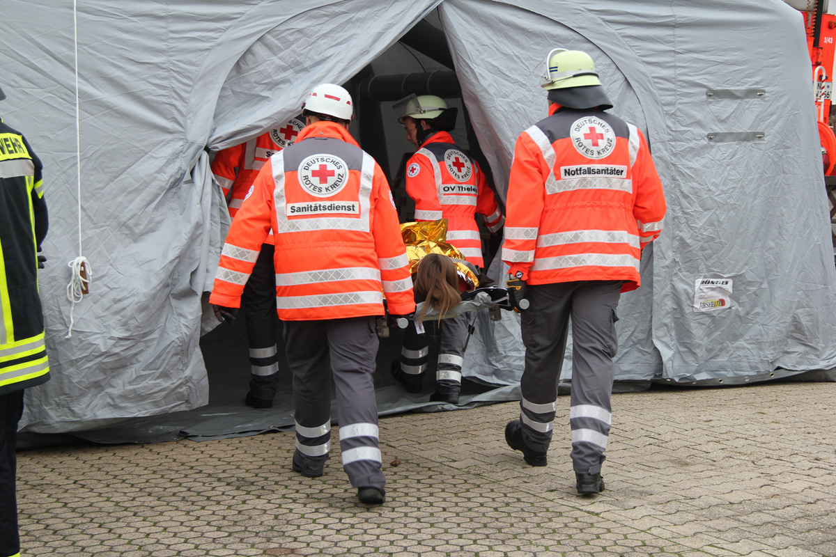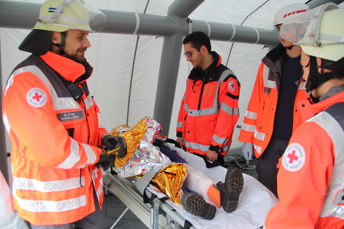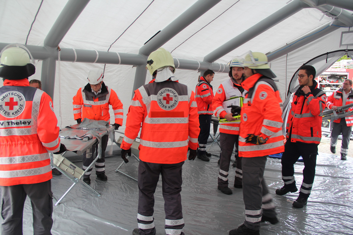 Zur Versorgung der vielen Verletzten rückte die Schnelle Einsatzgruppe (SEG) des DRK Landkreises St. Wendel an. Die Helfer bauten ein Behandlungszelt auf und richteten einen Behandlungsplatz ein. Dort wurden die Verletzten von einem Arzt untersucht und erstversorgt, bevor sie zur Weiterbehandlung in umliegende Kliniken transportiert werden konnten.