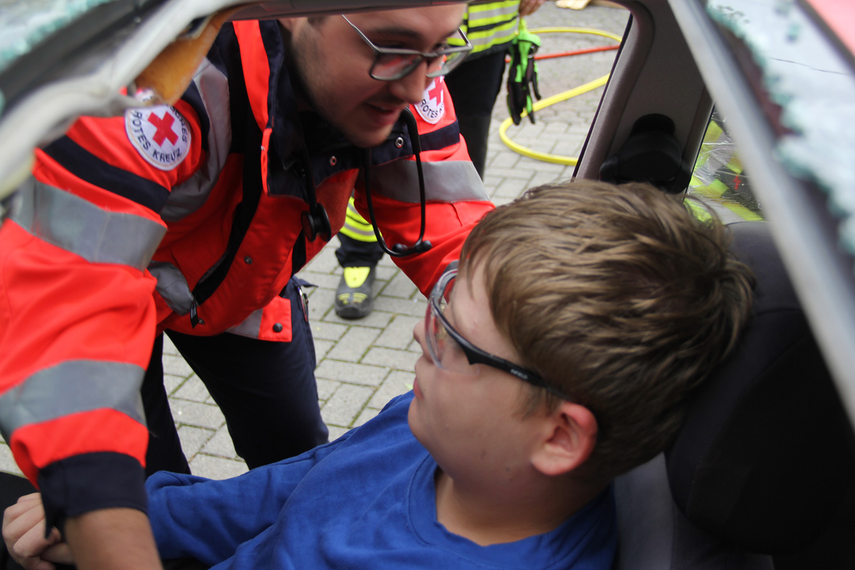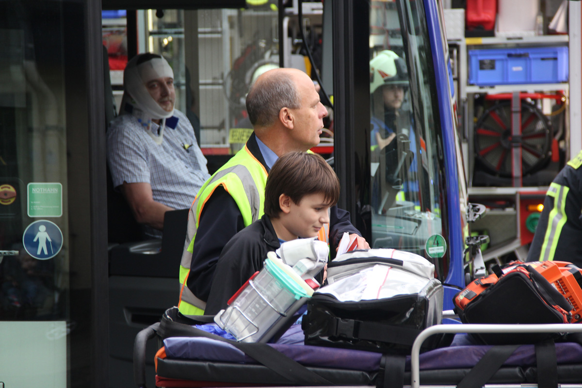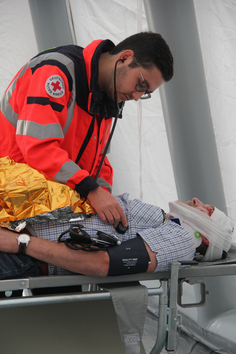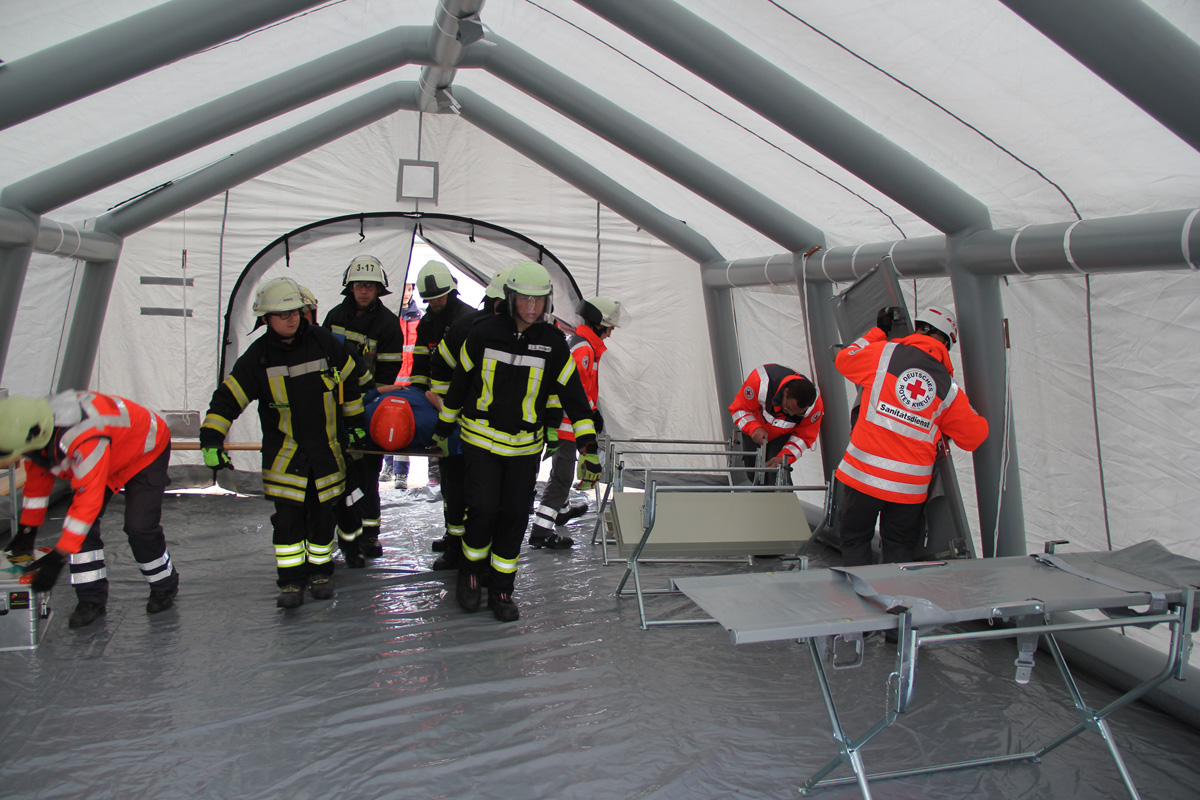 Zur Versorgung der vielen Verletzten rückte die Schnelle Einsatzgruppe (SEG) des DRK Landkreises St. Wendel an. Die Helfer bauten ein Behandlungszelt auf und richteten einen Behandlungsplatz ein. Dort wurden die Verletzten von einem Arzt untersucht und erstversorgt, bevor sie zur Weiterbehandlung in umliegende Kliniken transportiert werden konnten.