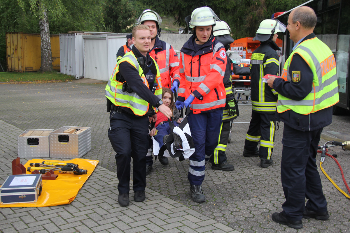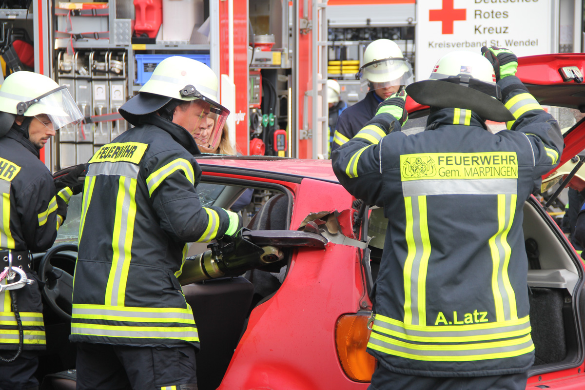 [left][cmsimg]10232[/cmsimg][/left] Schnell war klar: Hier müssen weitere Kräfte zur Unterstützung anrücken. Deshalb wurden die Löschbezirke Berschweiler und Marpingen aus der Nachbargemeinde zur Unterstützung nachgefordert. Während die verletzten Schüler im Bus vom Rettungsdienst und Kräften der Feuerwehr betreut wurden, wurde zur technischen Rettung der Pkw-Insassen schweres Gerät vorbereitet.