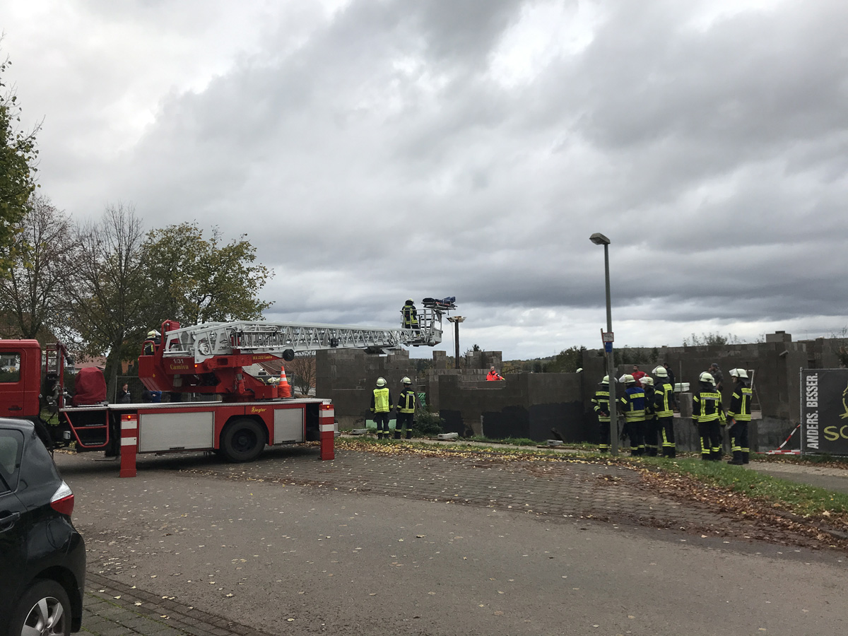 Ein Arbeiter ist am Nachmittag des 02. November 2019 in einem Rohbau in der St. Martin-Straße in Bubach-Calmesweiler von einem Gerüst gestürzt und sich dabei schwer verletzt.