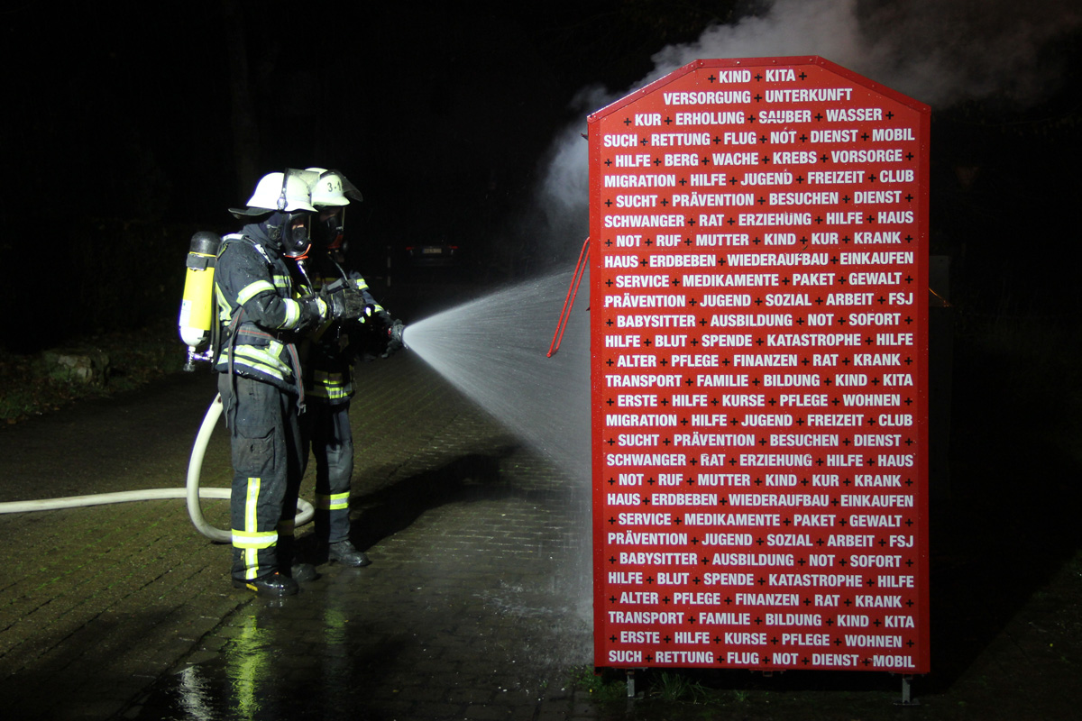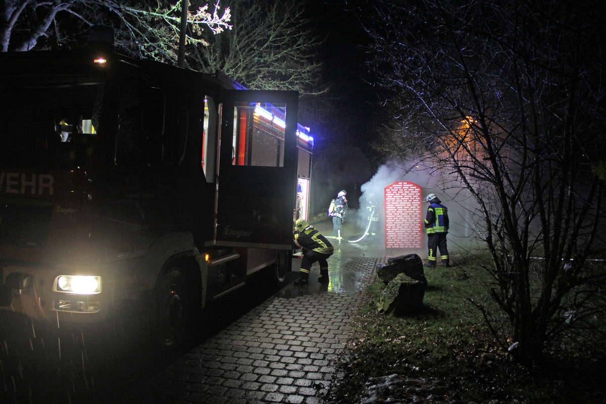 Der Löschbezirk Dirmingen wurde am Morgen des 27. November 2019 gegen 05:20 Uhr zu einem brennenden Altkleidercontainer in den Brühlpark gerufen.
