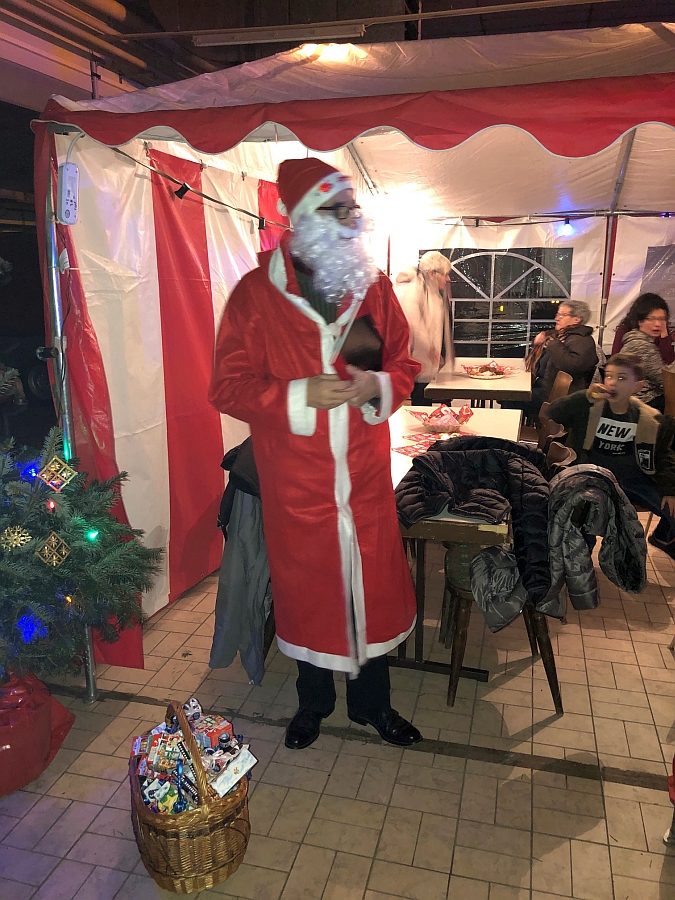 Um die Zeit bis zum Eintreffen des Nikolaus zu verkürzen spielten Mitglieder des Fanfarenzugs weihnachtliche Lieder, für das körperliche Wohl sorgten dabei auch kalte und warme Getränke, sowie Rostwurst, Plätzchen und Crepes.
