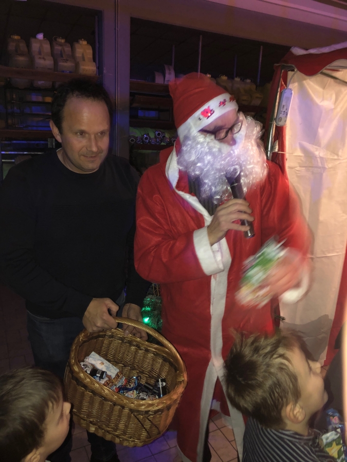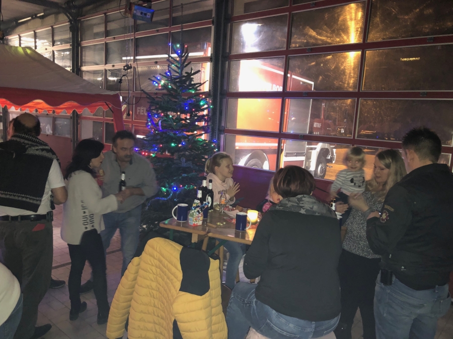 Die Kinder von ihm beschenkt. Danach wurden ein paar besinnliche Stunden unter Klängen von Weihnachtsliedern und Gedichten im weihnachtlich geschmückten Gerätehaus verbracht.