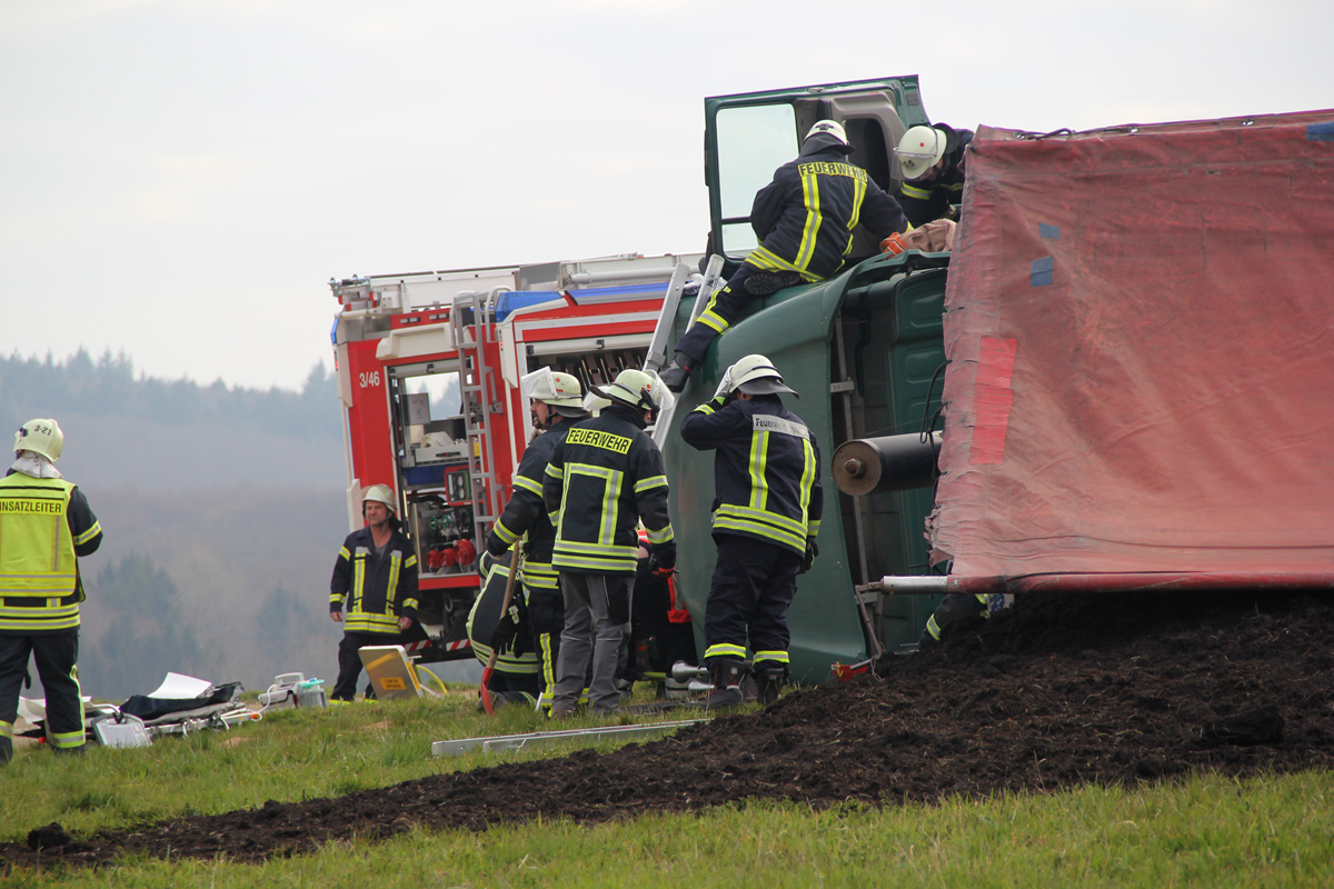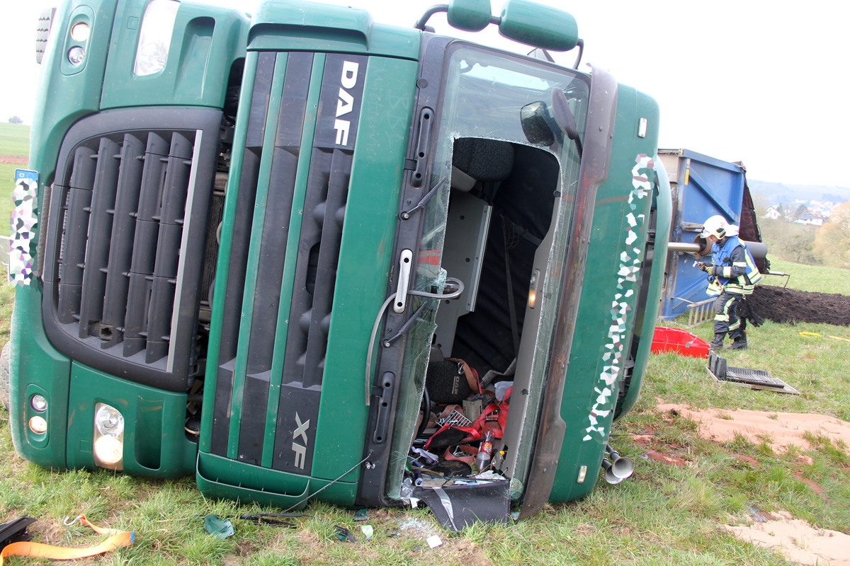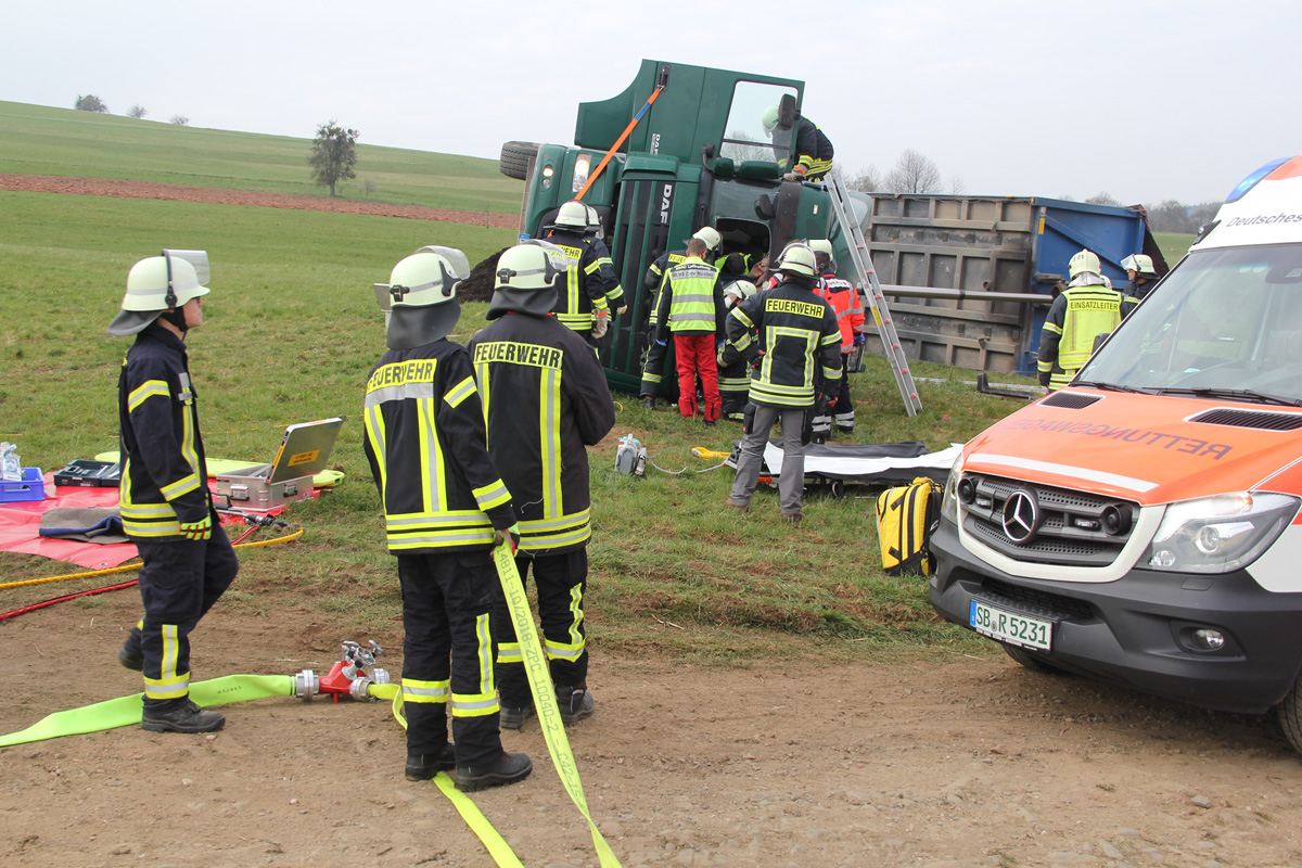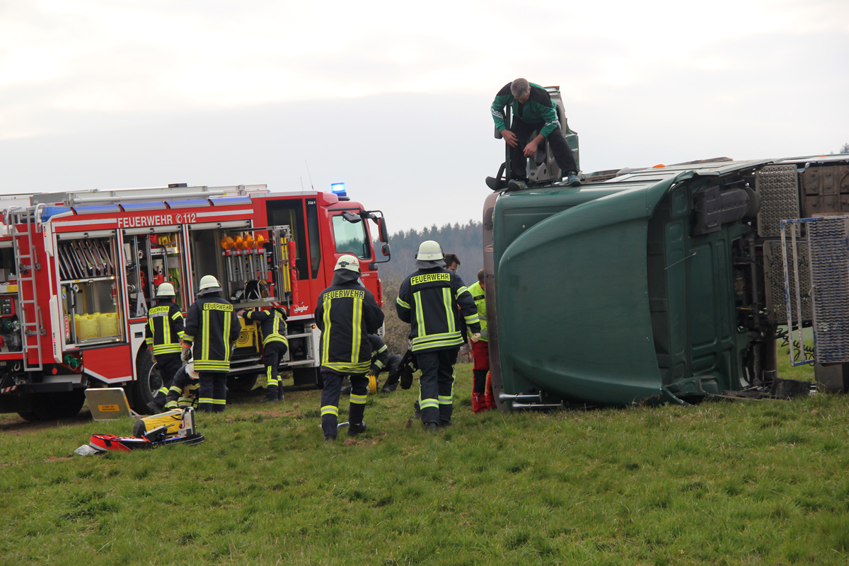 Laster umgestürzt – Feuerwehr muss verletzten Fahrer befreien