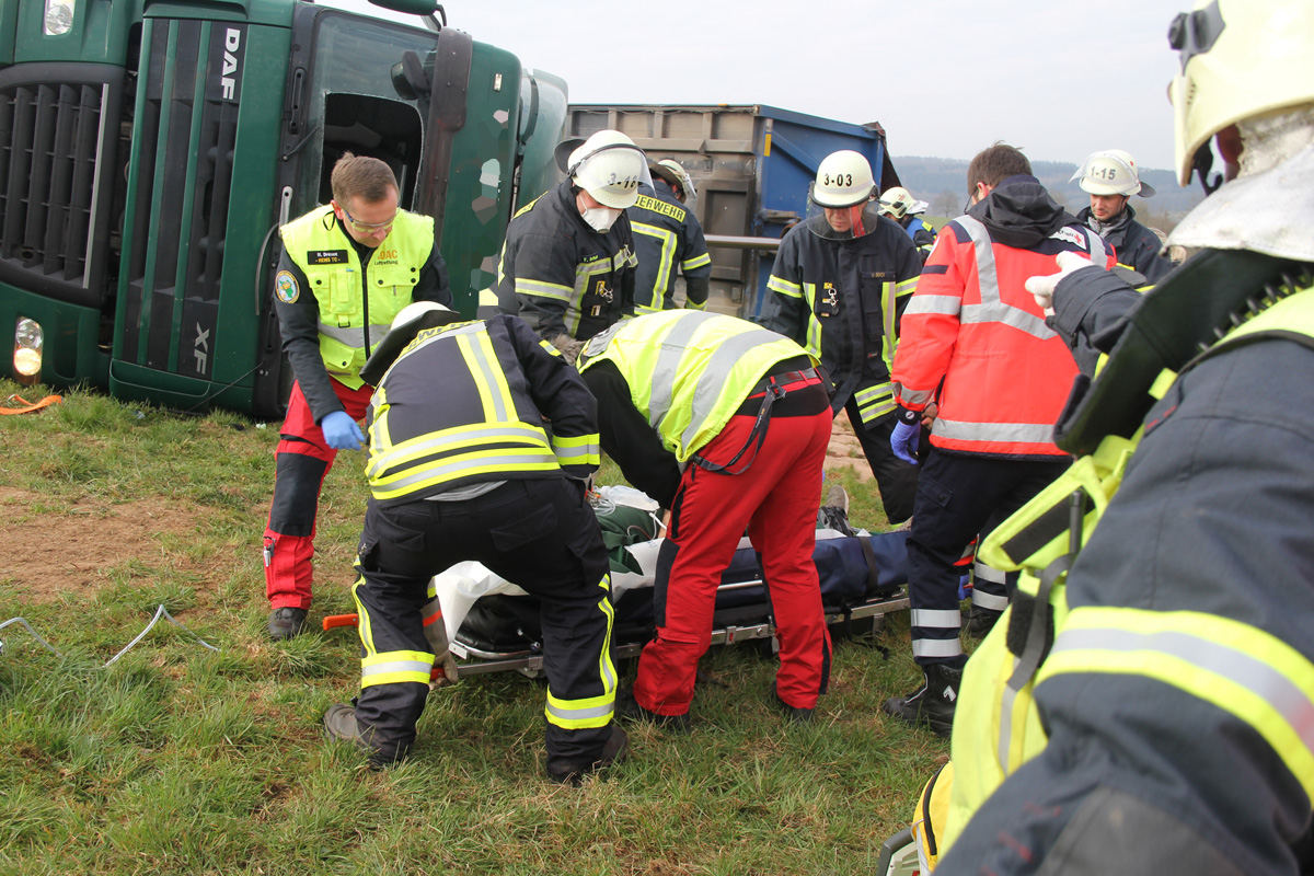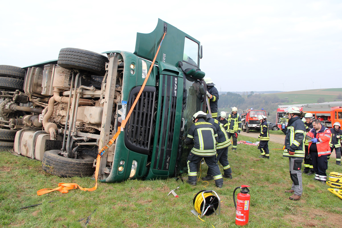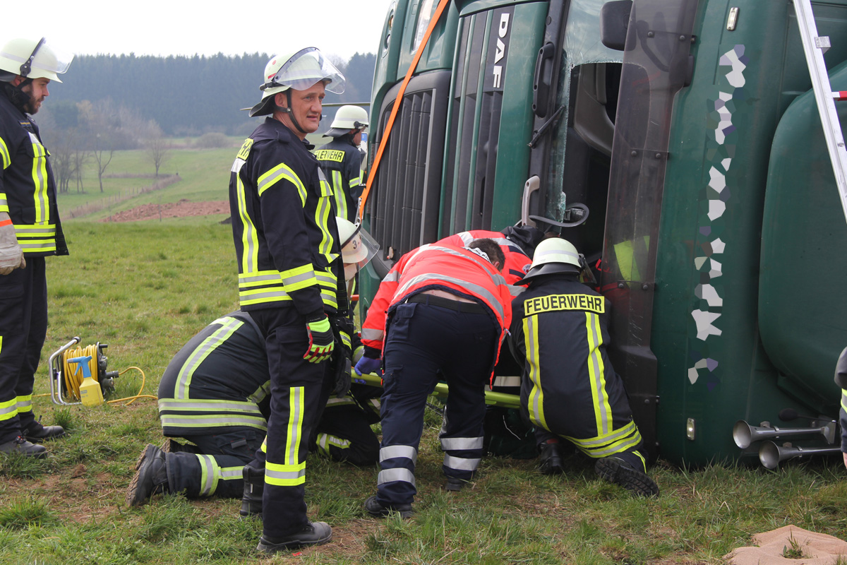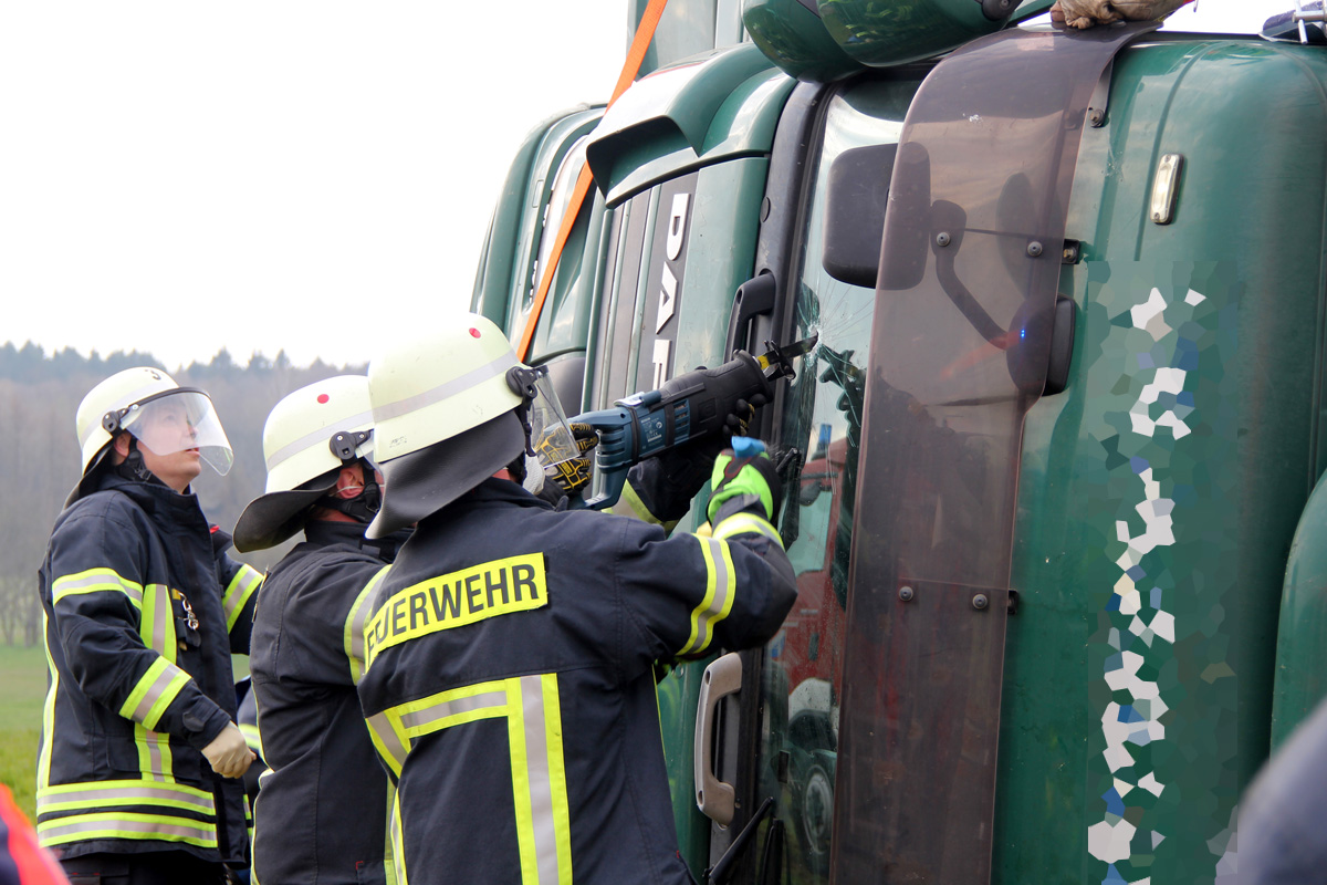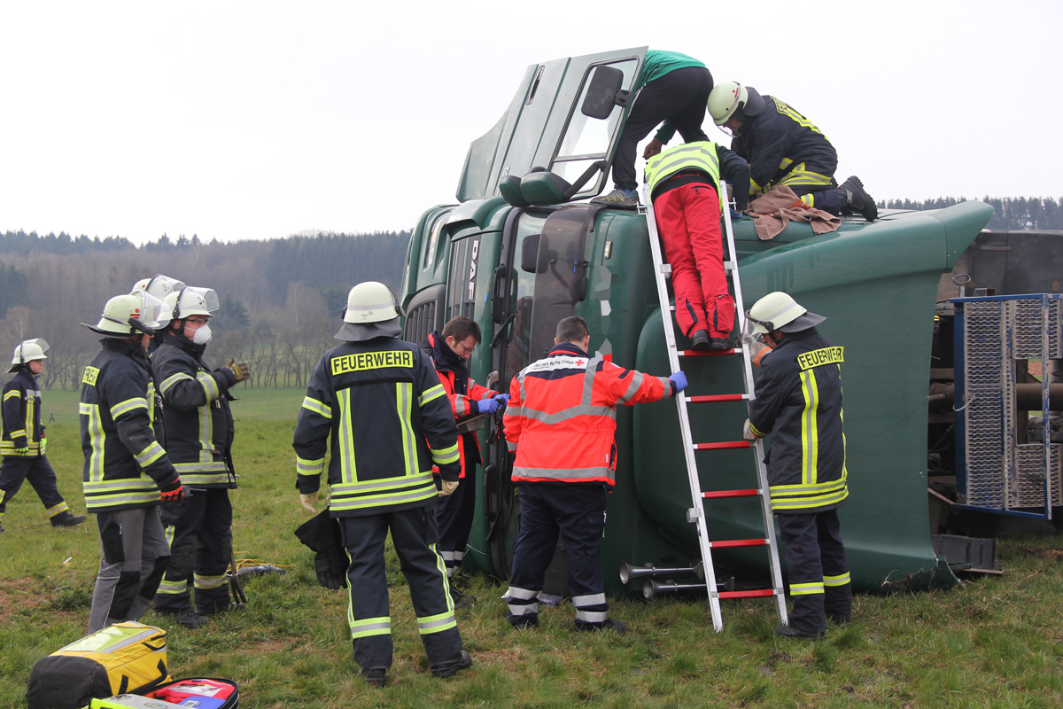 Laster umgestürzt – Feuerwehr muss verletzten Fahrer befreien