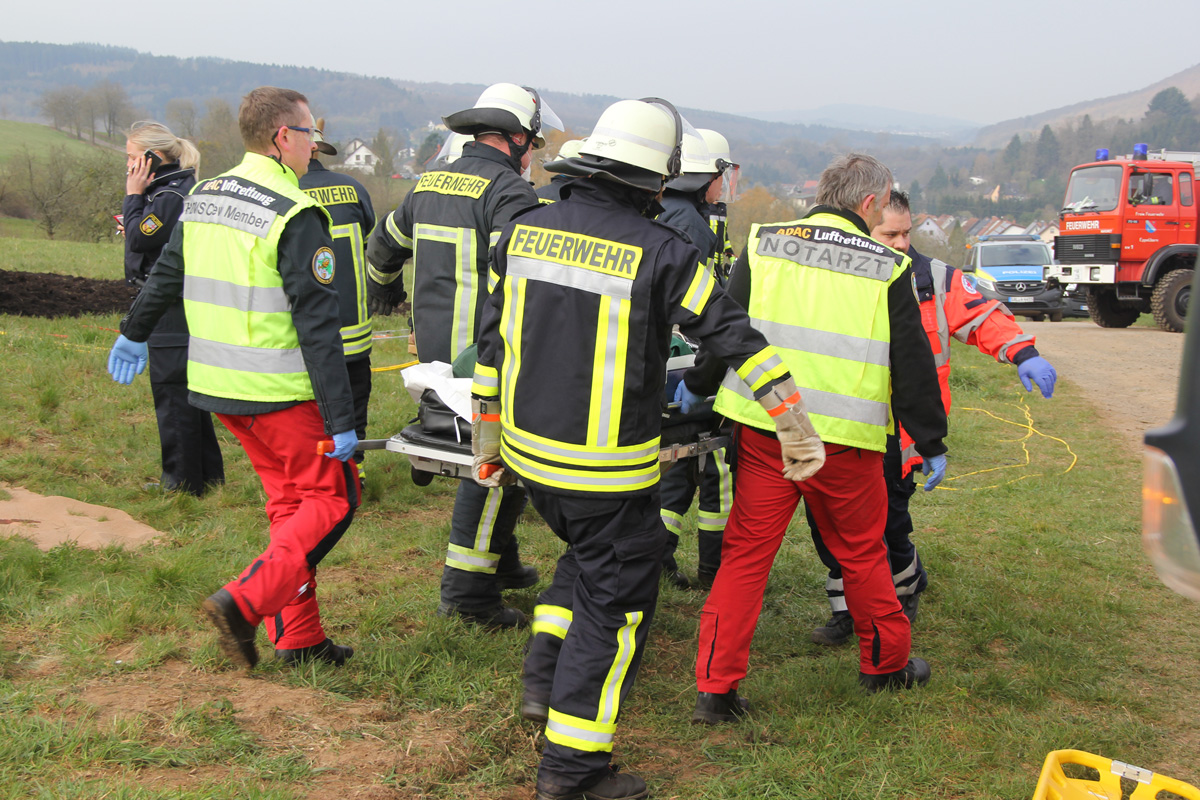 Die Einsatzkräfte aus den Löschbezirken Dirmingen und Eppelborn trafen kurz nach dem Rettungshubschrauber Christoph 16 an der Unfallstelle in der Nähe des Frankenbacher Hofes ein.