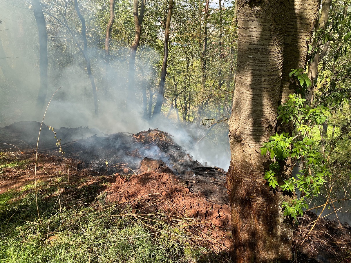 Nochmals wurden die Grünabfälle gründlich auseinander gezogen und abgelöscht.