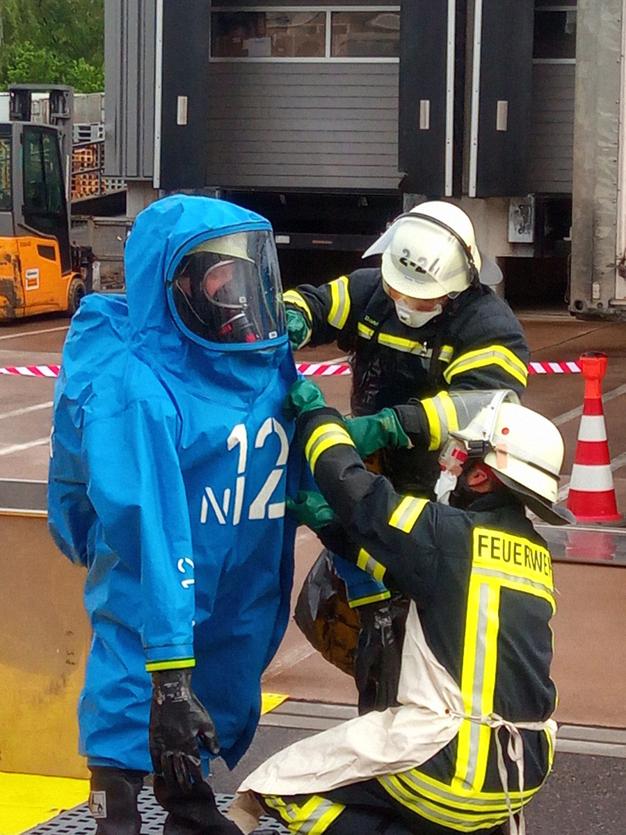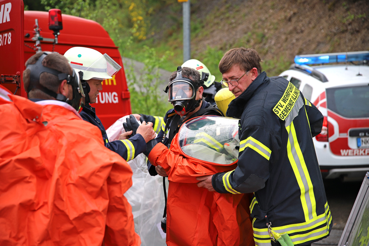 [b]Sinnerthal.[/b] Zu einem auf dem ersten Blick unscheinbaren, aber dennoch folgenschweren Unglück kam es am frühen Donnerstagmorgen auf dem Areal einer Spedition in der Straße Beim alten Hof in Sinnerthal. Beim Be- und Entladen eines Lastwagens wurden mehrere Gebinde mit einer umweltgefährdenden und brennbaren Flüssigkeit beschädigt. Der Schaden war auf den ersten Blick nicht sehr groß, mehrere der kleinen Metallbehälter auf der Palette waren eingedrückt. Doch hatten die Behälter durch ihre Verformung auch Leck geschlagen und die darin gelagerte Flüssigkeit lief aus. Durch den besorgniserregenden Geruch, der sich rund um die Laderampe und die dort stehende Palette mit dem Gefahrgut ausbreitete, wählten die Speditionsmitarbeiter den Notruf und verständigten die Feuerwehr. Um kurz nach 7 Uhr am Morgen löste die Leitstelle Großalarm für zahlreiche Feuerwehren im ganzen Landkreis Neunkirchen aus. Neben der Freiwilligen Feuerwehr Neunkirchen mit ihren Löschbezirken Neunkirchen-Innenstadt, Wiebelskirchen und Wellesweiler wurde auch der komplette Gefahrgutzug des Landkreises mit seinen dezentral stationierten Einheiten bei den Feuerwehren Eppelborn, Illingen, Ottweiler, Schiffweiler und Spiesen-Elversberg sowie der Werkfeuerwehr Saarstahl in Marsch gesetzt. Nach kurzer Erkundung aus sicherer Distanz durch die Gefahrgutspezialisten der Feuerwehr bereitete der nach und nach an der Unglücksstelle eintreffende Gefahrgutzug seinen großangelegten Einsatz vor. In Reih und Glied bezogen mehr als 20 Feuerwehrfahrzeuge auf dem langgestreckten Hof der Spedition Stellung, bauten Feuerwehrleute routiniert und in kurzer Zeit die komplexe Infrastruktur inklusive eigener Wasser- und Stromversorgung für den Gefahrguteinsatz auf. Mehrere Zweiertrupps der Feuerwehr bereiteten sich für den Einsatz im unmittelbaren Gefahrenbereich vor und zogen dafür nicht nur Atemschutzgeräte, sondern auch hermetisch abgedichtete und extrem resistente Chemikalienschutzanzüge an. Diese Anzüge hüllen den kompletten Feuerwehrangehörigen in seiner normalen Uniform mitsamt Helm und Atemschutzgerät ein und werden von außen sicher verschlossen. Allein zum Anlegen des Spezialanzuges braucht der Feuerwehrangehörige darin schon die Hilfe weiterer Feuerwehrleute. Gleichzeitig richteten andere Feuerwehrleute am Rand des Gefahrenradius eine sogenannte Dekontaminationsstelle ein. Diese dient der Reinigung der mit dem Gefahrgut in Kontakt gekommenen Feuerwehrleute nach dem Einsatz. Weil die Einsatzzeit in einem Chemieschutzanzug zeitlich sehr begrenzt ist und die abschließende Reinigungsprozedur sehr aufwändig ist, kann der eigentliche Gefahrguteinsatz erst beginnen, wenn die komplette Infrastruktur rundherum fertig aufgebaut ist. Erst nach Fertigstellung der Dekontaminationsstelle konnten sich die ersten vier Feuerwehrleute in ihren Chemikalienschutzanzügen mit Messgeräten und Werkzeug ausgerüstet auf den Weg zu den havarierten Gefahrgutbehältern machen. Den durch den Gefahrgutaustritt verursachten Schaden konnten sie schnell beheben. Die leckgeschlagenen Behälter mit dem Gefahrgut setzten sie in spezielle Sicherungsbehälter um und streuten die ausgetretene Flüssigkeit mit einem speziellen Chemikalienbindemittel ab. Nach ihrer Rückkehr zur Dekontaminationsstelle mussten die vier Feuerwehrleute in ihren Chemikalienschutzanzügen aufwändig und gründlich von ebenfalls speziell geschützten Feuerwehrleuten gereinigt werden, bevor ihnen wieder weitere Feuerwehrleute beim Ablegen der Spezialanzüge halfen. Nach nur zwei Stunden konnte die Feuerwehr die komplette Sicherung des ausgetretenen Gefahrguts an die Leitstelle melden und nach dem Abbau ihrer Ausrüstung wieder abrücken. Eine Ausbreitung des ausgetretenen, flüssigen Gefahrstoffs konnte erfolgreich verhindert und etwaige Umweltschäden abgewendet werden. Insgesamt 72 Feuerwehrangehörige aus dem ganzen Landkreis Neunkirchen befanden sich im Einsatz, zusätzlich waren auch Kräfte der Polizei sowie zur Absicherung ein Rettungswagen des Arbeiter-Samariter-Bundes vor Ort. Neben den Feuerwehren im Landkreis Neunkirchen musste aber auch die Feuerwehr im rheinland-pfälzischen Wittlich zu einem Gefahrguteinsatz ausrücken. Auch die Ladefläche des Lastwagens, auf dem die leckgeschlagenen Gefahrgutbehälter transportiert worden waren, war mit dem Stoff verunreinigt worden. Nicht wissend von dieser Verunreinigung hatte der Lastwagen seine Fahrt zunächst bis nach Wittlich fortgesetzt, wo dann weitere Maßnahmen durch Feuerwehr und Polizei getroffen wurden.