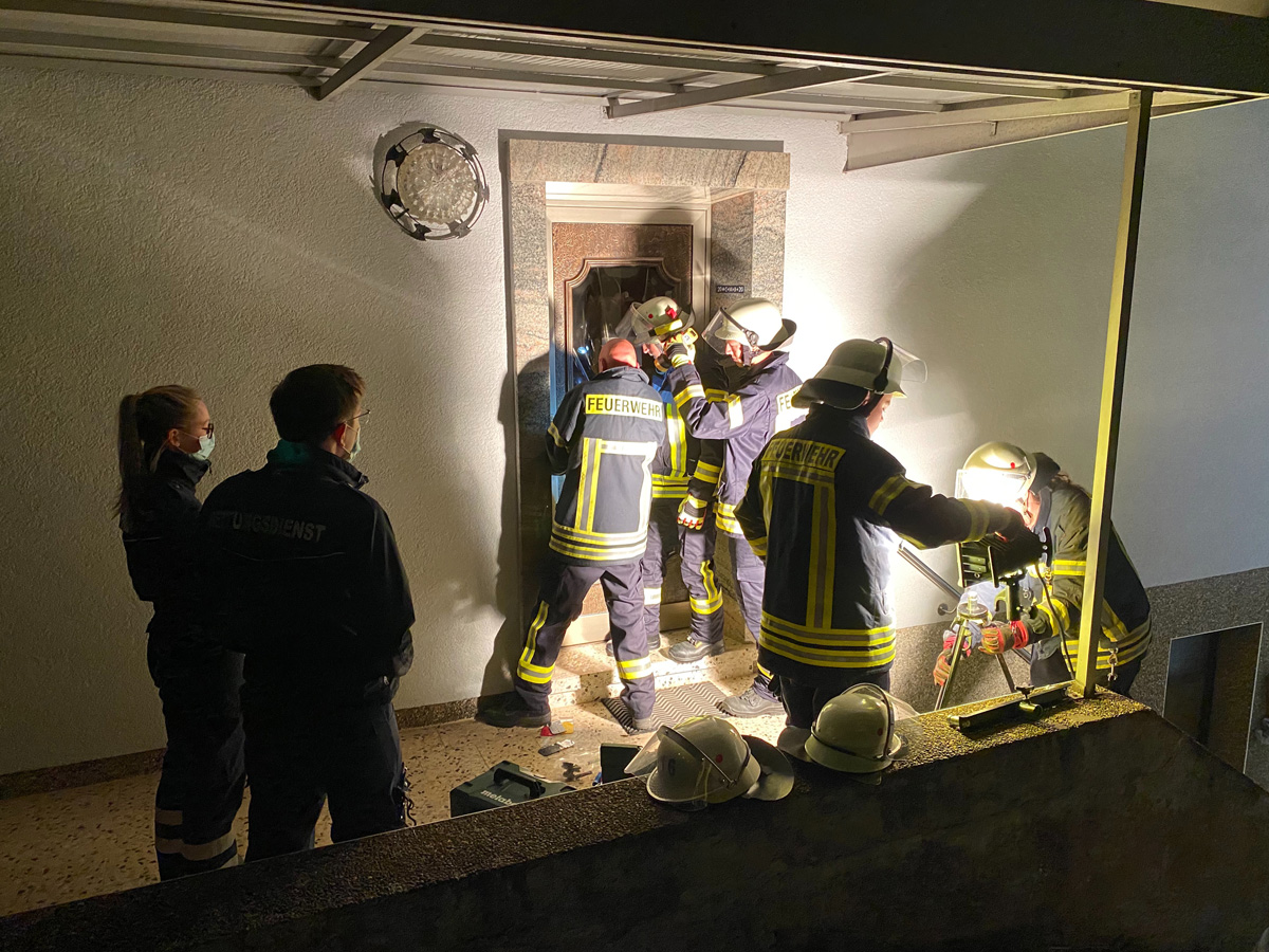 Die Feuerwehr konnte sich durch ein Kellerfenster einen Zugang zum Wohnhaus verschaffen und die Eingangstür für den Rettungsdienst öffnen. Nachdem das Fenster wieder verschlossen worden war, konnte die Einsatzstelle an Rettungsdienst und Polizei übergeben werden.