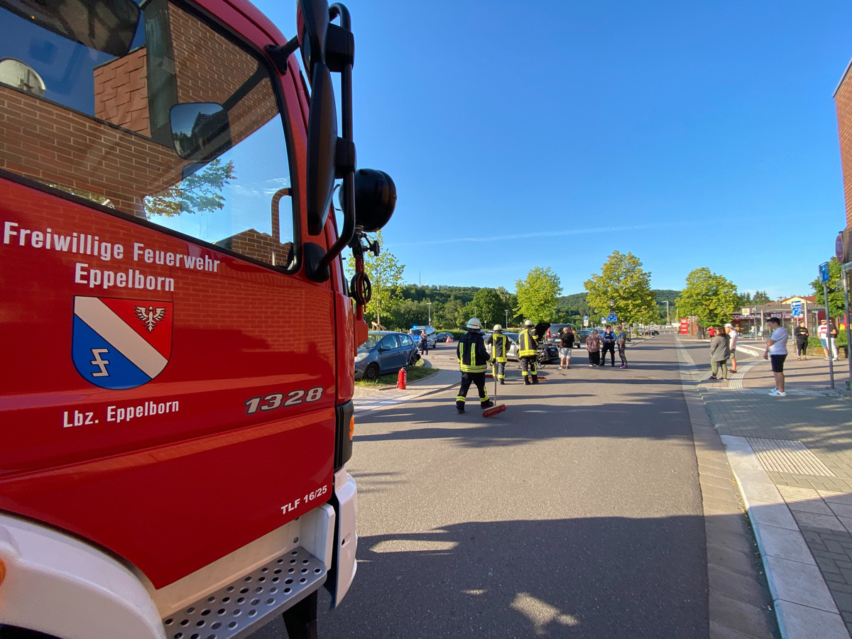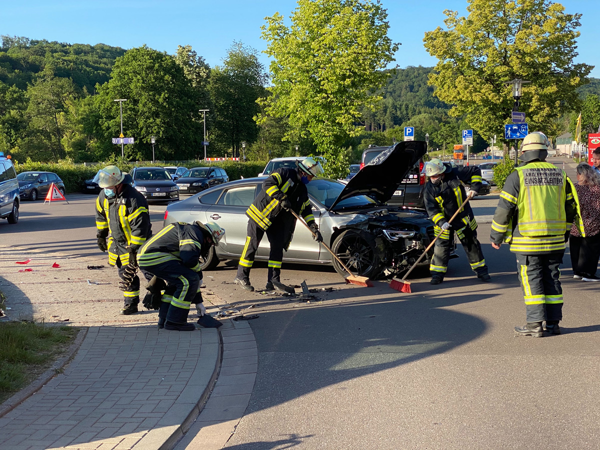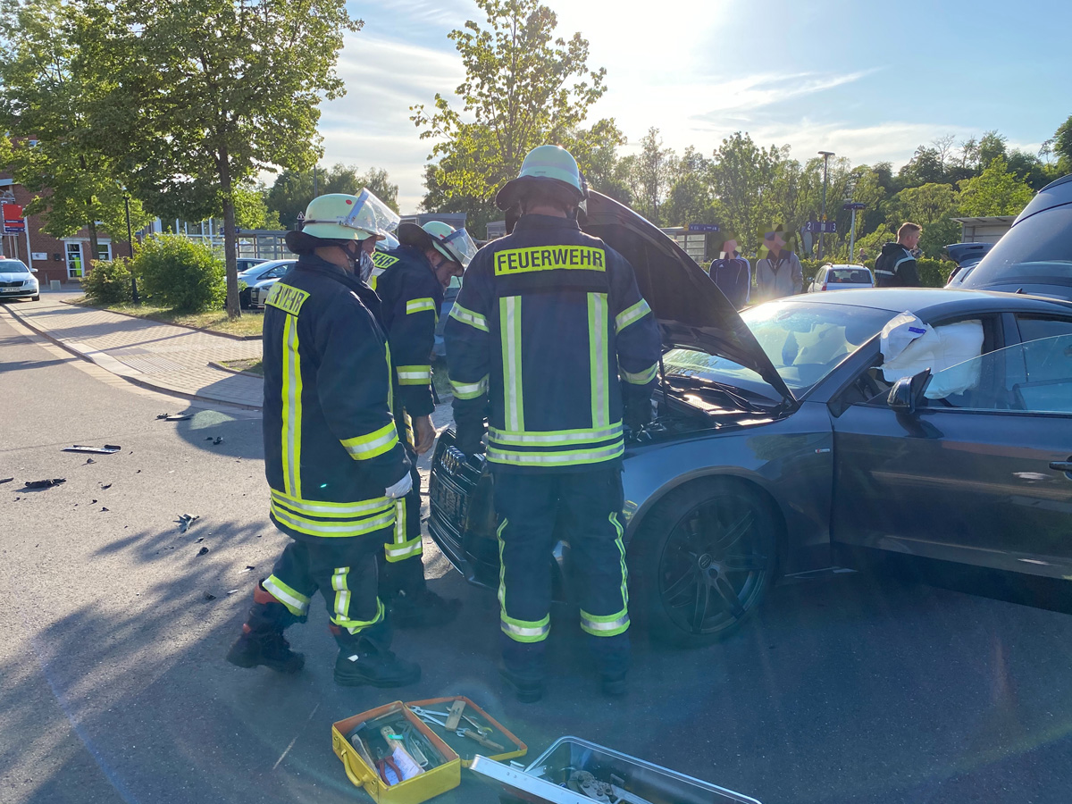 Augenzeugen, die den Unfall beobachtet hatten, bemerkten Rauch und alarmierten die Feuerwehr. Beim Eintreffen der Einsatzkräfte hatte sich der Unfallfahrer bereits selbst aus dem Fahrzeug befreien können, ein Brand konnte nicht festgestellt werden. Zur Sicherheit wurde die Fahrzeugbatterie abgeklemmt. Nach der Unfallaufnahme durch die Polizei räumte die Feuerwehr die Trümmerteile der beiden Fahrzeuge von der Fahrbahn.