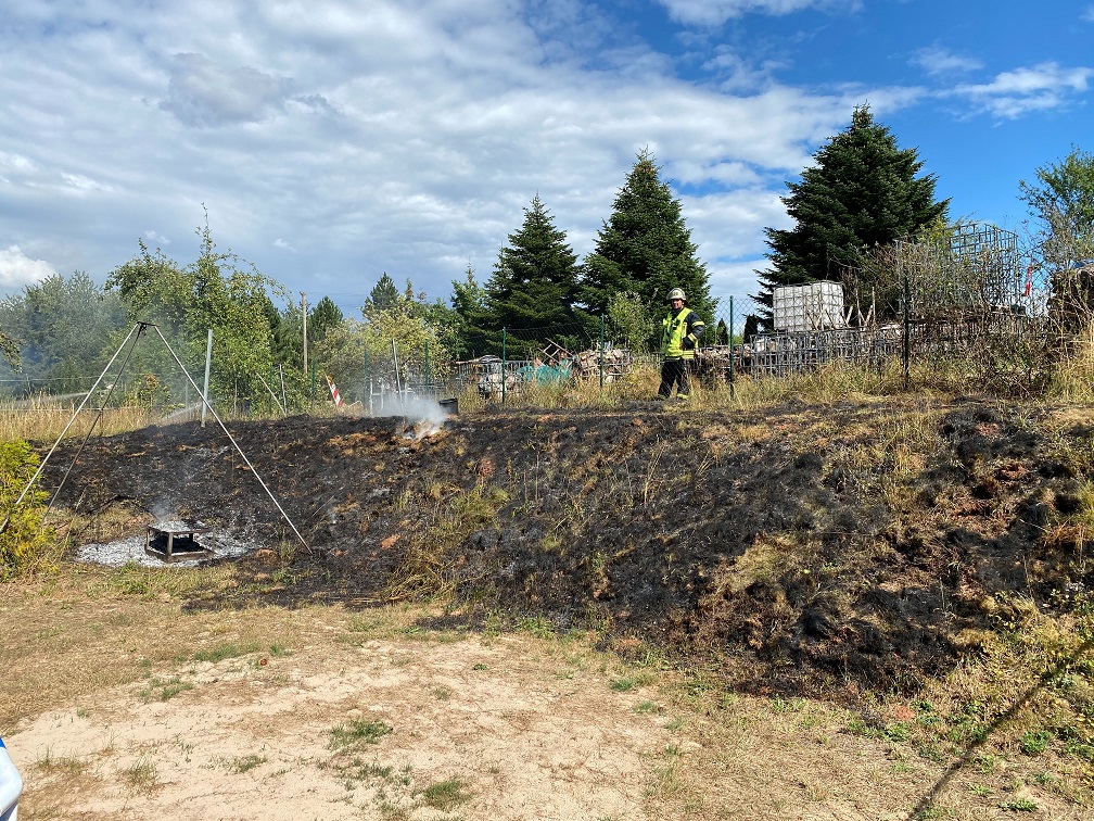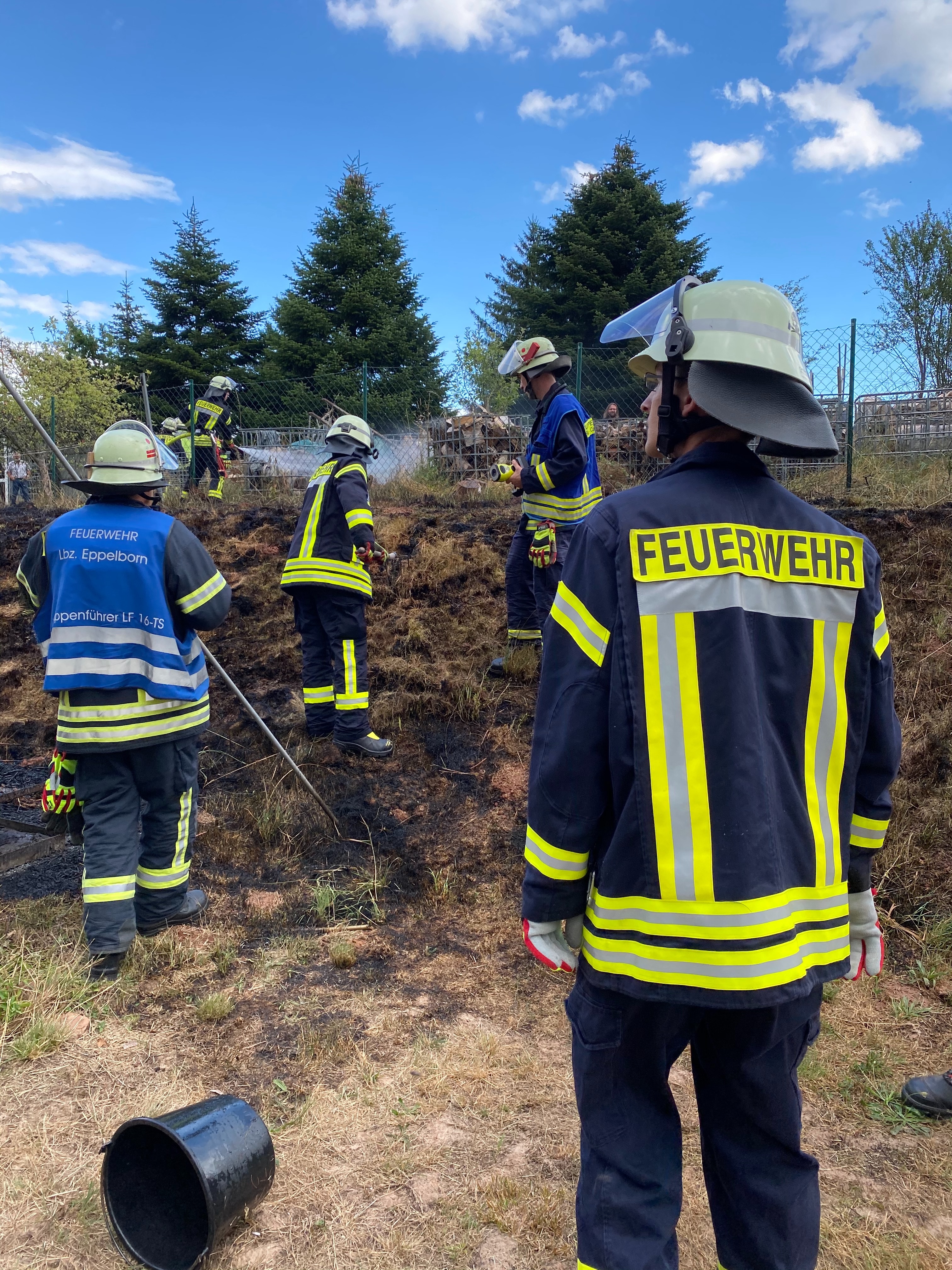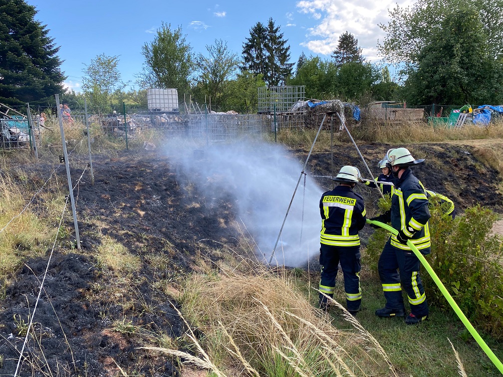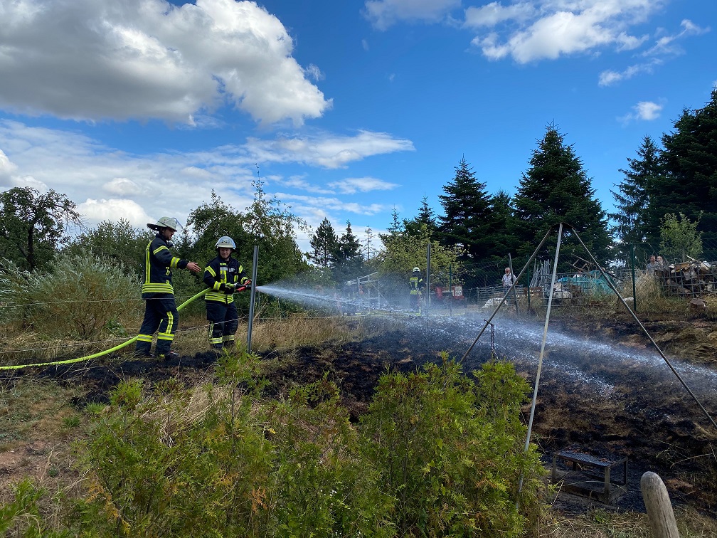 Auch der lang ersehnte Regen der Nacht vom 16. auf den 17.08.2020 war nur ein Tropfen auf den heißen Stein sodass am Nachmittag des 17. August eine Wiesenfläche hinter einem Wohnhaus in der Straße "Im halben Mond" Feuer fing.