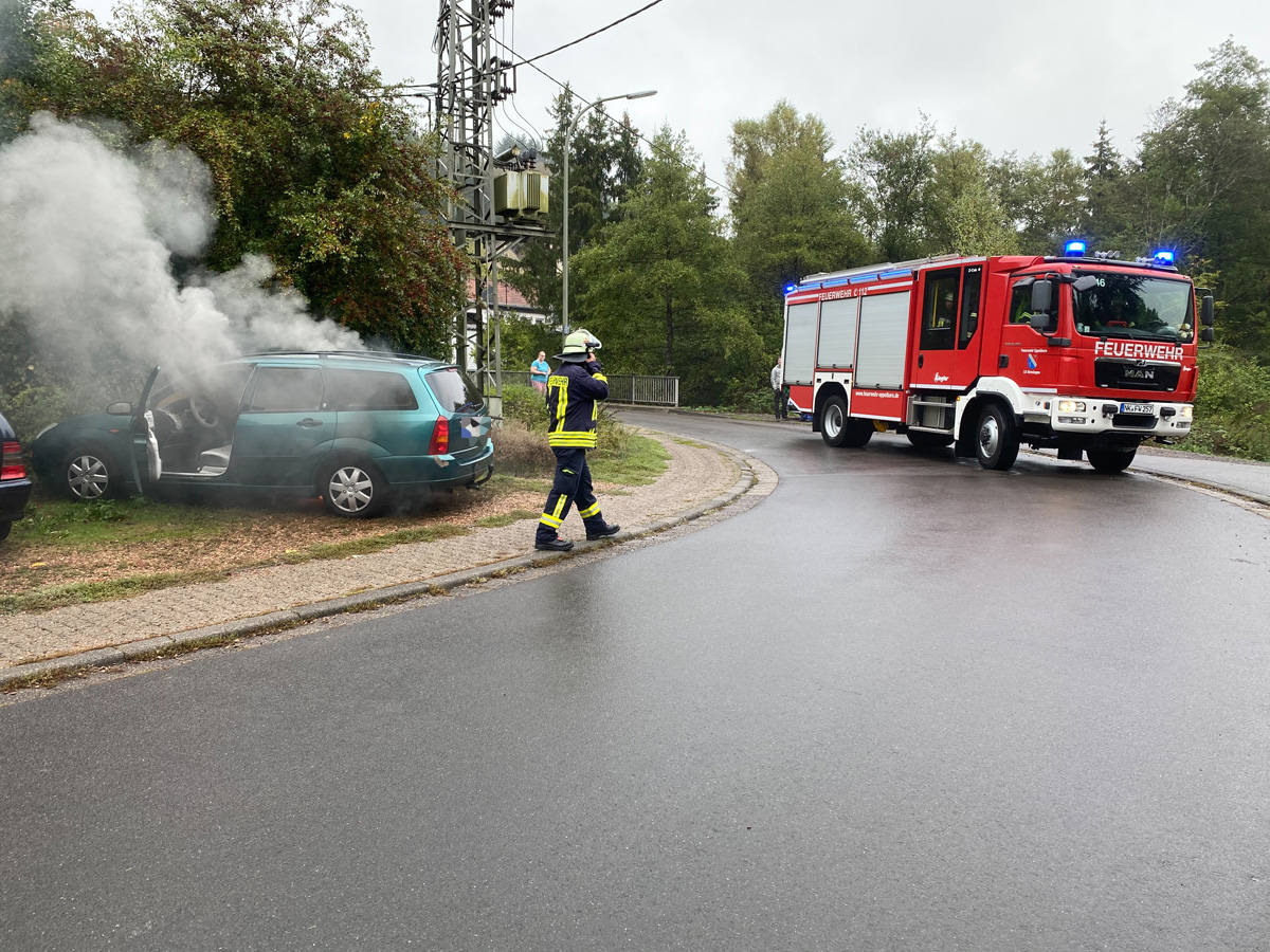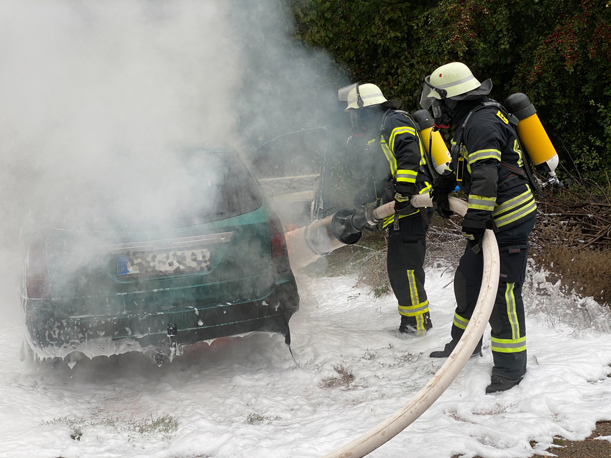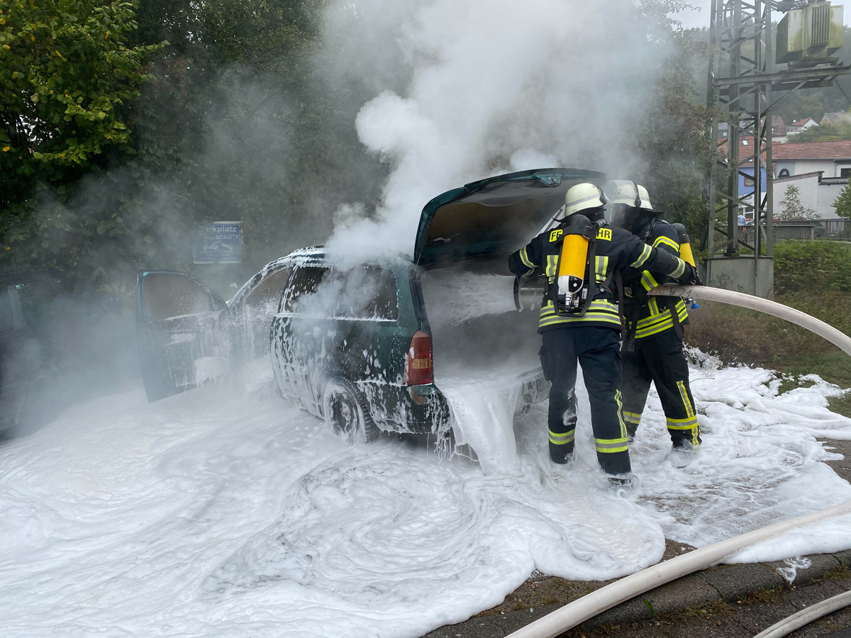 Am Morgen des 30. September 2020 wurde der Löschbezirk zu einem Fahrzeugbrand in das Gewerbegebiet "In Baden" alarmiert. Passanten hatten einen dort abgestellten Pkw bemerkt, dessen Innenraum mit dichtem Rauch gefüllt war und den Notruf gewählt. Erste Löschversuche mit einem Feuerlöscher vor Eintreffen der Feuerwehr blieben ohne Erfolg. Unter Atemschutz versuchte ein Trupp, den Brand mit Wasser zu löschen. Auslaufendes, sich entzündendes Benzin erschwerte aber die Brandbekämpfungsmaßnahmen, sodass der Einsatz von Schaummittel notwendig wurde. Ein Übergreifen auf weitere Fahrzeuge konnte durch das schnelle Eingreifen der Feuerwehr verhindert werden. Am betroffenen Fahrzeug entstand durch den Brand Totalschaden. Die Brandursache ist ungeklärt, die Polizei hat die weiteren Ermittlungen übernommen.