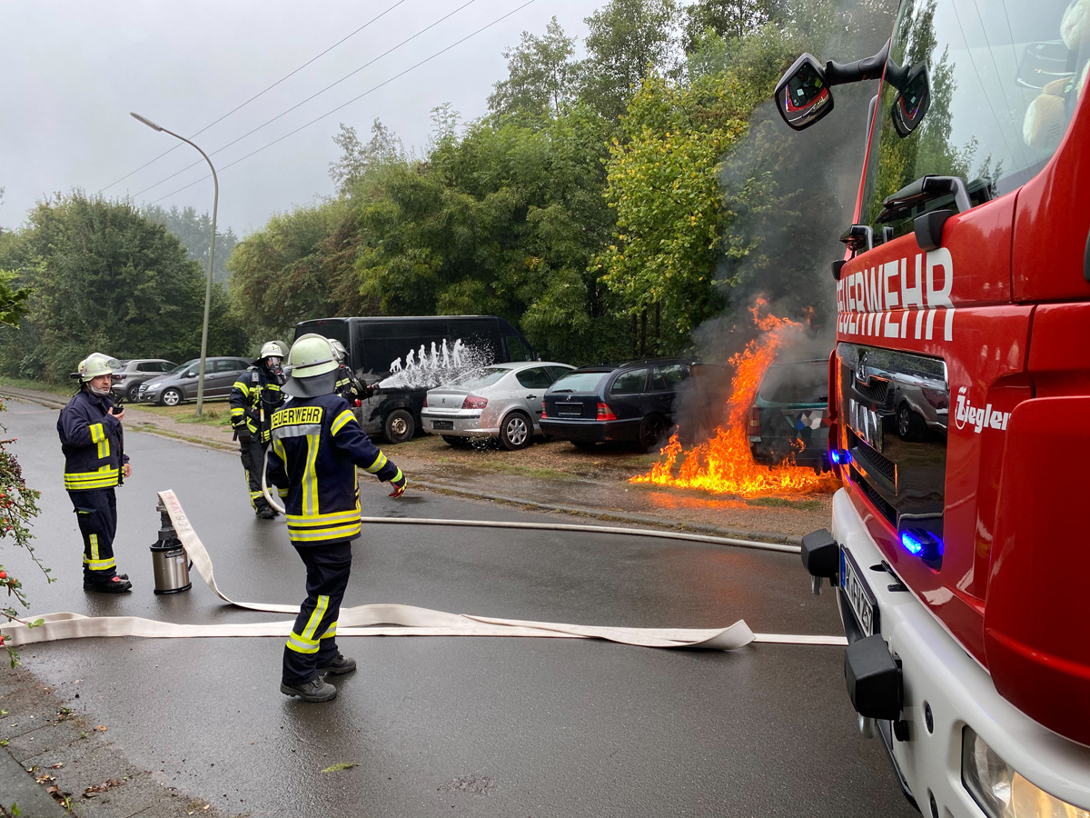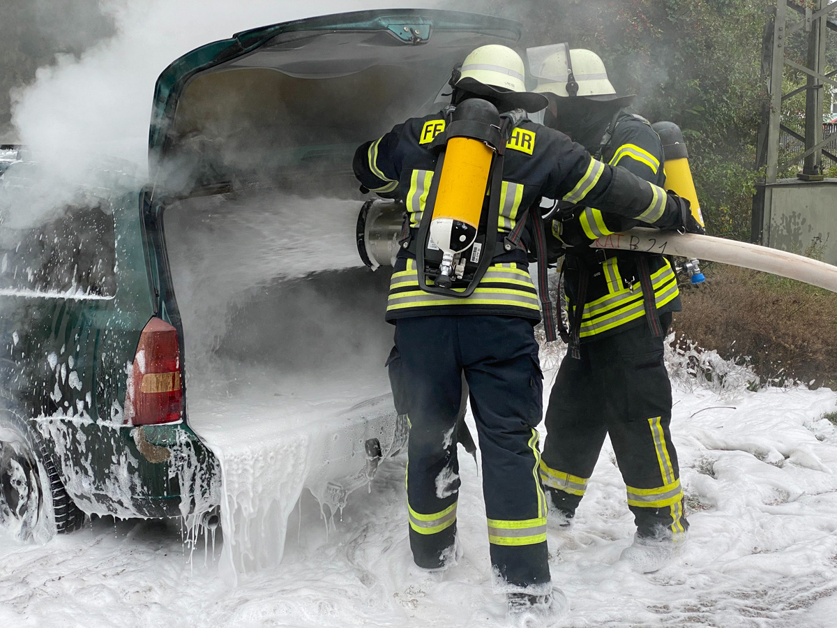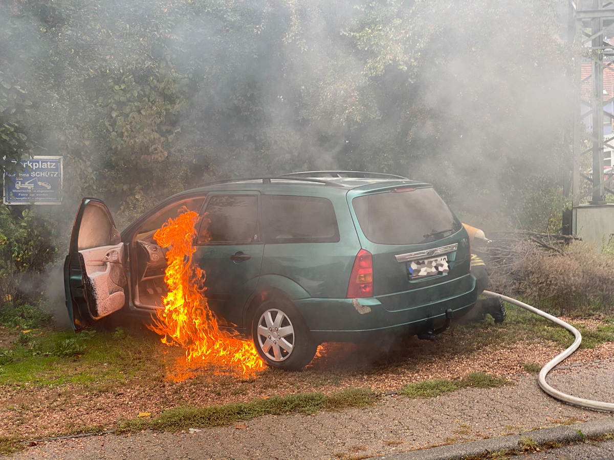 Am Morgen des 30. September 2020 wurde der Löschbezirk zu einem Fahrzeugbrand in das Gewerbegebiet "In Baden" alarmiert. Passanten hatten einen dort abgestellten Pkw bemerkt, dessen Innenraum mit dichtem Rauch gefüllt war und den Notruf gewählt. Erste Löschversuche mit einem Feuerlöscher vor Eintreffen der Feuerwehr blieben ohne Erfolg. Unter Atemschutz versuchte ein Trupp, den Brand mit Wasser zu löschen. Auslaufendes, sich entzündendes Benzin erschwerte aber die Brandbekämpfungsmaßnahmen, sodass der Einsatz von Schaummittel notwendig wurde. Ein Übergreifen auf weitere Fahrzeuge konnte durch das schnelle Eingreifen der Feuerwehr verhindert werden. Am betroffenen Fahrzeug entstand durch den Brand Totalschaden. Die Brandursache ist ungeklärt, die Polizei hat die weiteren Ermittlungen übernommen.