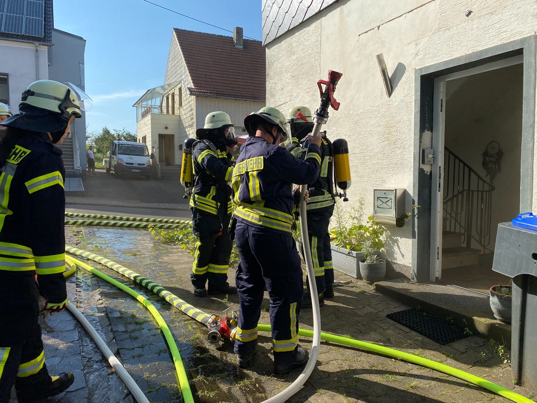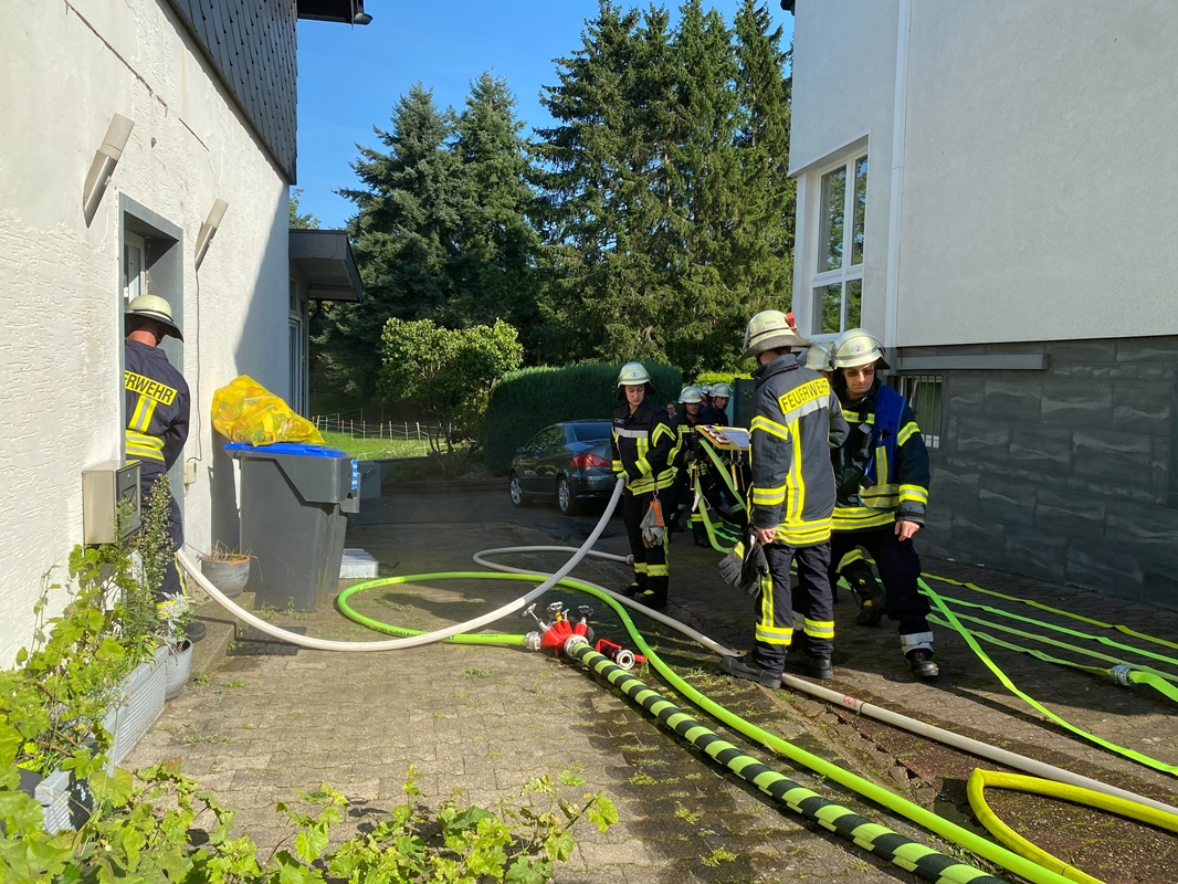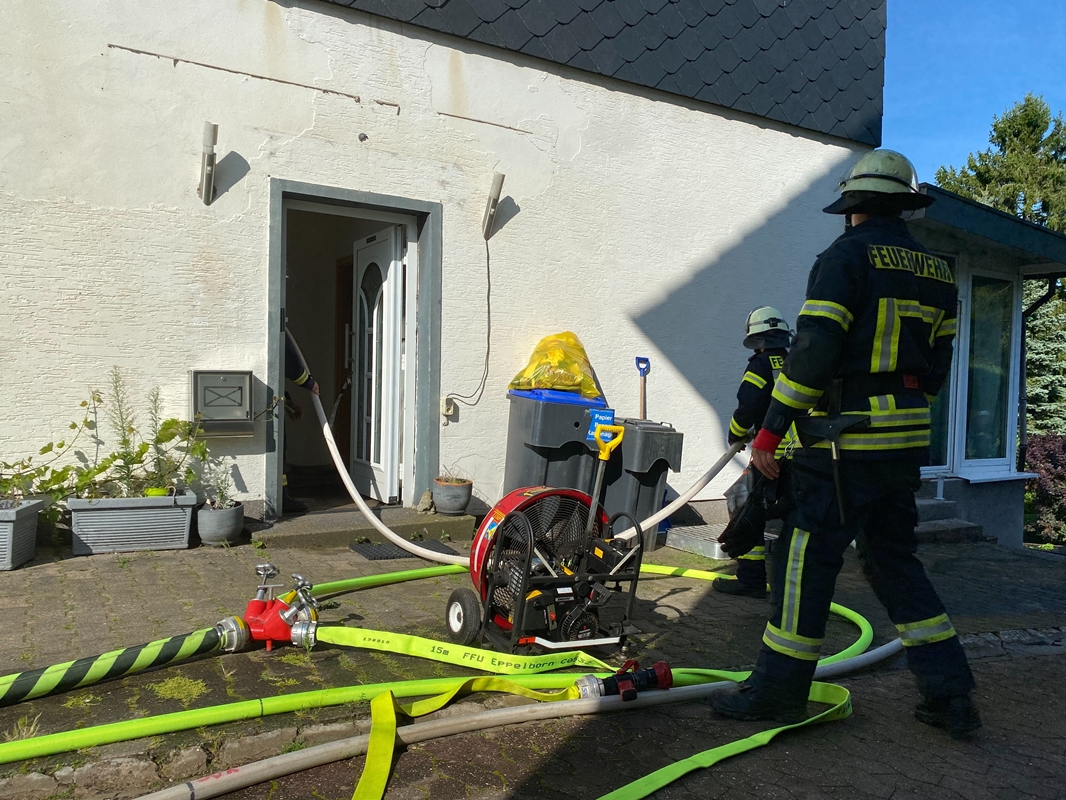 Am Donnerstagnachmittag gegen 17:12 Uhr heulten in den Ortsteilen Eppelborn sowie Bubach-Calmesweiler die Sirenen auf. Grund hierfür war eine Brandmeldung in einem Wohnhaus in der im Ortsteil Eppelborn gelegenen Pastor-Vogt-Straße. Bei der Leitstelle wurde ein Zimmerbrand gemeldet. Bemerkt wurde der Brand, als die Mieter des Wohnhauses nach der Arbeit zurück nach Hause kamen und die Haustür aufsperrten. Sofort kam Ihnen dichter dunkler Rauch entgegen. Da sich noch die Hunde der Familie im Haus befanden, retteten sie diese noch vor Eintreffen der Feuerwehr aus der verrauchten Wohnung. Ansonsten befand sich glücklicherweise niemand mehr im Gebäude. Bei der ersten Erkundung um das Gebäude, konnten durch Hitze stark verformte Rollläden im ersten Stock festgestellt werden. Unverzüglich begab sich ein Trupp unter Atemschutz in die Brandwohnung um das Feuer zu lokalisieren. Nach kurzer Zeit konnte eine brennende Couch im Obergeschoss als Brandherd ausfindig gemacht werden. Diese wurde kurzerhand auf den Balkon verbracht und dort abgelöscht. Im Anschluss wurde der Brandraum mit einer Wärmebildkamera auf versteckte Glutnester überprüft. Mit Hilfe eines Überdrucklüfters wurde das Gebäude vom Brandrauch befreit. Aufgrund der hohen Temperaturen des Brandes wurde auch die Hauselektrik stark in Mitleidenschaft gezogen, sodass sicherheitshalber das Haus von der Stromversorgung getrennt wurde bis ein Fachunternehmen den Zustand begutachtet. Durch die Ausbreitung des Brandrauches und die Beaufschlagung durch das Feuer im Gebäude wurde das gesamte Wohnhaus unbewohnbar. Ein Hausbewohner wurde aufgrund des Verdachts einer Rauchgasvergiftung in Kombination mit einer Vorerkrankung zur Beobachtung ins Krankenhaus eingeliefert. Zur Unterbringung der beiden Mietparteien wurde auch die Gemeindeverwaltung der Gemeinde Eppelborn kontaktiert, welche im Normalfall für solche Ereignisse immer eine gemeindeeigene Notunterkunft bereithält. Da diese Notunterkunft jedoch zurzeit nicht verfügbar ist, wurde nach einer anderweitigen Lösung zur Unterbringung gesucht. Letztendlich konnten die beiden Mietparteien kurz vor der Nacht noch eine Unterkunft in der benachbarten Gemeinde Heusweiler finden, wo sie gemeinsam mit ihren Hunden zunächst ein Dach über dem Kopf haben. Zur Brandursache und Schadenshöhe kann von Seiten der Feuerwehr keine Angaben gemacht werden. Noch selben Tag hat die Polizei die routinemäßige Ermittlung zur Brandursache aufgenommen. Als besonders knifflig erwies sich die Anfahrt der Feuerwehrkräfte aufgrund der Tatsache, dass sich zurzeit einige große Baustellen in Eppelborn befinden. Nicht nur die Feuerwehrangehörige benötigen teilweise eine längere Anfahrtszeit aufgrund von Umleitungen und Straßensperrungen zum Gerätehaus, so auch die Anfahrt mit den Einsatzfahrzeugen nimmt mehr Zeit in Anspruch. Auch in diesem Fall hat sich wieder die gute Zusammenarbeit zwischen den Löschbezirken der Feuerwehr Eppelborn bewährt. Der Einsatz für die Feuerwehr war nach rund 90 Minuten beendet. Neben den Einsatzkräften der Löschbezirke Eppelborn und Bubach-Calmesweiler war auch der Wehrführer der Feuerwehr Eppelborn sowie der Kreisbrandinspekteur des Landkreises Neunkirchen im Einsatz. Zudem waren Einheiten der Polizei, zwei Rettungswagen und ein Notarzt vor Ort.