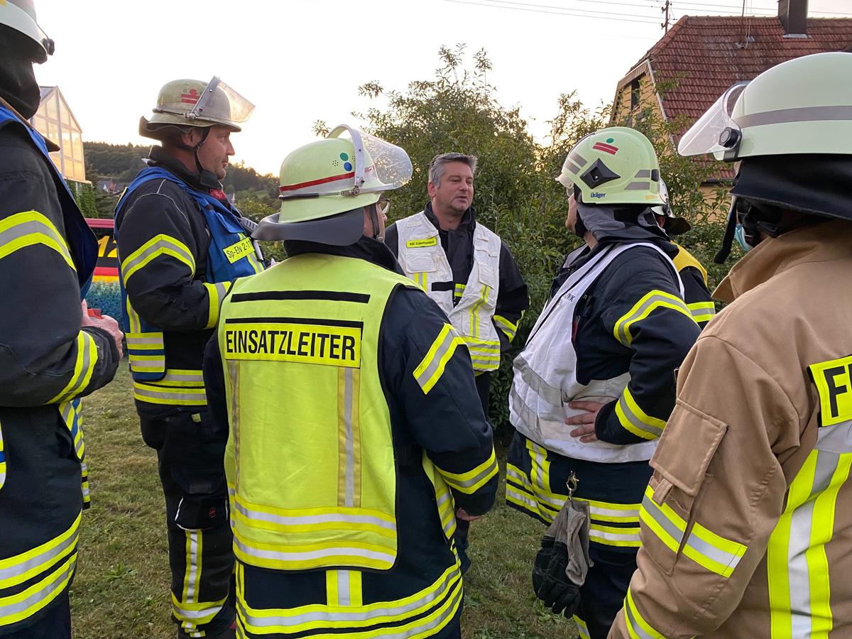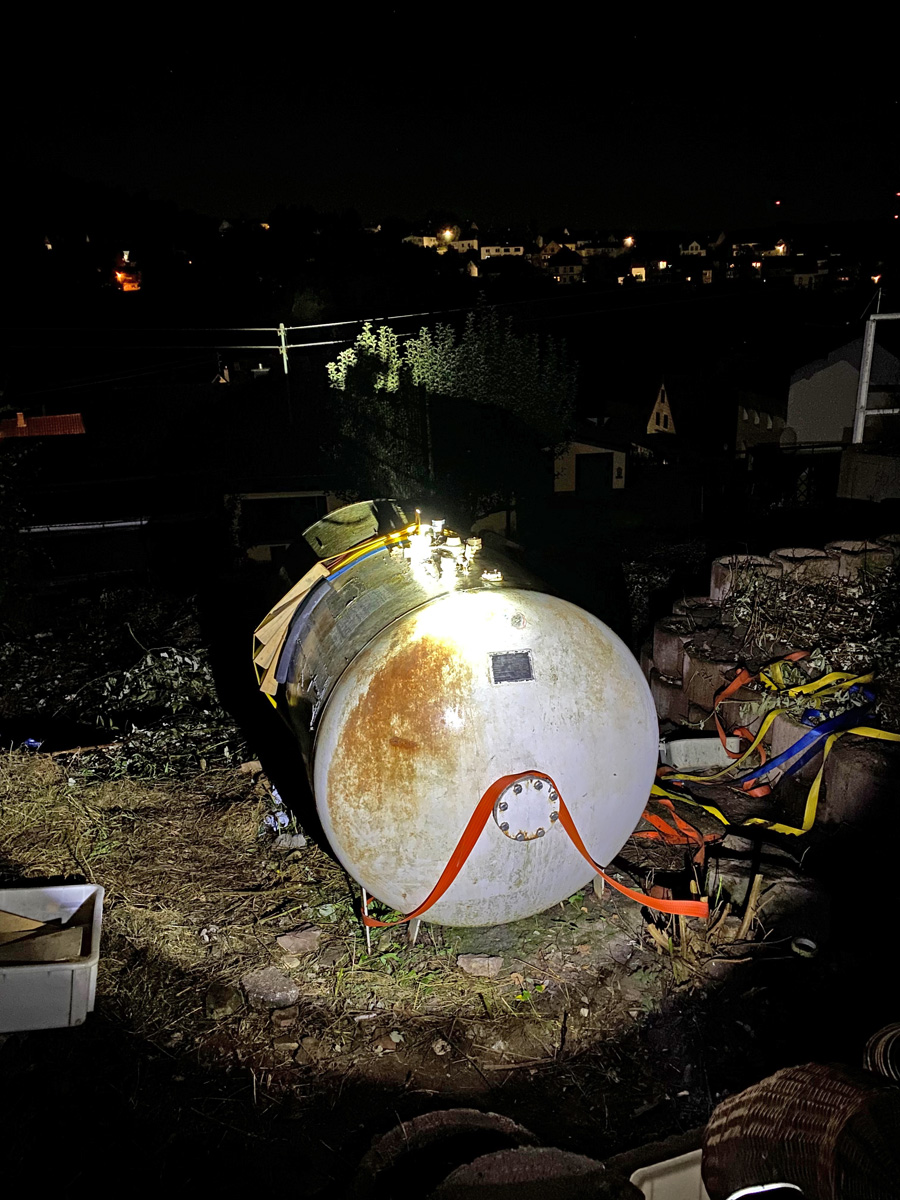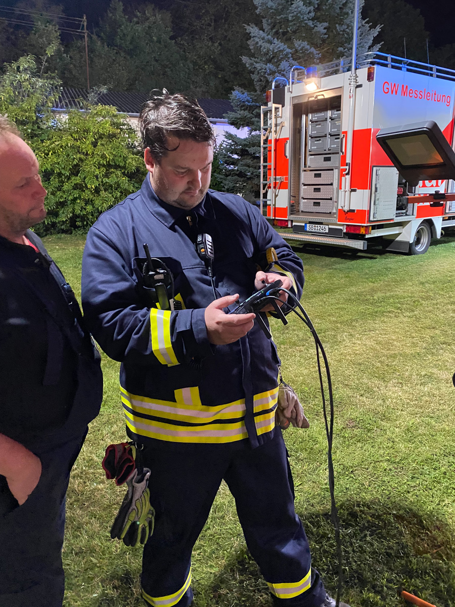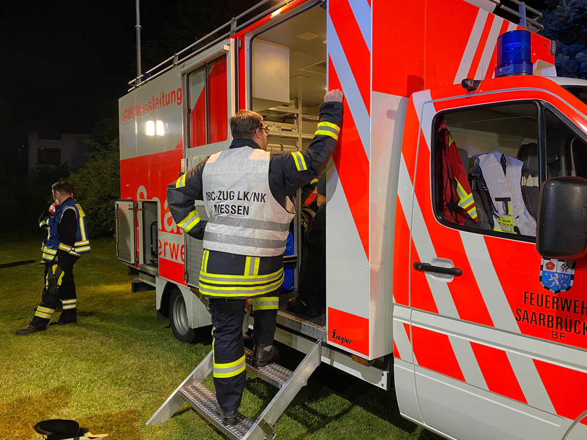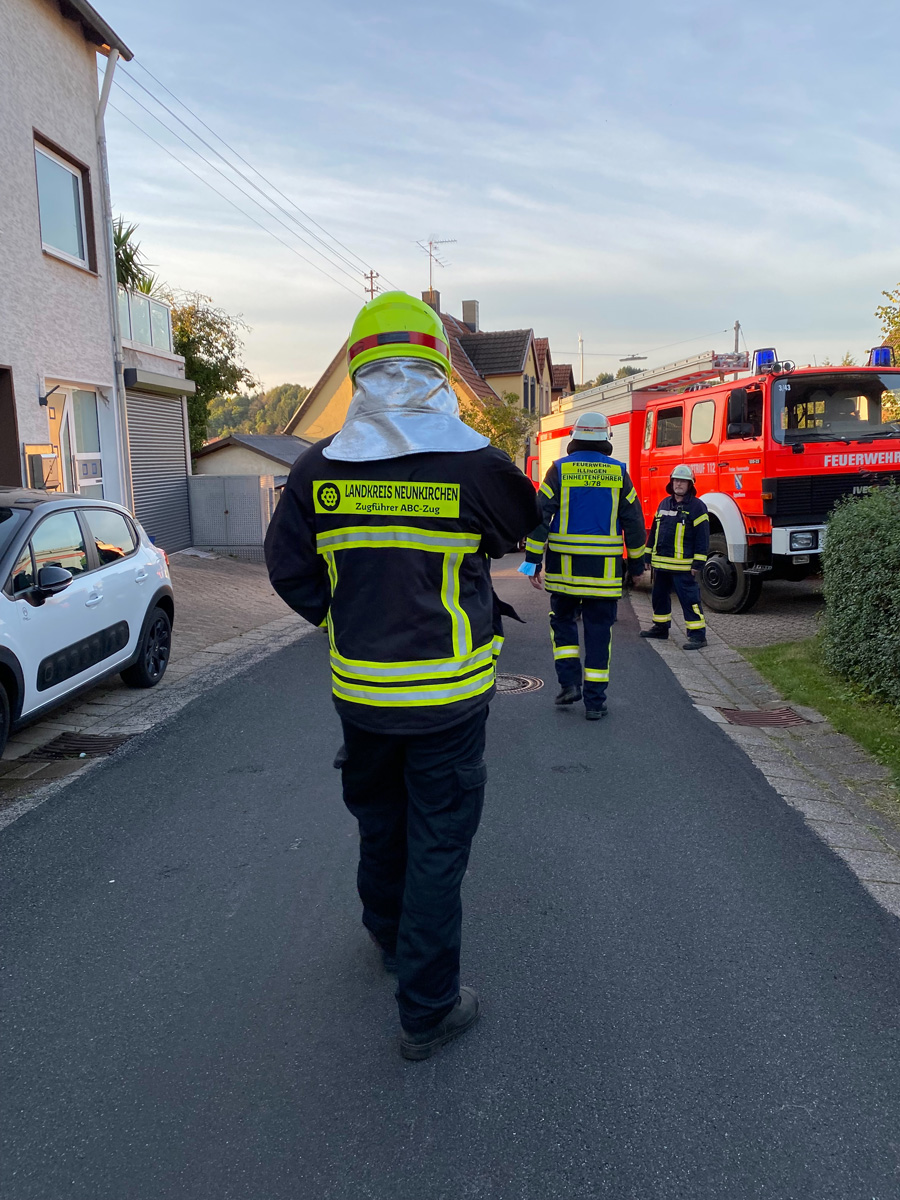 Ein Mann erfüllte sich mit seiner Familie den Traum vom Eigenheim im Eppelborner Ortsteil Dirmingen. Kurz nach dem Kauf sollten die Arbeiten zur Sanierung auf dem Grundstück in der Straße „Lachwies“ los gehen. Am Donnerstagabend, 23. September 2021, wollte sich der Besitzer um einen alten Tank für Flüssiggas im Garten kümmern. Nach eigenen Angaben sei dieser bereits längere Zeit nicht mehr in Betrieb und würde lediglich als Wasserspeicher genutzt. So hätte man es ihm mitgeteilt. Der Mann schritt zur Tat und begann mit einem Winkelschleifer mit einer Trennscheibe am Tank zu werkeln. Als die Wandung des Tanks durchdrungen war, strömte ihm sofort das unter Druck stehende Propangas entgegen. Wie durch ein Wunder kam es bei dem hochentzündlichen Gas nicht zur Explosion. Diese hätte wohl nicht nur Todesopfer und Verletzte gefordert, sondern hätte auch massiven Schaden im Umkreis von mehreren hundert Metern verursacht. [left][cmsimg]11507[/cmsimg][/left] Nachbarn brachten daraufhin die Rettungskette in Bewegung, in dem sie einen Notruf absetzten. Die Rettungsleitstelle alarmierte daraufhin den Löschbezirk Dirmingen sowie eine Teileinheit des Löschbezirks Eppelborn mit einem Mehrgasmessgerät. Zudem wurde der Einheitenführer des ABC Zuges des Landkreis Neunkirchen Alexander Ley gemeinsam mit dem für den Landkreis Neunkirchen zuständigen CBRN-Erkunder der Feuerwehr Illingen – Löschbezirk Wustweiler zur Einsatzstelle entsandt. Diese Art Einsatzfahrzeug hält besondere Messtechnik zum Messen von Gefahrstoffen vor. Nach einer ersten Lageerkundung wurde deutlich, dass hier speziell ausgebildetes Personal und Ausrüstung an der Einsatzstelle benötigt wird. Nachdem die umliegenden Häuser im Gefahrenbereich evakuiert wurden und der Brandschutz durch die erste Einheit aus Dirmingen sichergestellt wurde, lies man weitere Einsatzmittel zur Einsatzstelle alarmieren. [right][cmsimg]11521[/cmsimg][/right] Darunter neben dem Einsatzleitwagen aus Wiesbach und der Teileinheit Drohne aus dem Löschbezirk Eppelborn auch Teileinheiten des ABC Zuges des Landkreises, welche sich aus Einsatzkräften aus verschiedenen Feuerwehren des Kreises zusammensetzen. So auch der Fachberater für chemische Gefahren Dr. Frank Schwan, welcher Mitglied der Feuerwehr Eppelborn ist, die Führungsgruppe des ABC Zuges, den Rüstwagen-Gefahrgut und eine Arbeitsgruppe. Die Gefahr des austretenden Gases bestand hauptsächlich darin, dass dieses ungefähr doppelt so schwer ist wie die Umgebungsluft und es sich somit über dem Boden aufhält und in tieferen Senken, Kanäle oder Räumen wie zum Beispiel Kellerräume ansammelt und dort je nach Konzentration eine explosionsfähige Atmosphäre bildet. Dazu kommt, dass dieses Gas hochentzündlich ist. Ein Betätigen eines Lichtschalters könnte ausreichen, um das Gas zu entzünden. [left][cmsimg]11525[/cmsimg][/left] Um parallel umfangreichere Messungen durchzuführen wurde auch ein weiterer CBRN-Erkunder aus dem Landkreis Sankt Wendel, sowie der Gerätewagen Mess-Leit der Berufsfeuerwehr Saarbrücken, welcher für die Koordination der CBRN-Erkunder zuständig ist, alarmiert. Ebenfalls wurden der Energieversorger zum Abschalten des Stroms und der Wasserversorger mit den Kanalplänen zur Einsatzstelle gerufen. Nach einer ersten Beratschlagung mit dem Fachberater Chemie wurde versucht, mit benetzten Tüchern die Leckage zu verschießen. In der Theorie sollten die Tücher durch das eiskalte Gas festfrieren und so das Leck abdichten. Dies führte in der Praxis jedoch nicht zum Ziel, sodass mit Abdichtmaterial und Zurrgurten versucht wurden den Schnitt abzudichten. [right][cmsimg]11527[/cmsimg][/right] Aufgrund der sauerstoffverdrängenden Eigenschaft von Propangas mussten die Arbeiten unter umluftunabhängigem Atemschutz durchgeführt werden. Auch nicht jedes Einsatzmittel durfte mit in den Einsatzraum genommen werden. Zugelassen sind dort nur welche, die keine Funkenbildung verursachen können und im Fachjargon als „Ex-geschützt“ gekennzeichnet sind. Aufgrund des hohen Bedarf an Atemschutzgeräten wurde auch der Gerätewagen-Atemschutz zur Einsatzstelle geschickt. Im gleichem Zug hat man auch noch eine Atemschutzgeräteträger-Reserve aus dem Löschbezirk Bubach-Calmesweiler angefordert, welche sich im Bereitstellungsraum auf dem Dirminger Marktplatz bereit hielt. [left][cmsimg]11546[/cmsimg][/left] Lange hielt die Abdichtung jedoch nicht, da sich das Gas leicht erwärmte, sich daraufhin ausdehnte und Druck aufbaute. Bereits nach einigen Minuten drückte sich das Gas an der Abdichtung heraus. Parallel wurde auch eine Fachfirma über den Notdienst FSD (Flüssiggas-Sicherheitsdienst) über die Rettungsleitstelle angefordert. Mit einem speziellen Fahrzeug sollte der Gastank leer gepumpt werden. Jedoch hatte das Fahrzeug aus der Nähe von Idar-Oberstein eine Anfahrtszeit von über 2 Stunden. Um sich ein weiträumiges Bild der Einsatzstelle zu machen wurde durch die Drohneneinheit der Feuerwehr Eppelborn eine Drohne über der Einsatzstelle positioniert. So konnte unter anderem eine rauchende Person auf einem Balkon im äußeren Gefahrenbereich ausfindig gemacht und vor der Gefahr gewarnt werden. [right][cmsimg]11535[/cmsimg][/right] Aufgrund der Länge des Einsatzes wurden auch die Mannschaftstransportwagen aus den Löschbezirken Habach, Humes-Hierscheid und Bubach-Calmesweiler für Logistikaufgaben angefordert. Deren Aufgabenbereich erstreckte sich über die Verpflegung der Einsatzkräfte sowie über den Transport von Einsatzkräften und Personen von der Einsatzstelle zu einer Notunterkunft in der Borwieshalle für die evakuierten Anwohner. Neben dem Kreisbrandinspekteur Michael Sieslack war auch der Bürgermeister der Gemeinde Eppelborn Dr. Andreas Feld sowie Ortsvorsteher von Dirmingen Frank Klein vor Ort. Nachdem das Umpumpen abgeschlossen war, konnte mit der Freimessung der evakuierten Wohnhäuser begonnen werden. Hierzu kamen erneut die Messeinheiten des CBRN-Erkunde