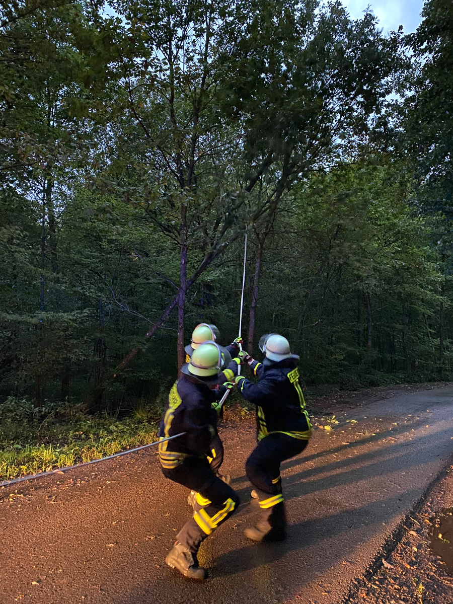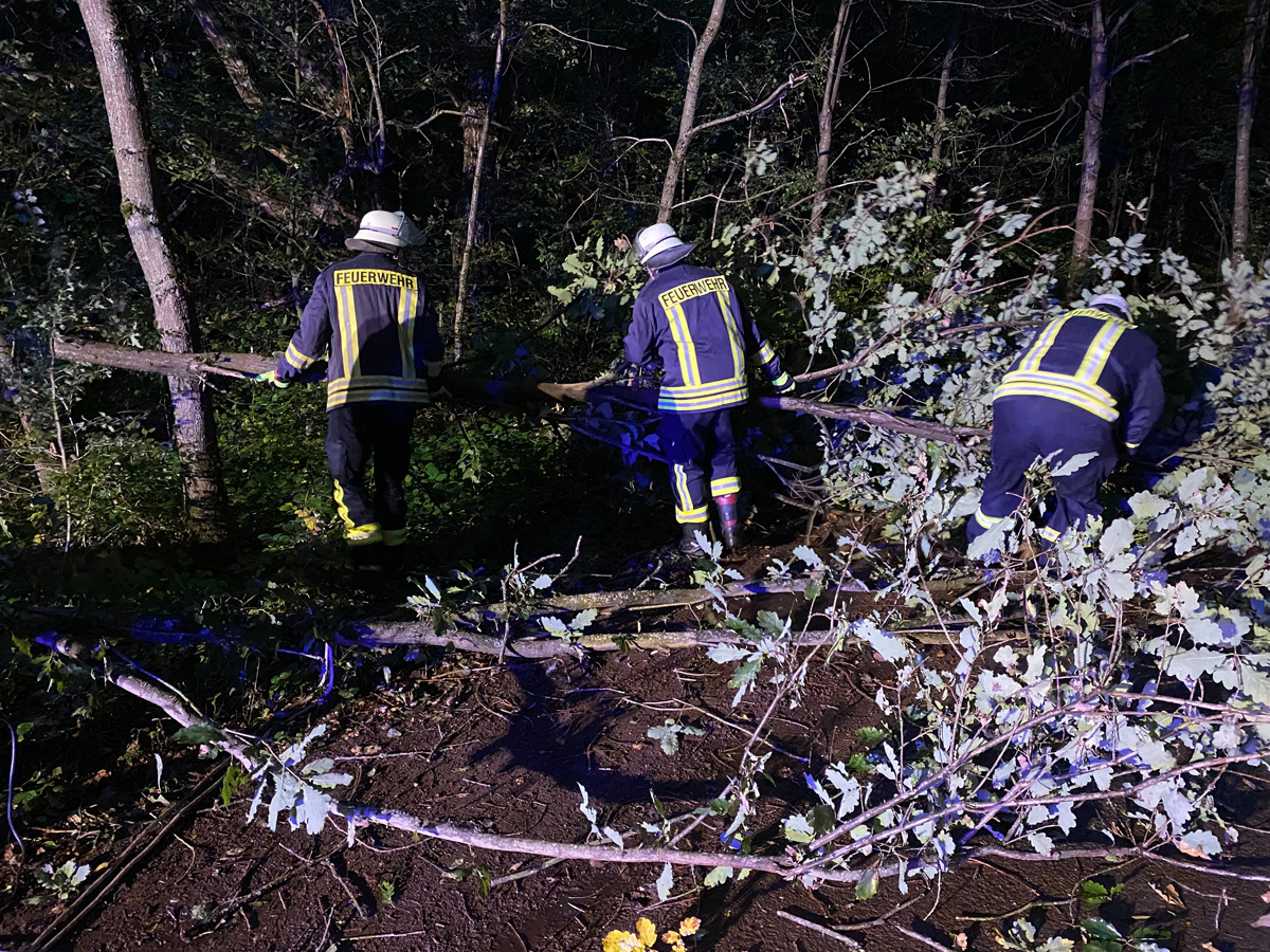 Gegen 14:07 Uhr wurde der Löschbezirk Bubach-Calmesweiler in die Henselbergstraße gerufen, weil ein Baum auf die Fahrbahn gefallen war und die Durchfahrt versperrte. Gegen 18:48 musste der Löschbezirk Habach in der Verlängerung der Straße „zu den Eichenstangen“ tätig werden. Auch dort drohte ein Baum auf die Fahrbahn zu stürzen.