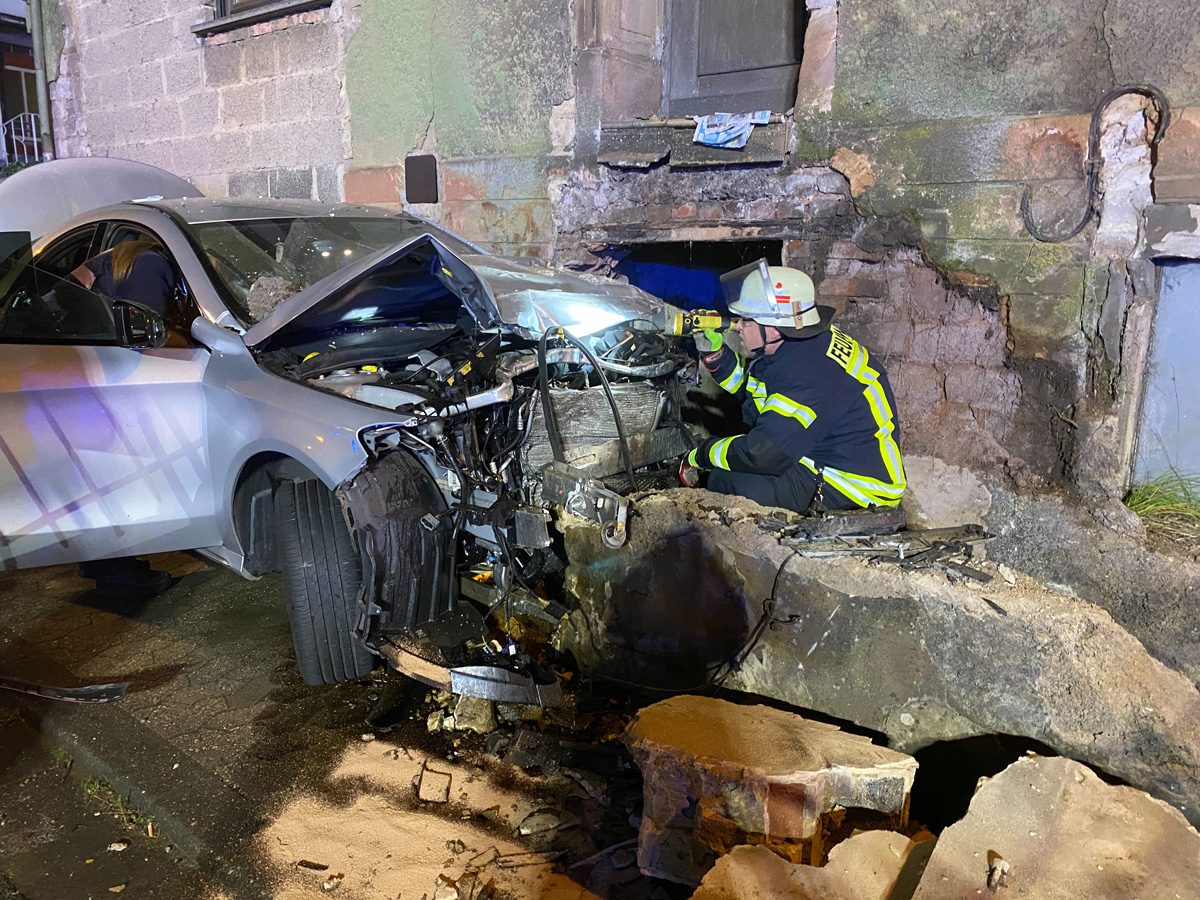 Pkw kracht in Treppe – Fahrer und Fahrzeuginsasse flüchten nach Unfall