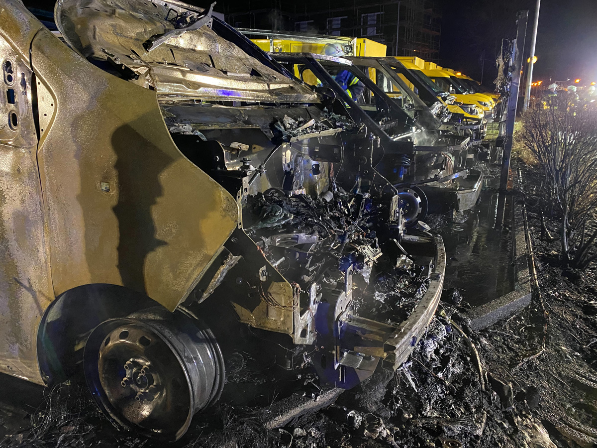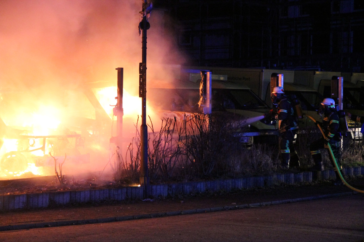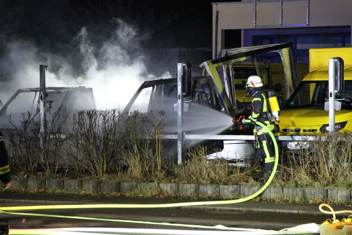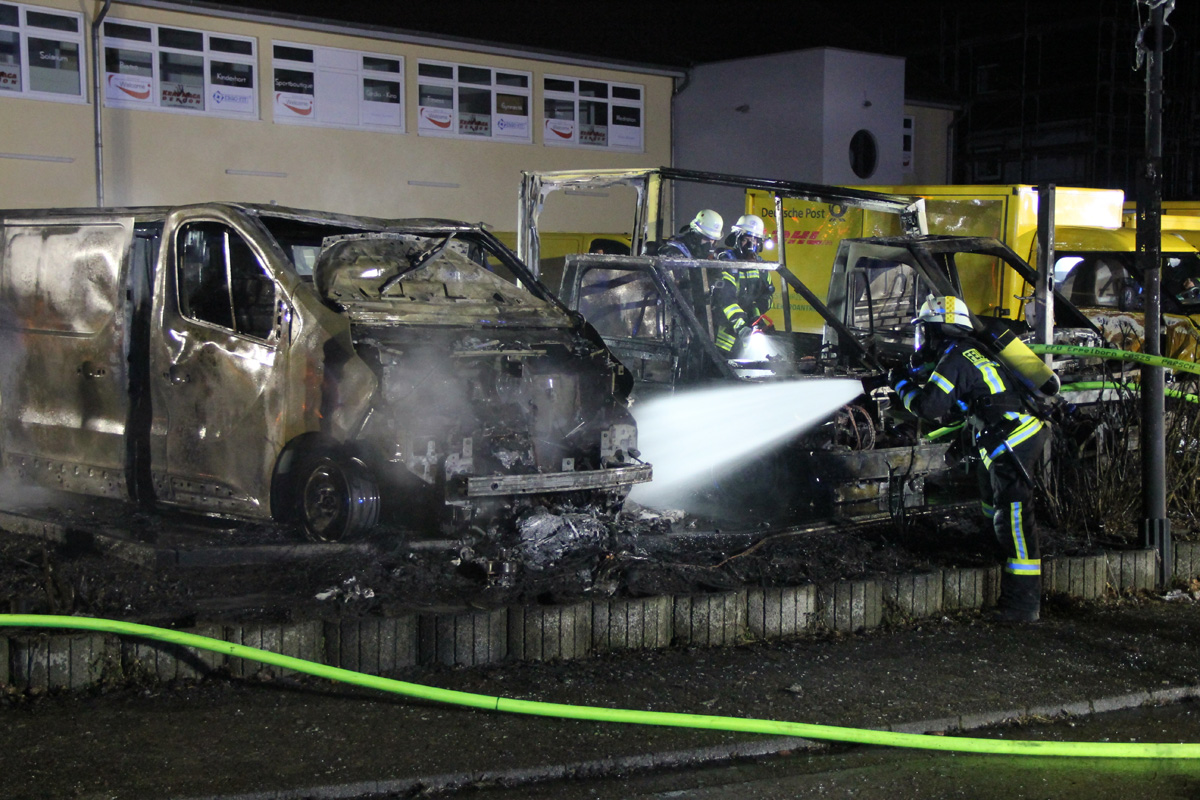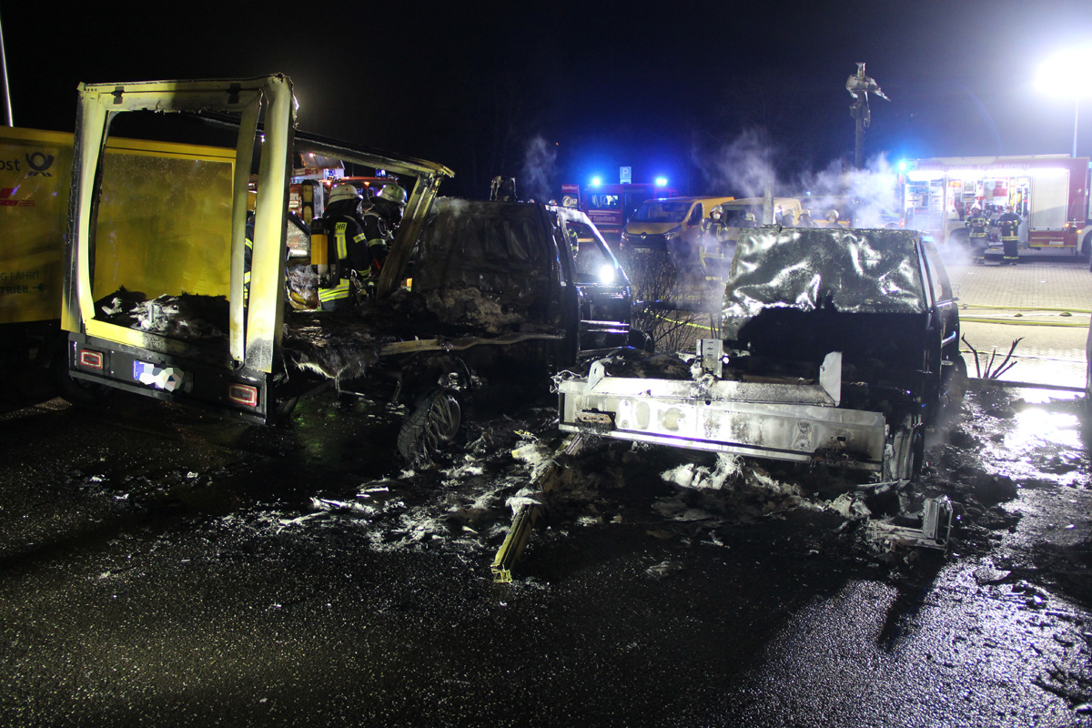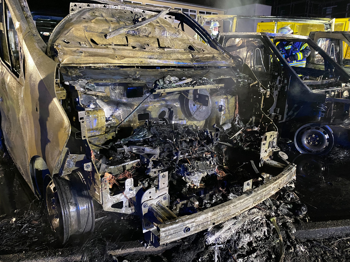 Zwei StreetScooter und ein Transporter der Post gehen in Flammen auf