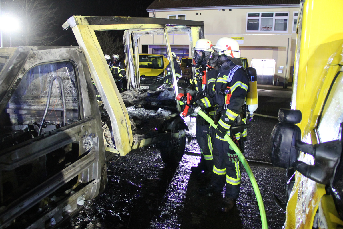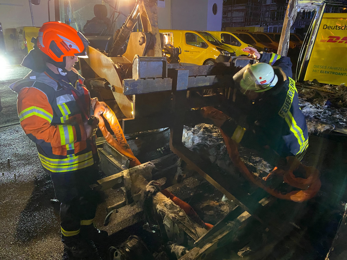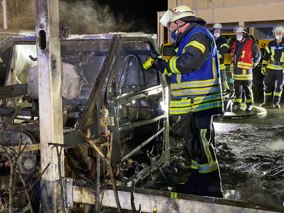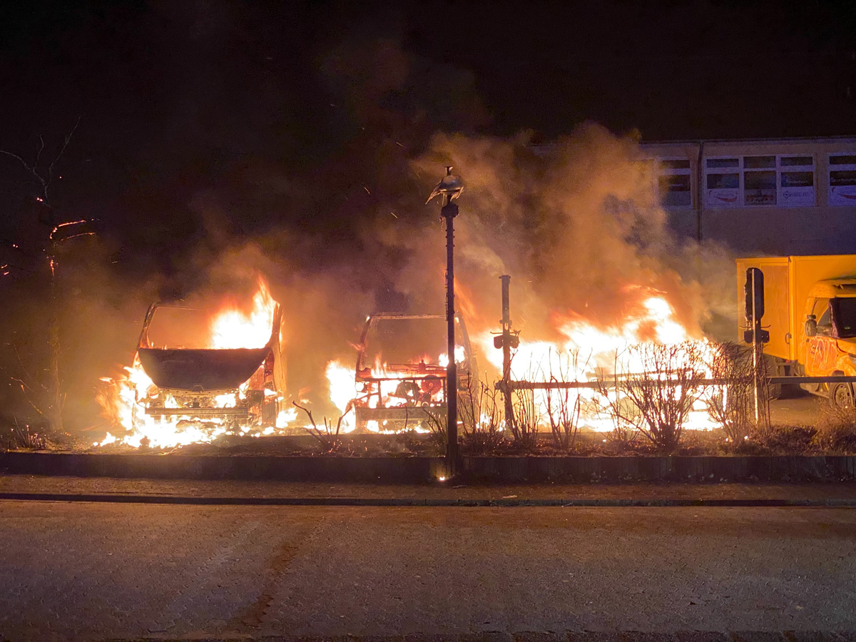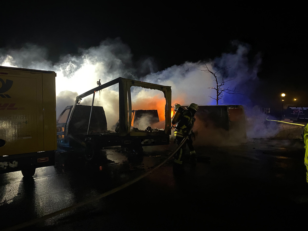 Zwei StreetScooter und ein Transporter der Post gehen in Flammen auf