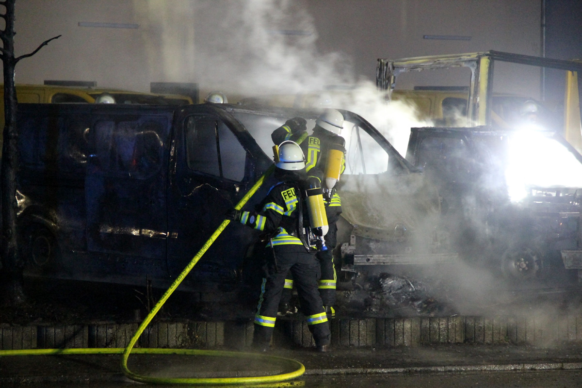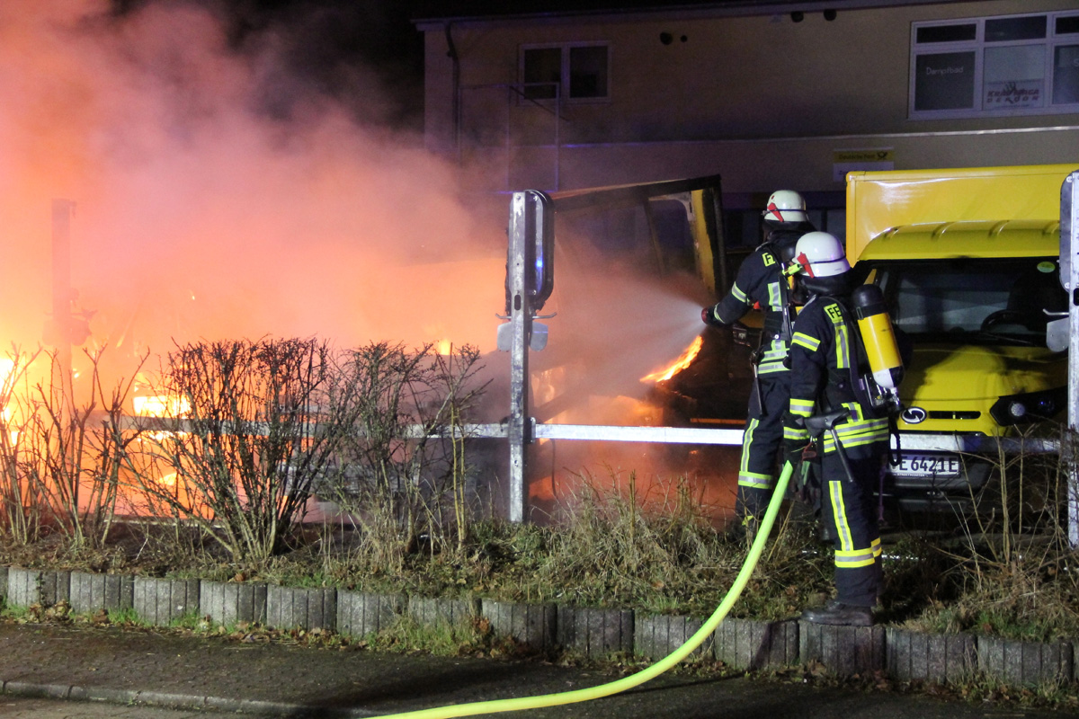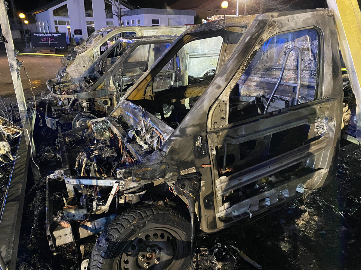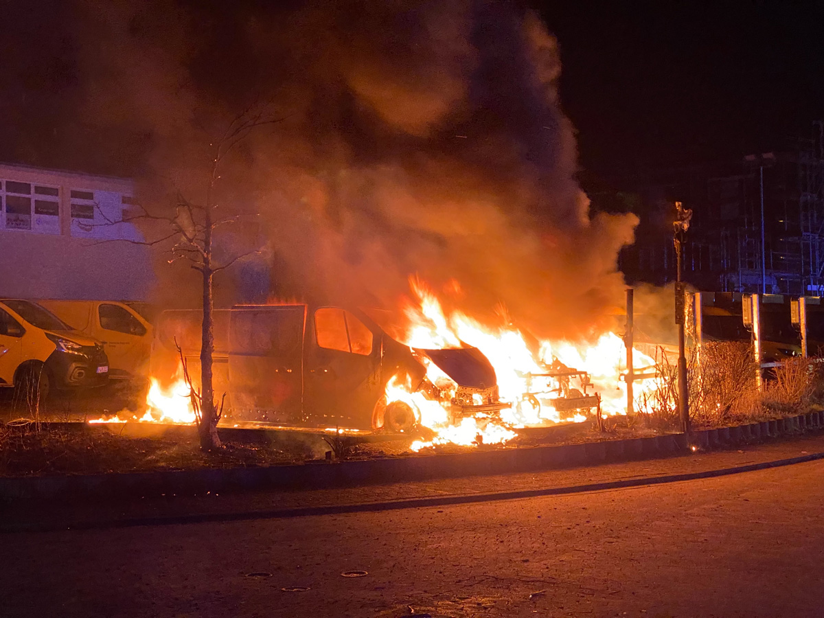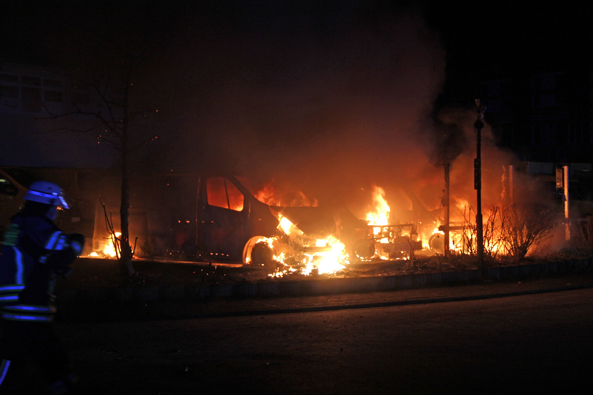 Zwei StreetScooter und ein Transporter der Post gehen in Flammen auf