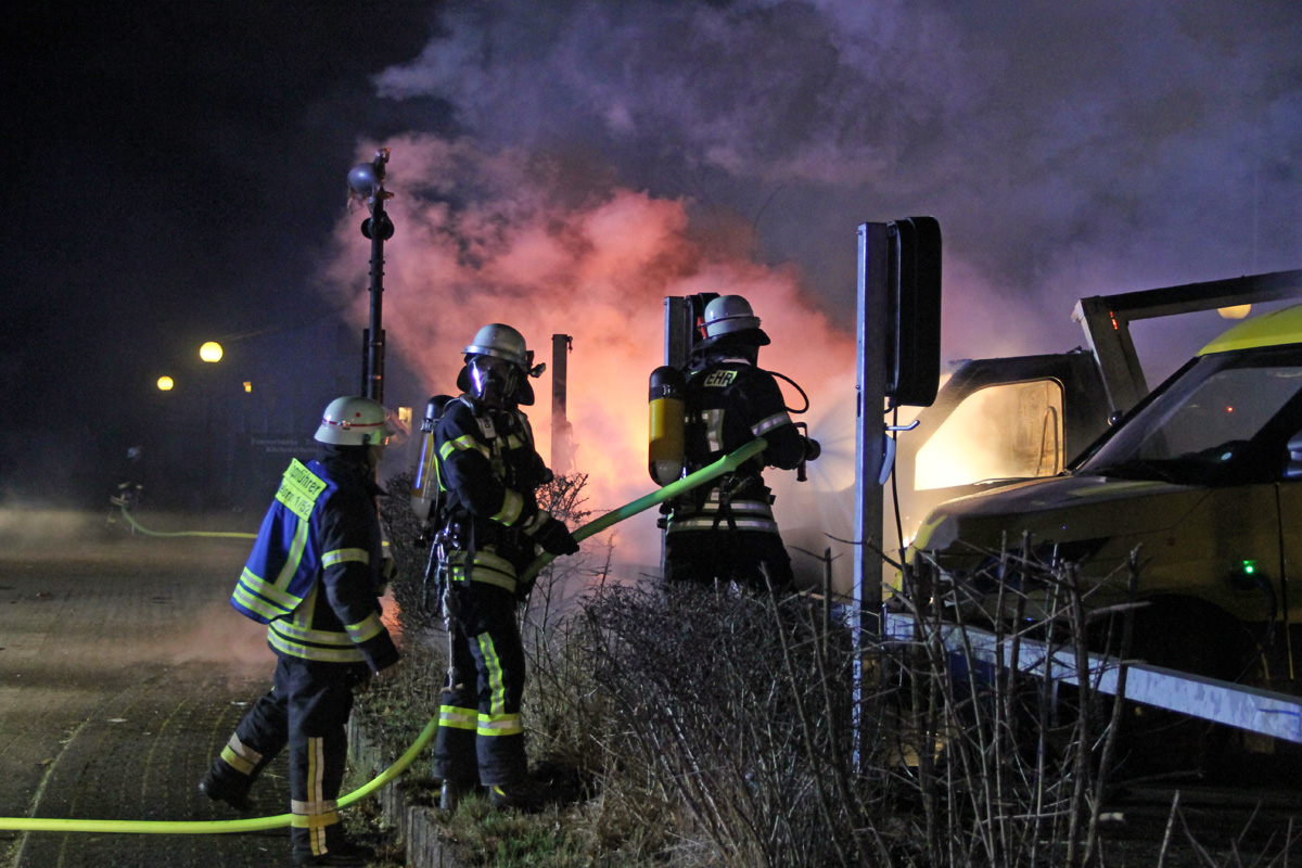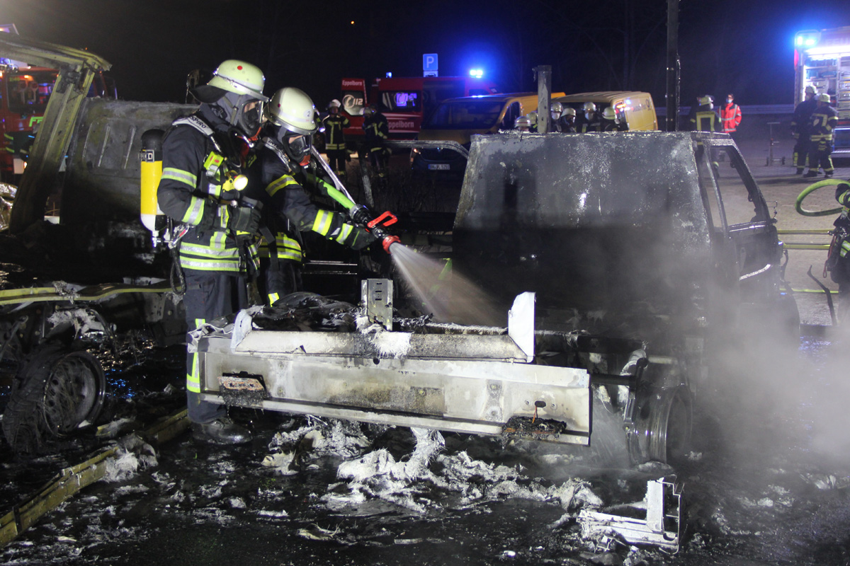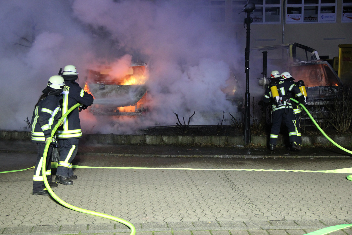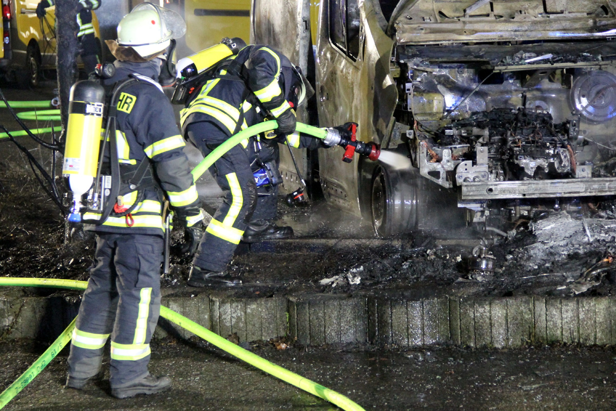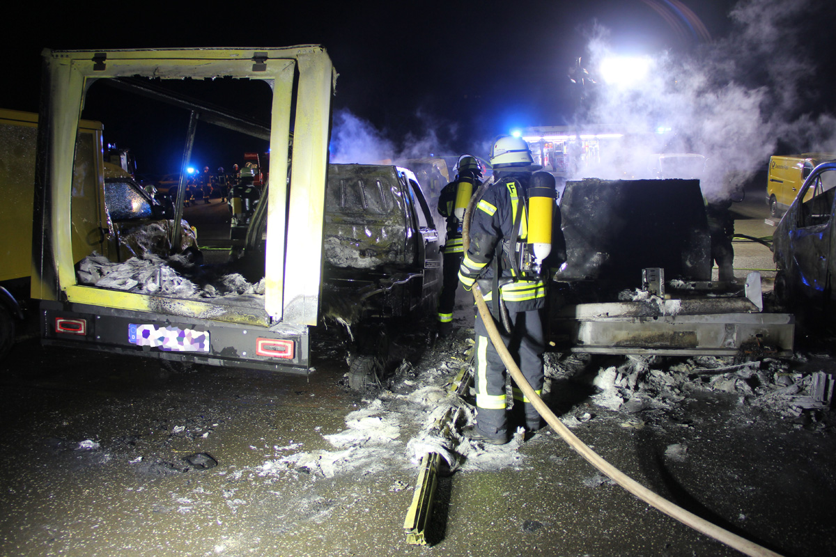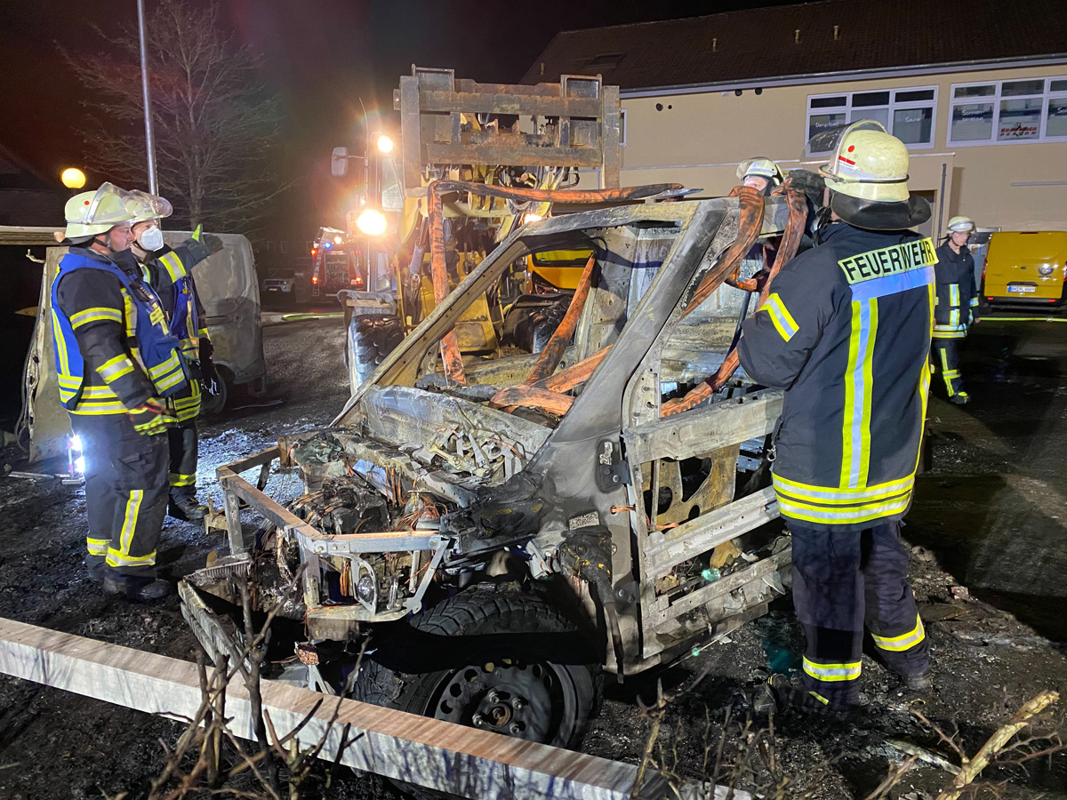 Zwei StreetScooter und ein Transporter der Post gehen in Flammen auf