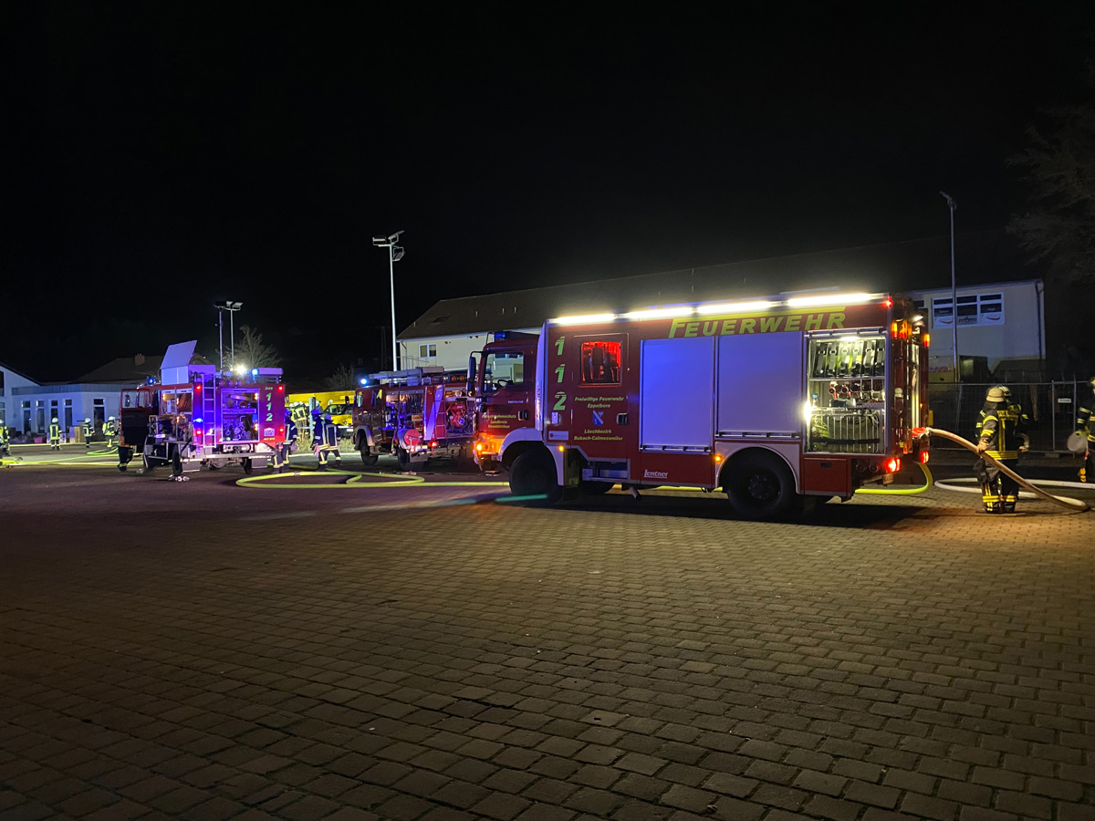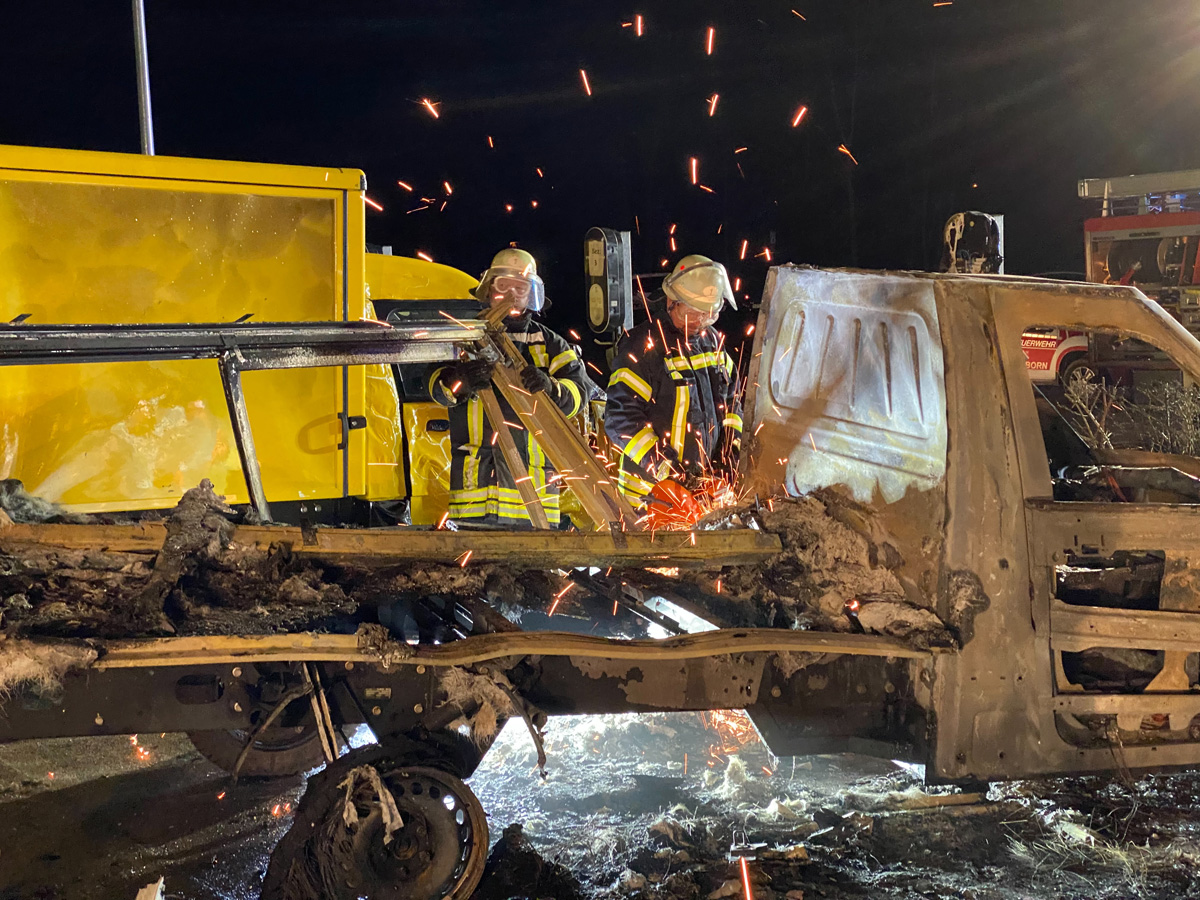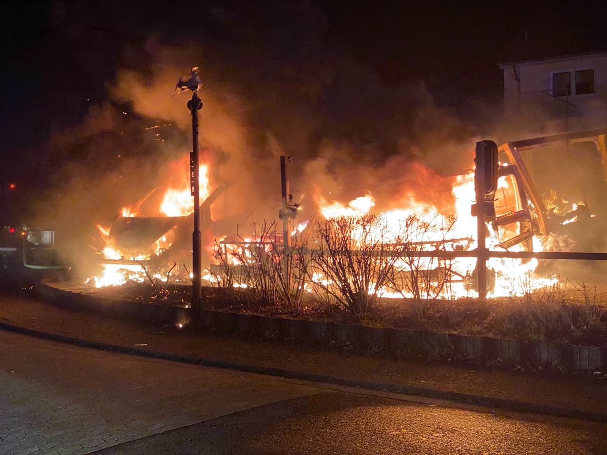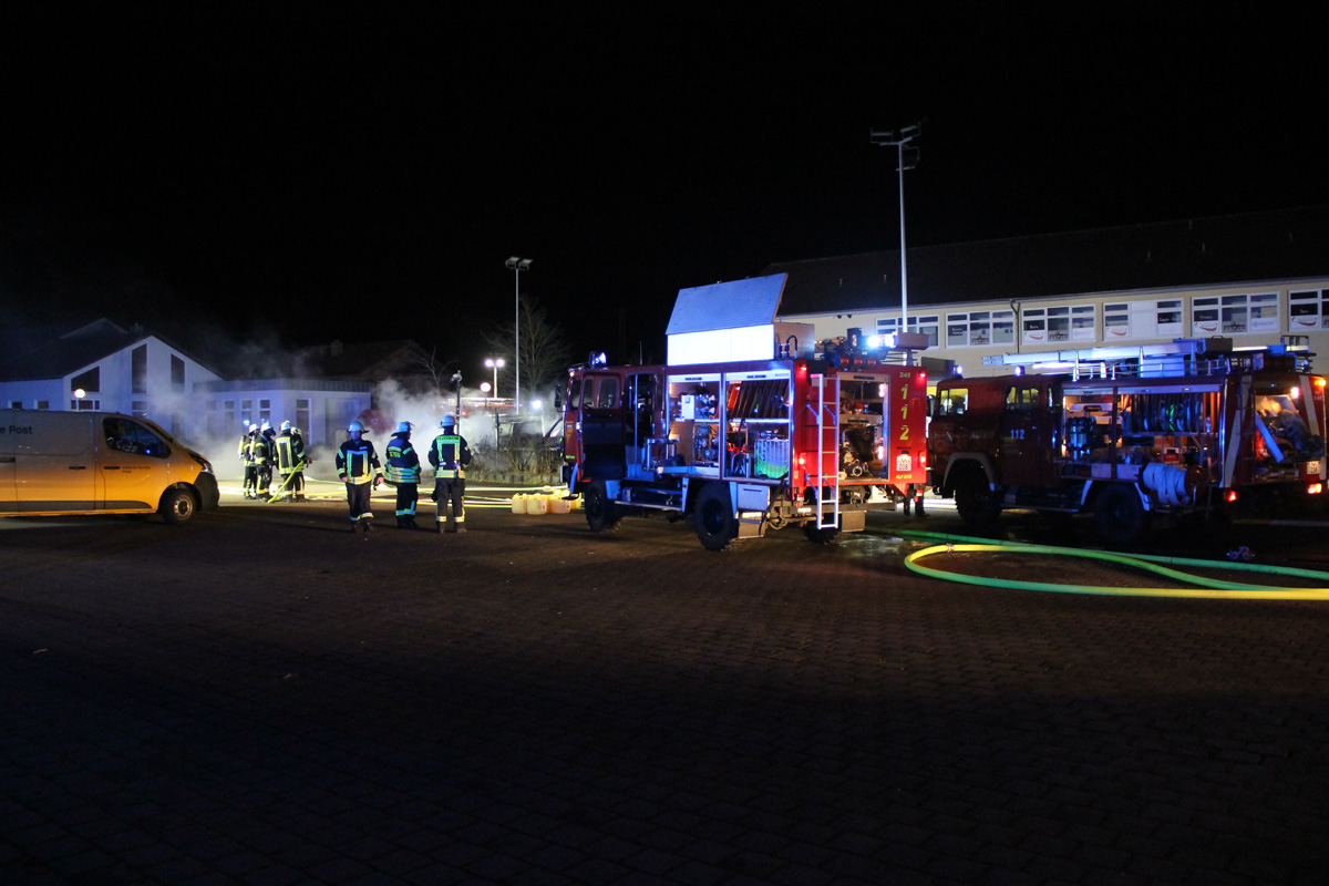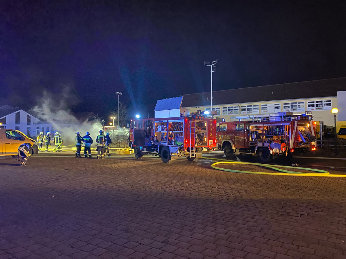 Im Zustellstützpunkt der Deutschen Post in Eppelborn brannten gegen kurz nach 1 Uhr in der Nacht zum 03.01.2022 mehrere Fahrzeuge. Als die Kameraden der Feuerwehr aus Eppelborn und Bubach-Calmesweiler an der Einsatzstelle eintrafen, standen drei Fahrzeuge bereits im Vollbrand, der Brand drohte auf weitere Fahrzeuge überzugreifen. Bei zweien der Fahrzeuge handelte es sich dabei um Elektrofahrzeuge.