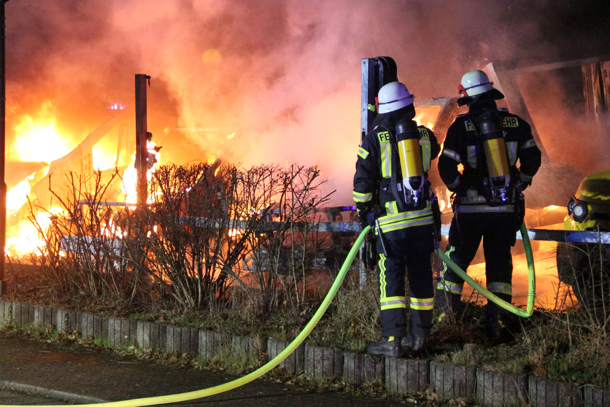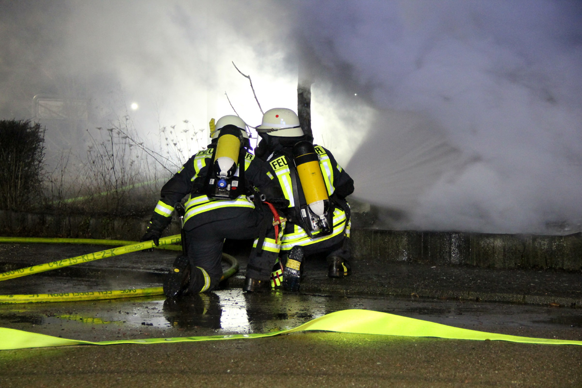 Mit mehreren Rohren und unter Atemschutzeinsatz konnte der Brand der sogenannten StreetScooter schnell gelöscht werden. Doch mit den Löscharbeiten an den E-Fahrzeugen war die Arbeit der Feuerwehr noch lange nicht zu Ende. Denn durch die große Hitze des Feuers war in den Akkus eine Reaktion in Gang gekommen, die weiter für eine große Hitzeentwicklung sorgen würde.