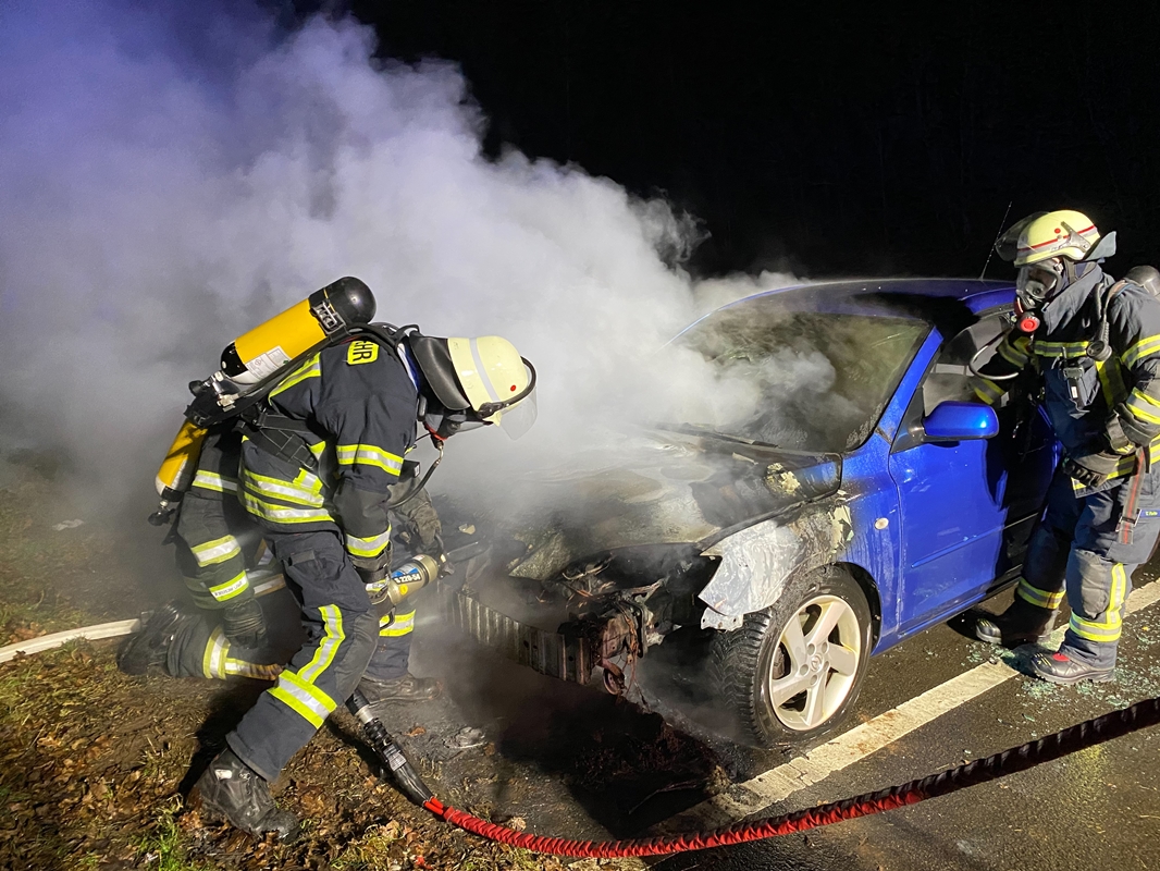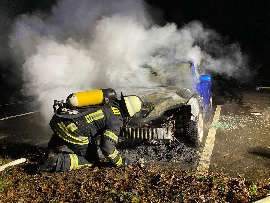 Bei Eintreffen stand der Motorraum bereits im Vollbrand. Um auszuschließen, dass sich im verschlossenen Fahrzeug noch Personen aufhalten wurden sofort die Seitenfenster geöffnet um den völlig verrauchten Innenraum zu kontrollieren. Nachdem feststand, dass sich keine Person mehr im Fahrzeug befand wurde ein Löschangriff unter Atemschutz vorgenommen.