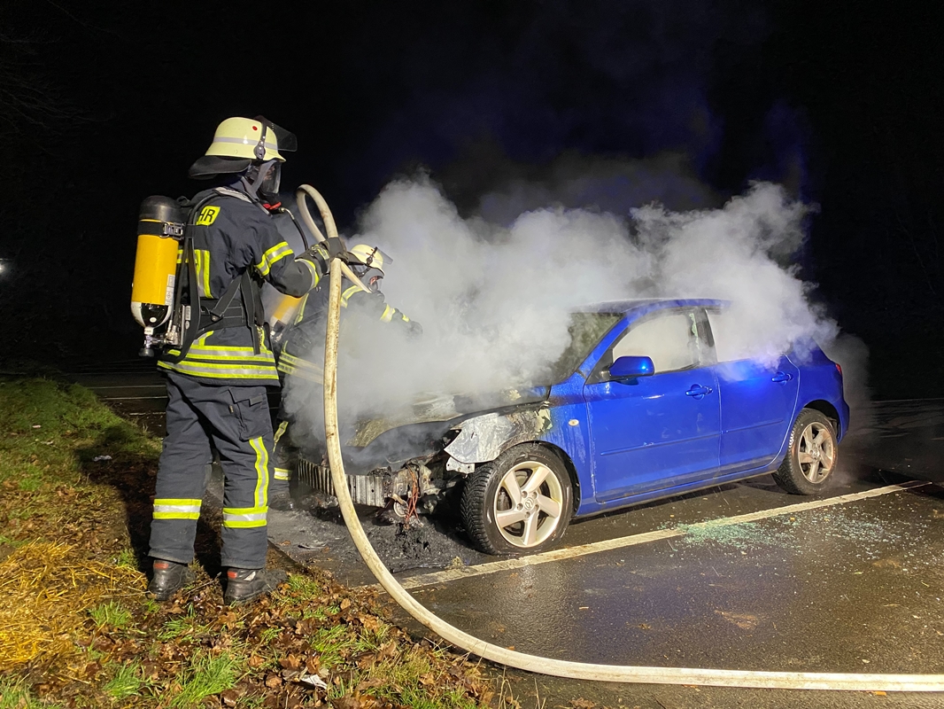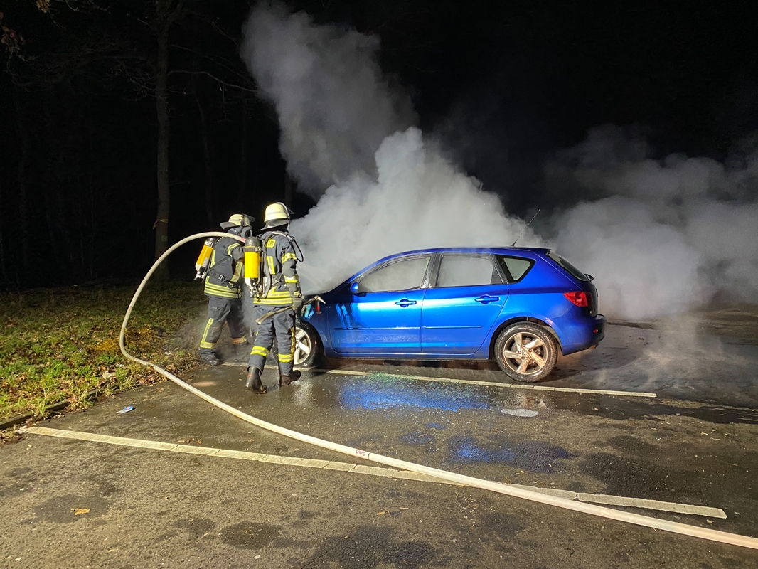PKW brennt auf Mitfahrerparkplatz an der BAB1 Anschlussstelle Eppelborn