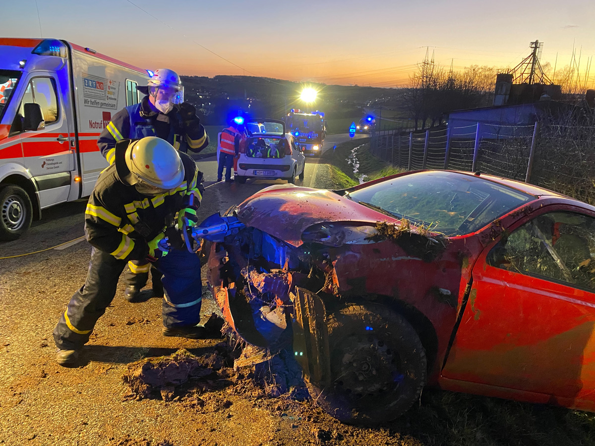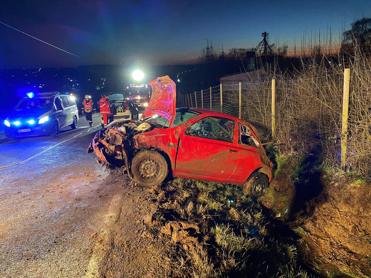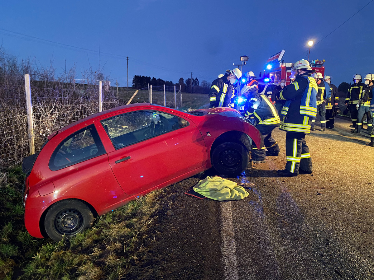 Am Abend des 07. Februar befuhr eine Fahrzeugführerin mit ihrem Kleinwagen die L 141 von Humes in Richtung Wallenbornstraße im Ortsteil Wiesbach. Aus noch ungeklärter Ursache verlor sie dann auf Höhe des landwirtschaftlichen Betriebes "Wackenberger Hof" die Kontrolle über ihr Fahrzeug und kam nach rechts von der Fahrbahn ab. Hierbei geriet sie in einen tiefen Straßengraben.