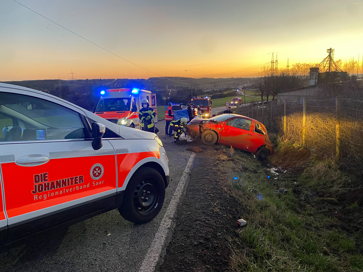 Ersthelfer wählten umgehend den Notruf und meldeten einen Verkehrsunfall mit eingeklemmter Person, sodass gegen 17:47 Uhr Alarm für die Löschbezirke Wiesbach, Eppelborn sowie Bubach-Calmesweiler ausgelöst wurde. Da im benachbarten Löschbezirk Uchtelfangen der Gemeinde Illingen ebenfalls ein hydraulischer Rettungssatz vorhanden ist, wurden auch diese zur Einsatzstelle entsandt.