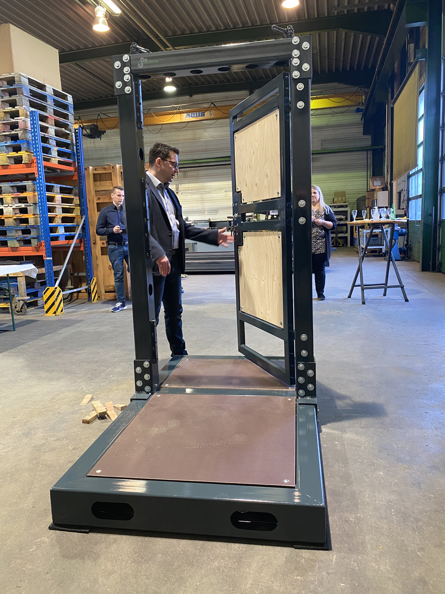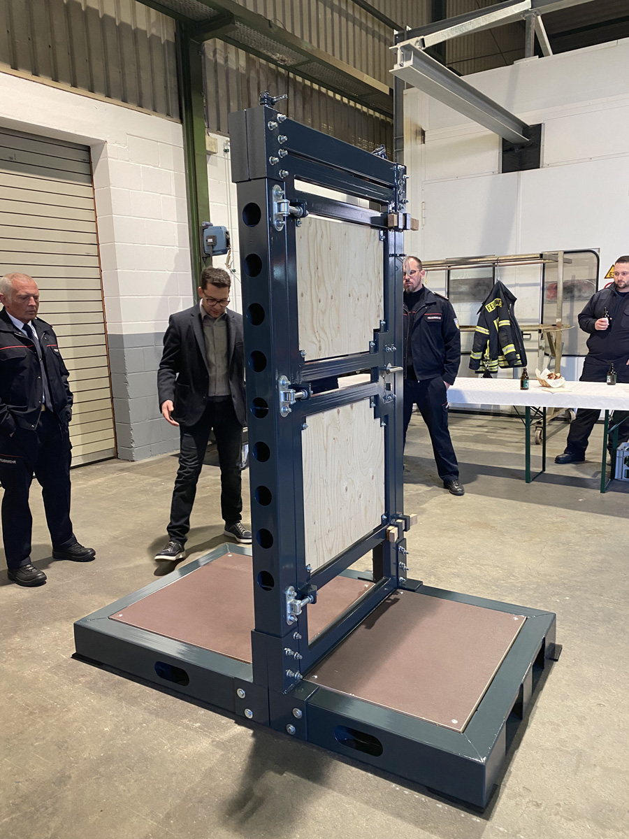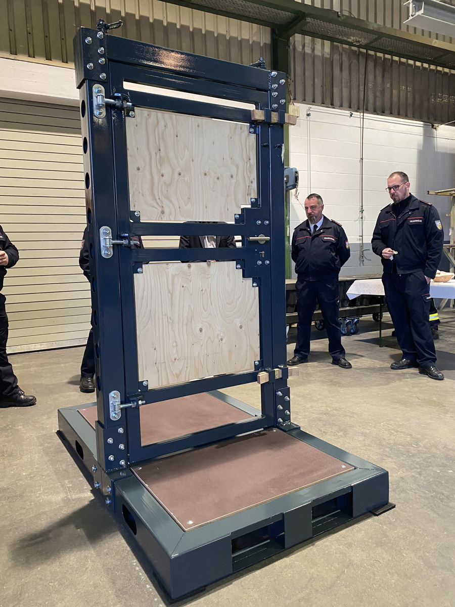 Im Anschluss stellte Frank Kartes die Übungstür ausführlich den Vertretern der Feuerwehr vor. Die Tür wird im Löschbezirk Humes Hierscheid stationiert und in den nächsten Wochen in den Löschbezirken vorgestellt werden.