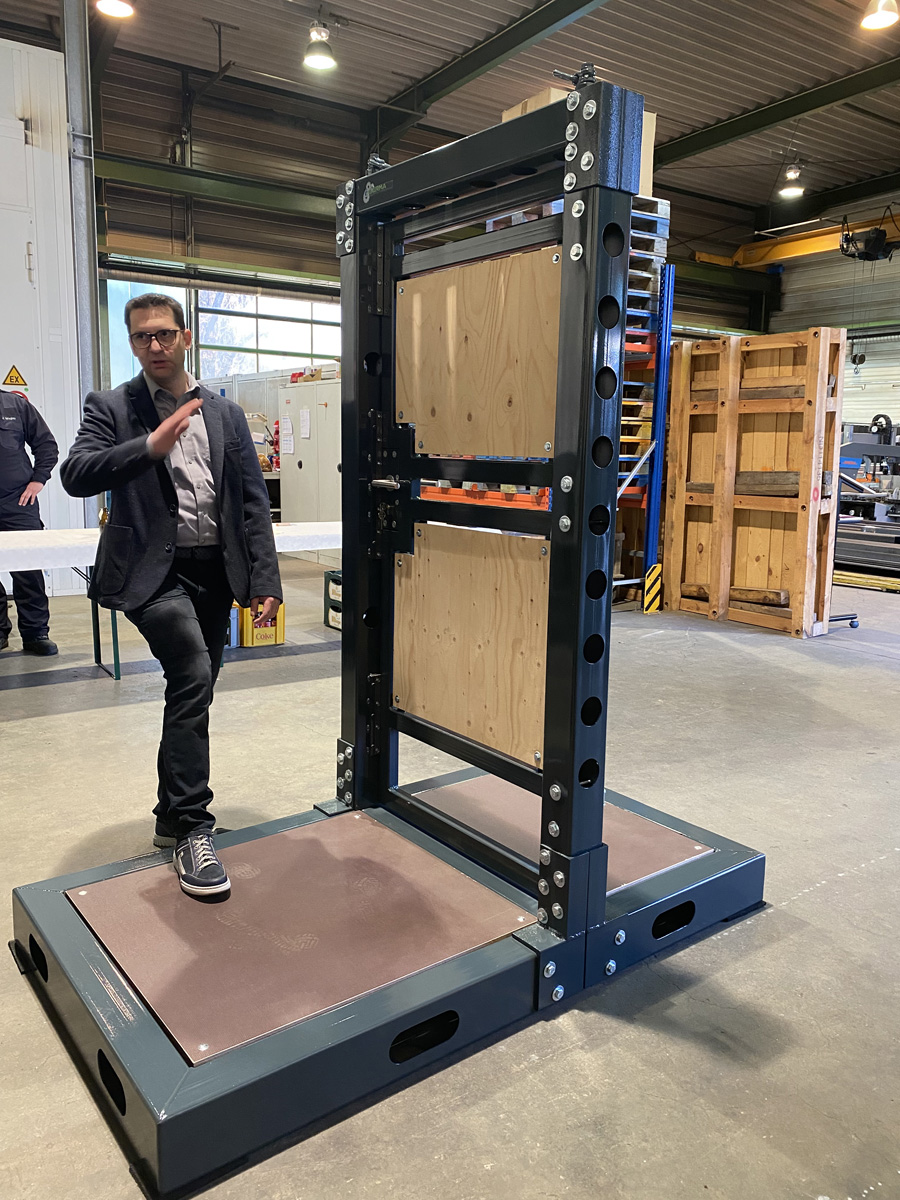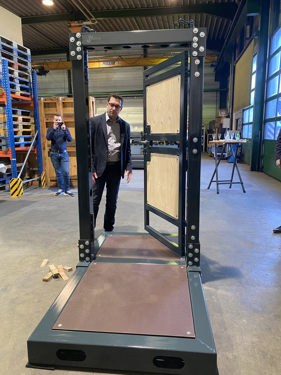 Frank Kartes, selbst Feuerwehrmitglied im Löschbezirk Habach und designierter Hauptgesellschafter des Unternehmens, berichtete, wie es zur Idee einer Übungstür kam, die im Rahmen der Veranstaltung an die Feuerwehr übergeben werden konnte. Vor 2 Jahren sei die Idee während einer Ausbilderbesprechung der Feuerwehr aufgekommen, da die Kameraden immer öfter zu dringenden Türöffnungen für den Rettungsdienst alarmiert werden. Ein Arbeitskreis mit Kameraden aus den Löschbezirken Humes-Hierscheid und Habach wurde gebildet und die Planung aufgenommen.