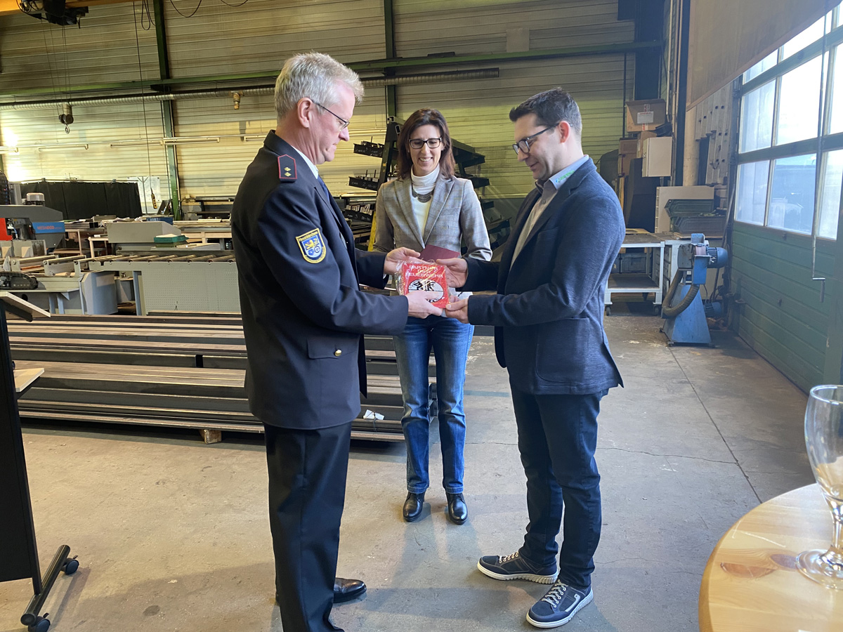 Horst Malter vom Kreisfeuerwehrverband überreichte die Plakette und Urkunde an die bisherige Geschäftsführerin und Inhaberin der Firma GERMA, Sandra Scherer, und erklärte, dass es auch für ihn etwas besonderes sei. In 14 Jahre habe er diese Auszeichnung im Landkreis erst drei Mal vergeben können.