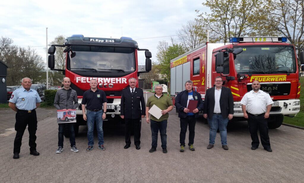 Als besonderes Dankeschön überreichte Frank Bonner seinem Stellvertreter Manuel Braun ein Bild des neuen HLF 10. Braun hatte sich federführend um die Beschaffung des neuen Fahrzeugs gekümmert.