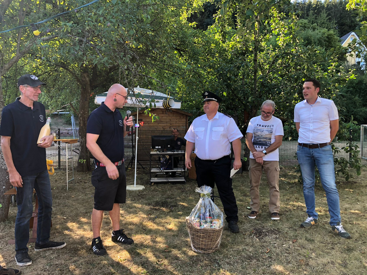 Am Samstag um 18:00 Uhr stand die offizielle Eröffnung mit einem Fassanstich auf der Agenda. Löschbezirksführer Heino Molter begrüßte die anwesenden Gäste, darunter den 1. Beigeordneten der Gemeinde Eppelborn, Christian Ney, sowie Michael Polotzek, in seinem Amt als stellvertretenden Ortsvorsteher. Bürgermeister Dr. Andreas Feld und Ortsvorsteher Frank Klein ließen sich aus Urlaubsgründen entschuldigen. Dann folgte die Begrüßung der Feuerwehr aus Finsterwalde-Nehesdorf, zu der seit über 25 Jahre eine enge Partnerschaft besteht, die über die Zeit hinweg zu einer tiefen Freundschaft wurde. Heino Molter freute sich, dass bereits zur Eröffnung viele Bürger gekommen waren und begrüßte die Gäste ebenfalls herzlichst bei Ihrer Feuerwehr. Unter den Gästen waren auch Vertreter von Vereinen und Verbänden.