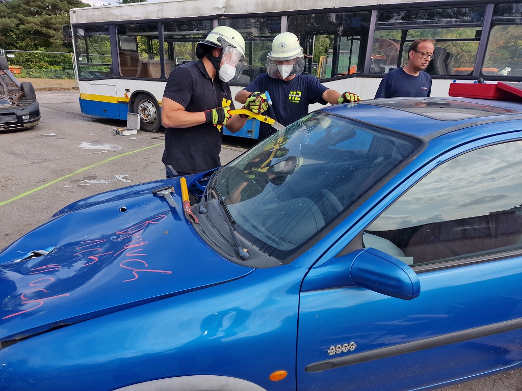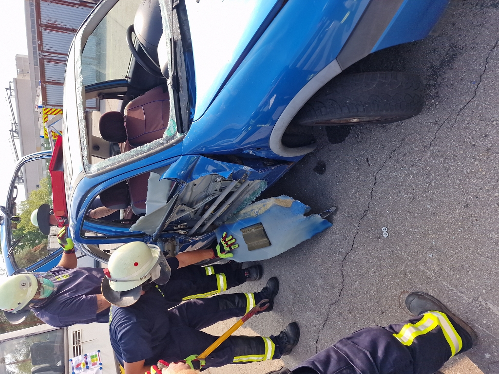 Bereits im letzten Jahr durften die Wehrleute des LB Humes-Hierscheid schon auf dem Werksgelände der Michelin Reifenwerke AG & Co. KGaA im Werk Homburg üben, jedoch lag damals der Fokus auf der Brandbekämpfung. Am Samstag, den 27.08.2022 folgten die Feuerwehrleute aus Humes-Hierscheid der erneuten Einladung der Werkfeuerwehr Michelin Homburg. Initiator und Übungsleiter Michael Scherer begrüßte die rund 20 Kameradinnen und Kameraden gegen 13:30 Uhr auf dem Werksgeländer und gab einen kurzen Abriss über den Tagesablauf. Während die Führungskräfte in Einsatztaktik geschult und mit den Gefahren alternativer Antriebsarten vertraut wurden, ging Löschbezirksführer Thomas Bastuck mit der restlichen Mannschaft die Grundlagen bei Fahrzeugunfällen durch. Danach wurde die Theorie in der Praxis angewandt. Hierfür standen 2 Fahrzeuge zur Verfügung, wovon eines auf dem Dach lag. Ziel war es Zugang zum Patienten zu schaffen, einen so genannten „Inneren Retter“ ins Fahrzeug zu bekommen und das Fahrzeug mit den vorhandenen Mitteln zu stabilisieren. Nach erfolgreichem Übungsabschluss wurde das vorhandene Material an den Fahrzeugen ausprobiert und das Thema Glasmanagement vertieft. Parallel dazu, konnten sich die neuen Mitglieder den richtigen Umgang mit Feuerlöschern üben und testen wo deren Grenzen sind. Zum Abschluss gab es eine Führung durch das stetig wachsende Gerätehaus der Werkfeuerwehr bei der auch die Besonderheiten einer Werkfeuerwehr im Vergleich zu einer kommunalen Feuerwehr deutlich wurde, gerade in Bezug auf Sonderlöschmittel. Wer mochte, konnte noch mit der Drehleiter hoch hinaus bevor die Mannschaft gegen 19 Uhr erschöpft aber glücklich die Heimreise antrat. Auch an dieser Stelle nochmals vielen Dank an die Kameraden der Werkfeuerwehr für die Einladung!