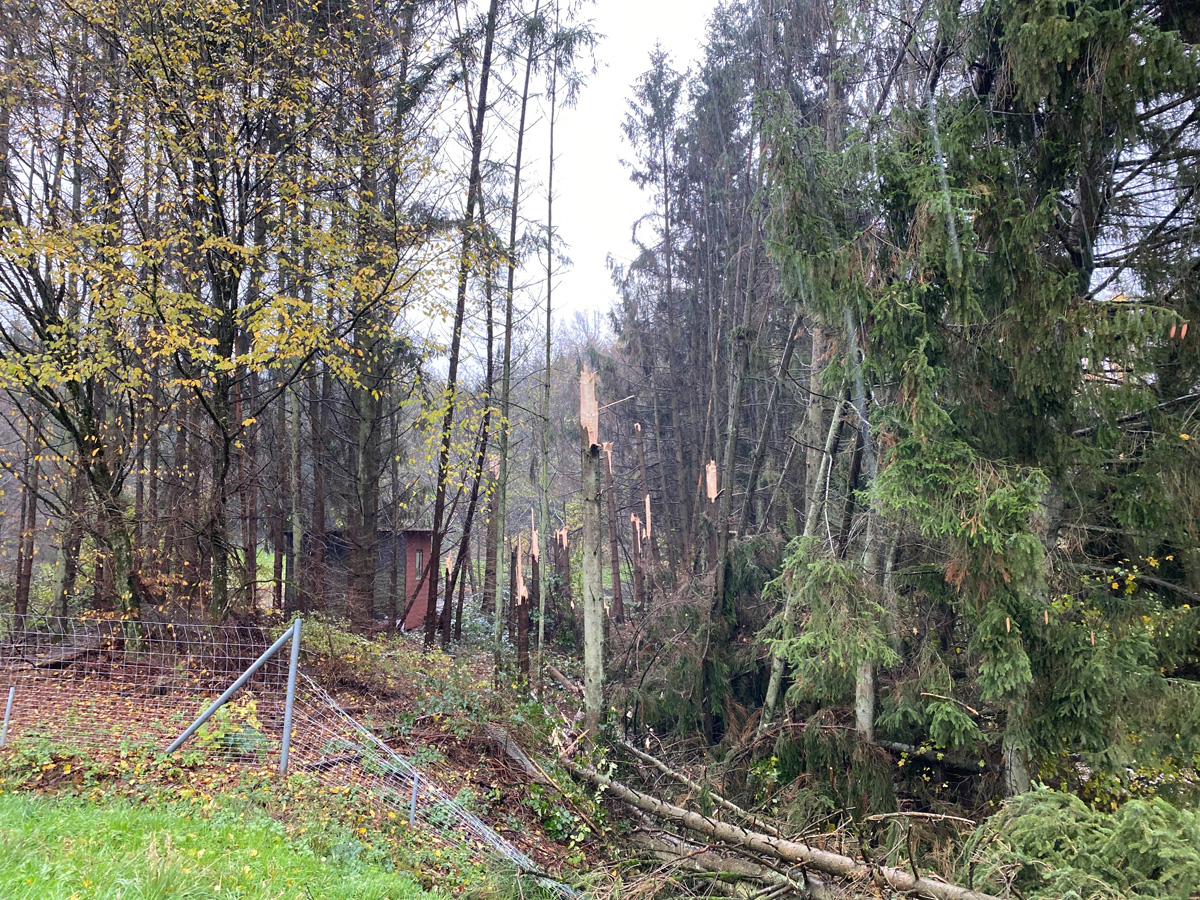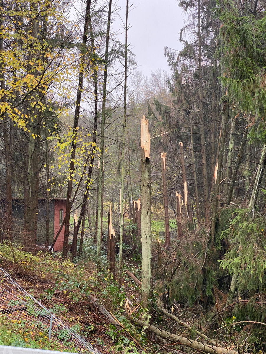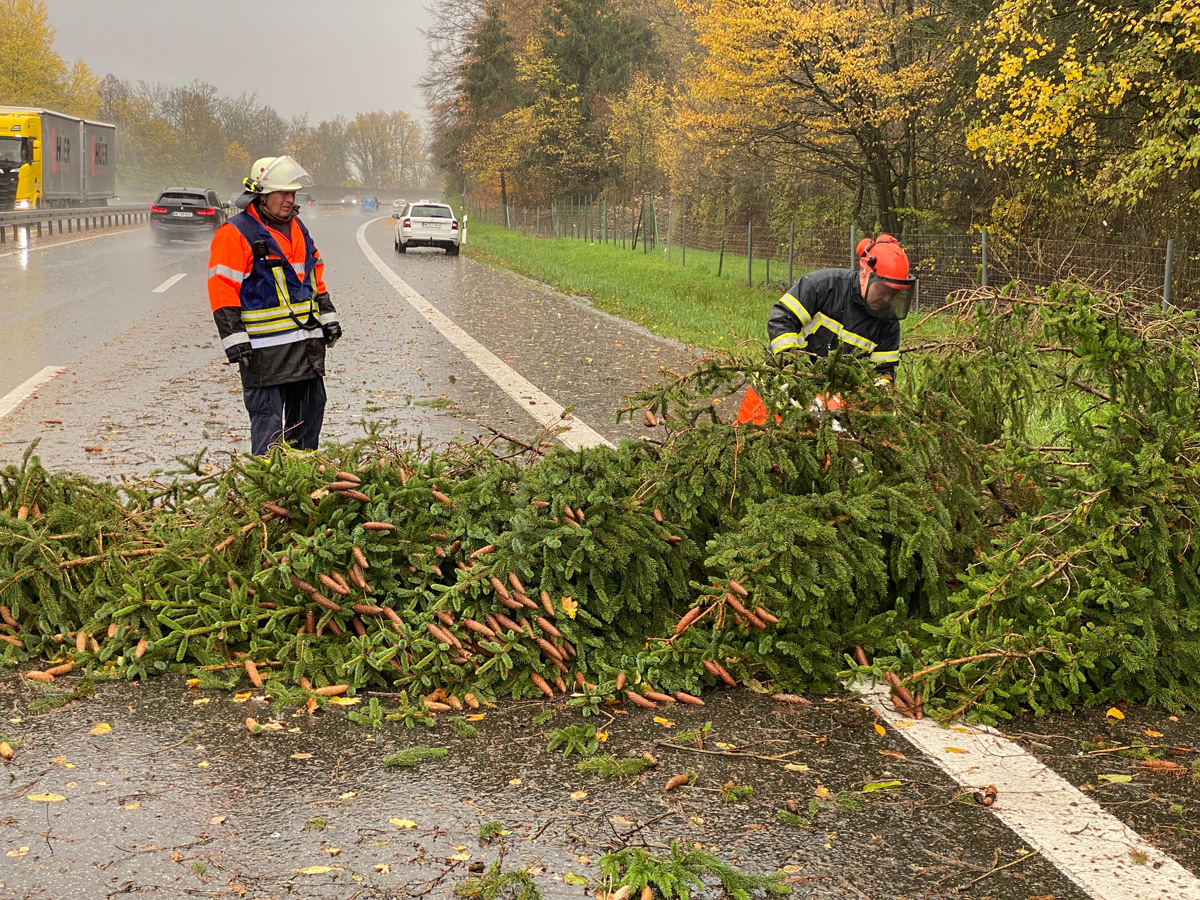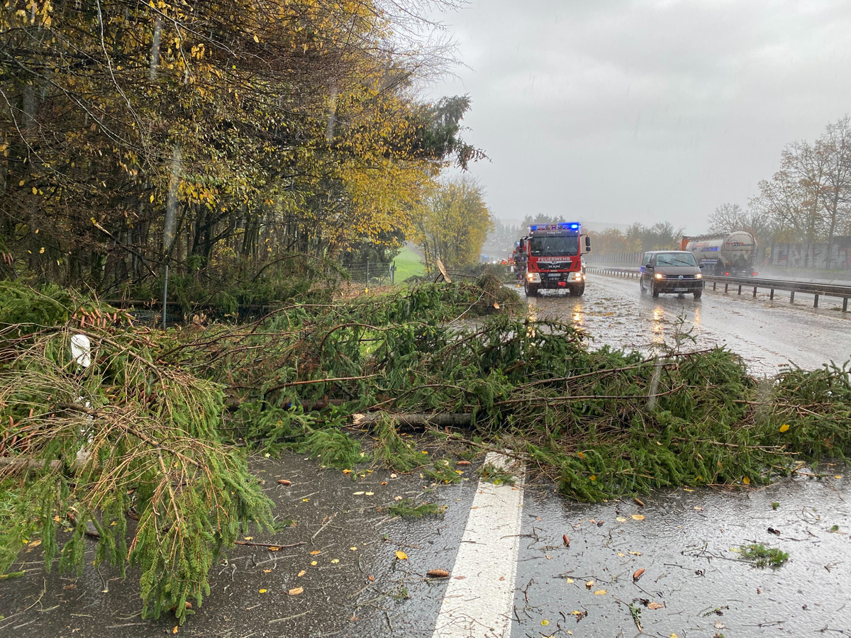 Auch auf der Autobahn A1 waren zwischen den Anschlussstellen Eppelborn und Illingen zahlreiche Bäume umgestürzt und blockierten eine der beiden Fahrspuren in Richtung Saarbrücken. Auffällig dabei war, dass die Schäden alle auf einer Linie lagen und eine Schneise von rund 100 Metern Breite bildeten.
