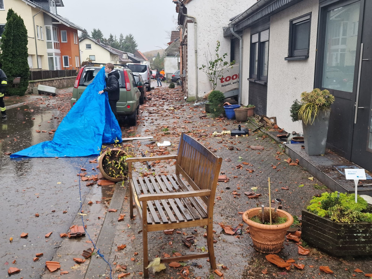 Eine plötzlich aufziehende Gewitterzelle und ein daraus entstehender Tornado der Stärke F1 mit Windböen von etwa 150 Stundenkilometern sorgte am Nachmittag des 17. November 2022 für zahlreiche Einsätze der Feuerwehr. Fast zeitgleich meldeten Anrufer gegen 14:47 Uhr umgestürzte Bäume in mehreren Straße im Eppelborner Ortsteil Dirmingen. Betroffen waren dabei vor allem die Humeser Straße und die Illingen Straße, die nicht mehr passierbar waren.